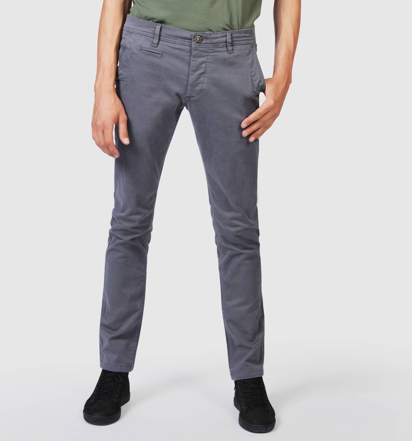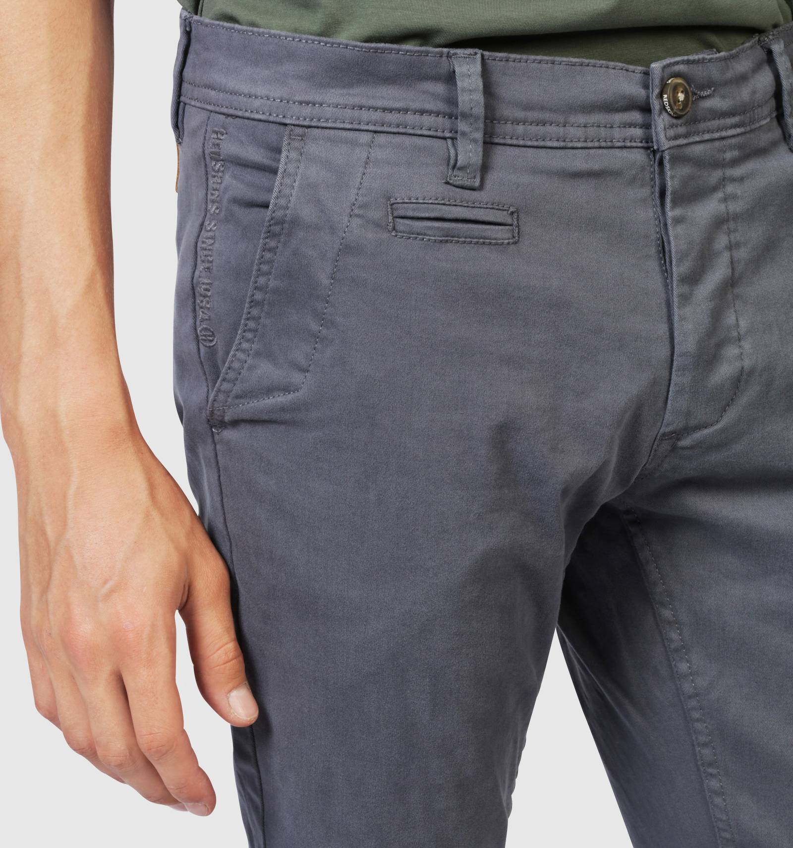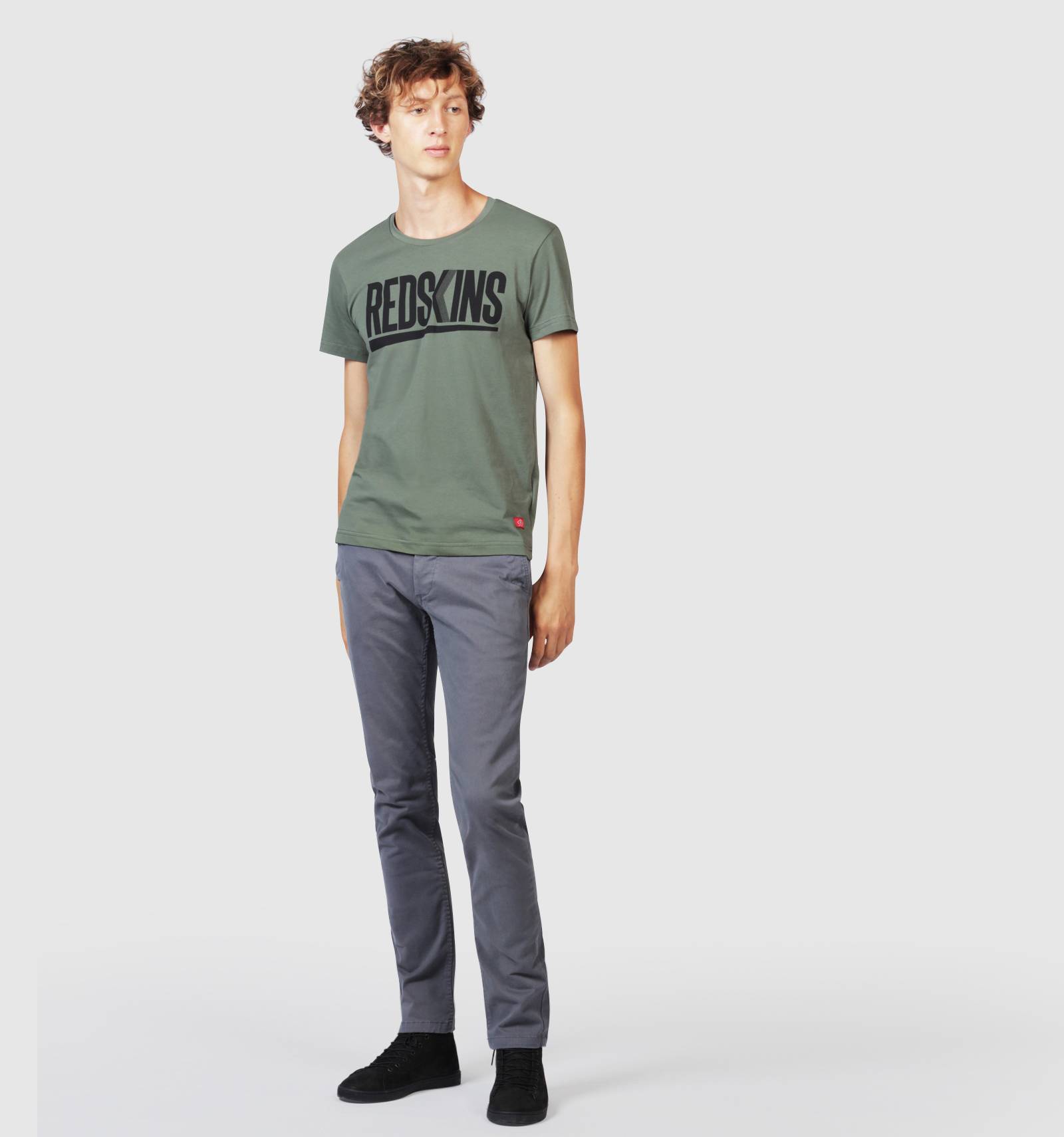 Inspiré de la coupe chino, le pantalon CODY 2 MAHEVAN est confectionné dans une toile gris asphalte. Aux éléments classiques tels que les poches arrire à boutons, les cinq passants à la ceinture et la braguette boutonnée, s'ajoutent la touche REDSKINSÊ: des poches latérales et un écusson en cuir au dos.