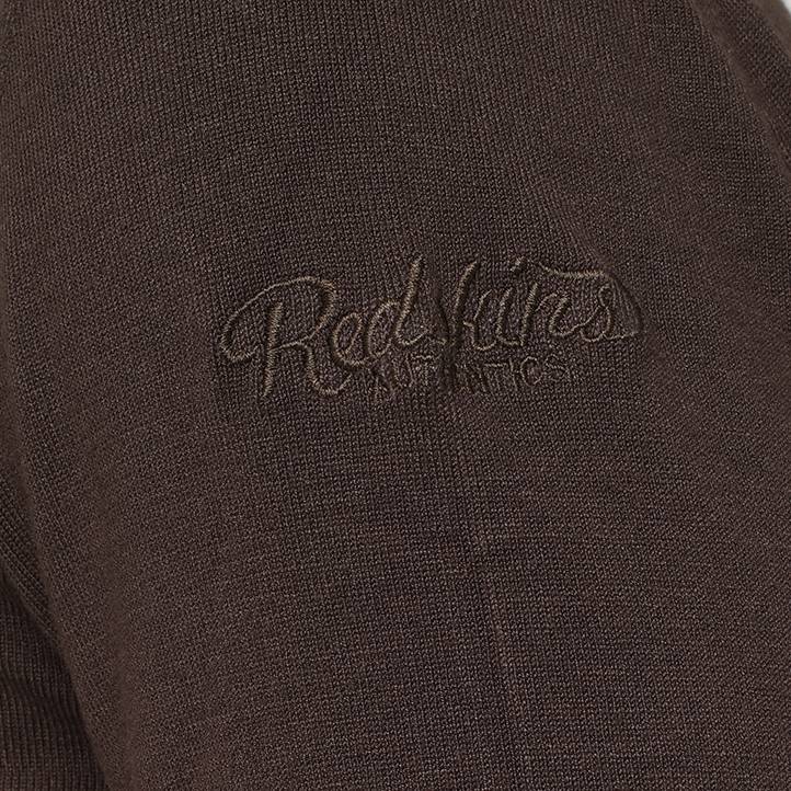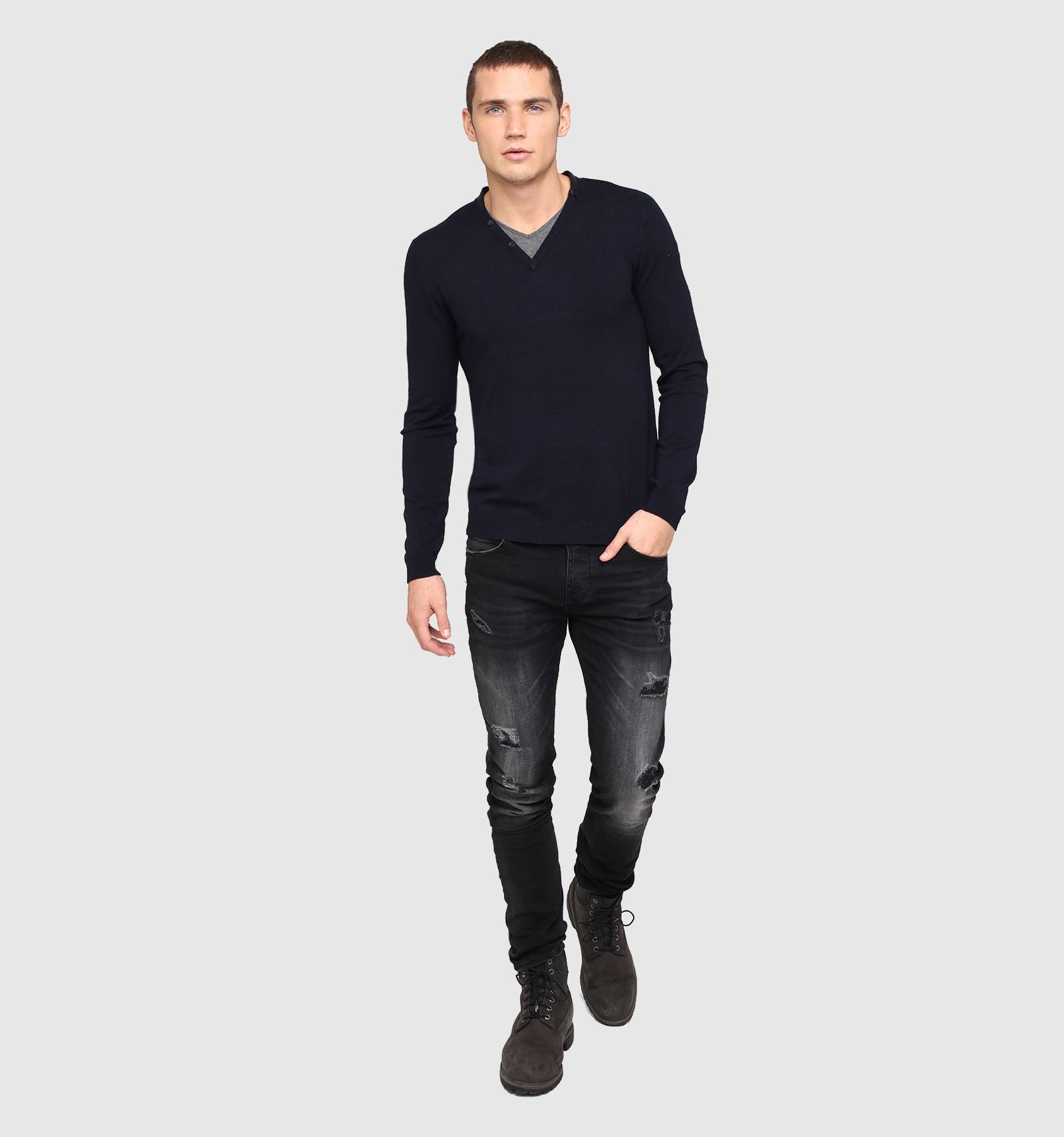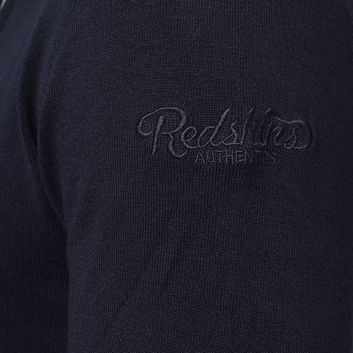 Le pull en maille prune DARRIUS ELVIS est comme un classique aux détails surprenants : son col V n'est pas seulement orné d'un liseret en cuir noir à l'arrière et de quelques boutons sur le devant, mais aussi d'un second col en coton gris chiné assorti aux coudières du même ton.