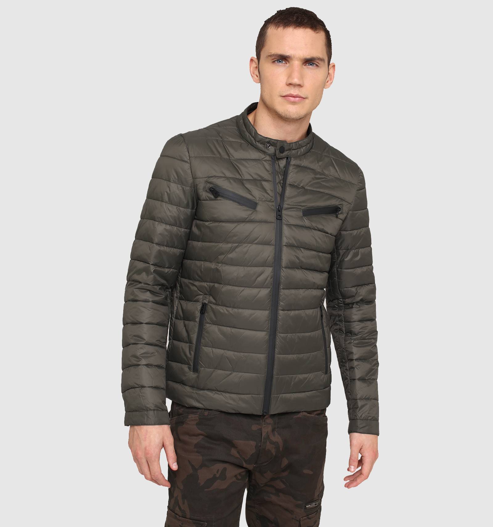La légerté, le style et le confort: la doudoune DAX HELIO est un incontournable de la saison. Confectionné en nylon kaki, elle arbore une coupe cintrée, un col rond avec un bouton pression, un écusson métallique sur la manche et des poches zippées.