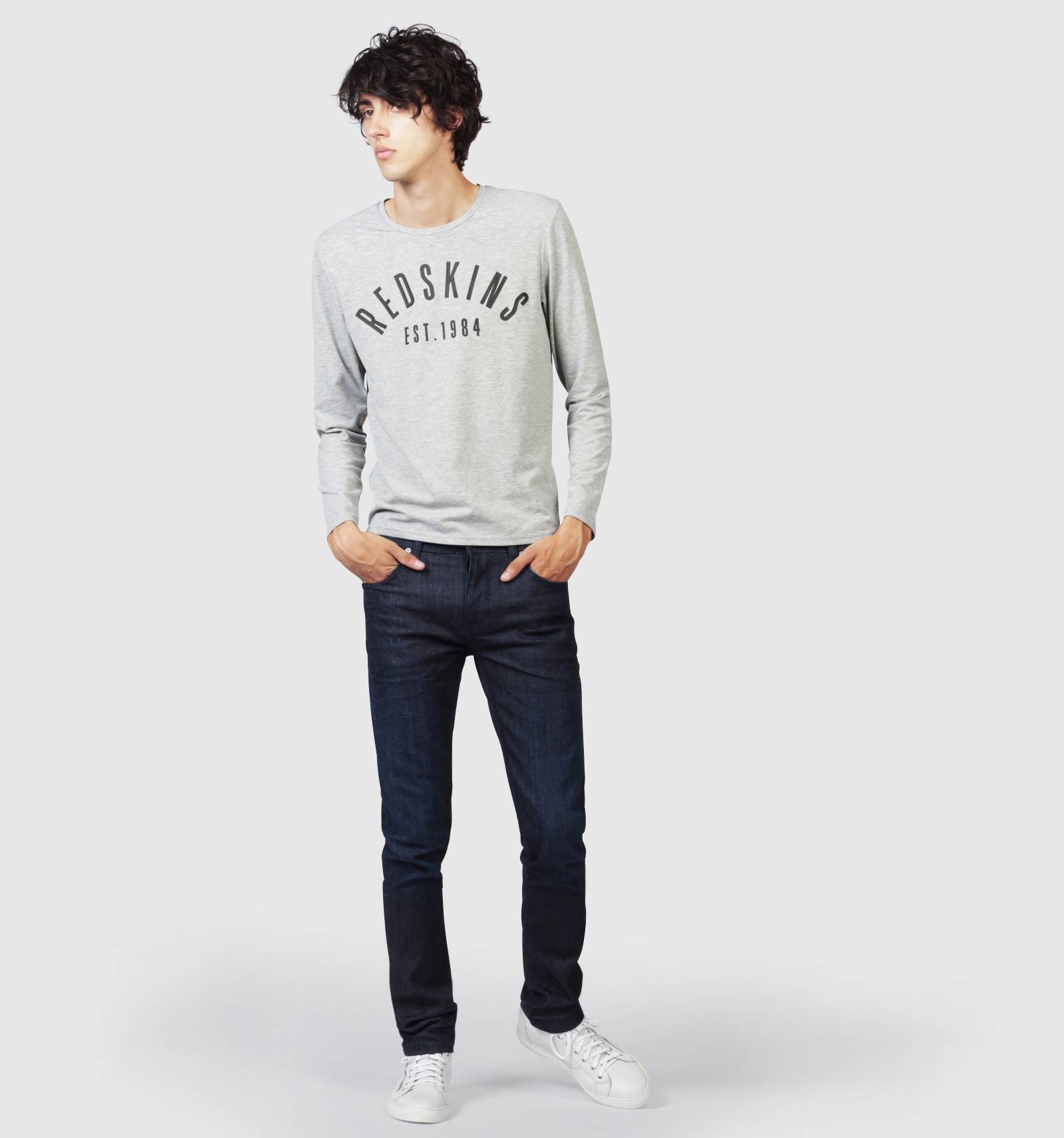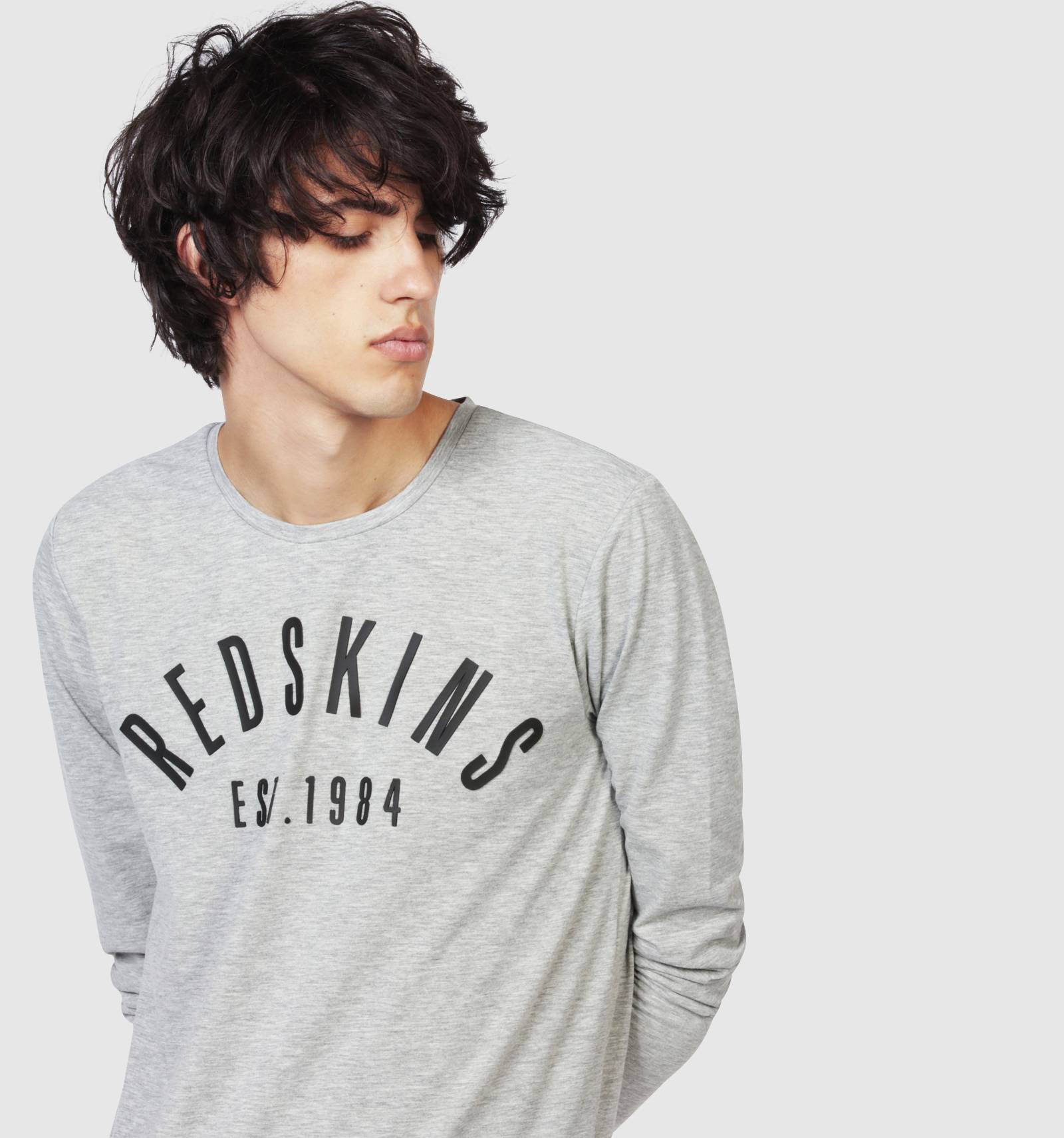 Une allure épurée, un confort indéniable : le t-shirt à manches longues DOUI CALDER appartient à tous les styles. En coton gris et à la coupe cintrée, il est garni d'un col rond ourlé et d'inscriptions REDSKINS en gomme sur le devant.