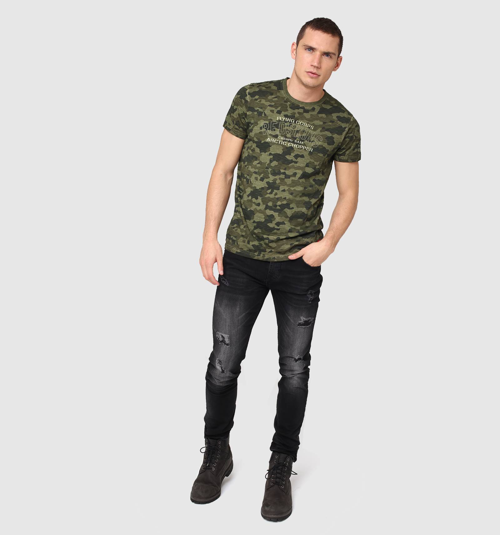 Le t-shirt en coton KRAPS RAF affiche le camouflage avec fierté. Son col rond, ses manches courtes et sa coupe près du corps font de lui un classique. Son imprimé et ses inscriptions à la poitrine et au bras lui donnent une touche d'audace.