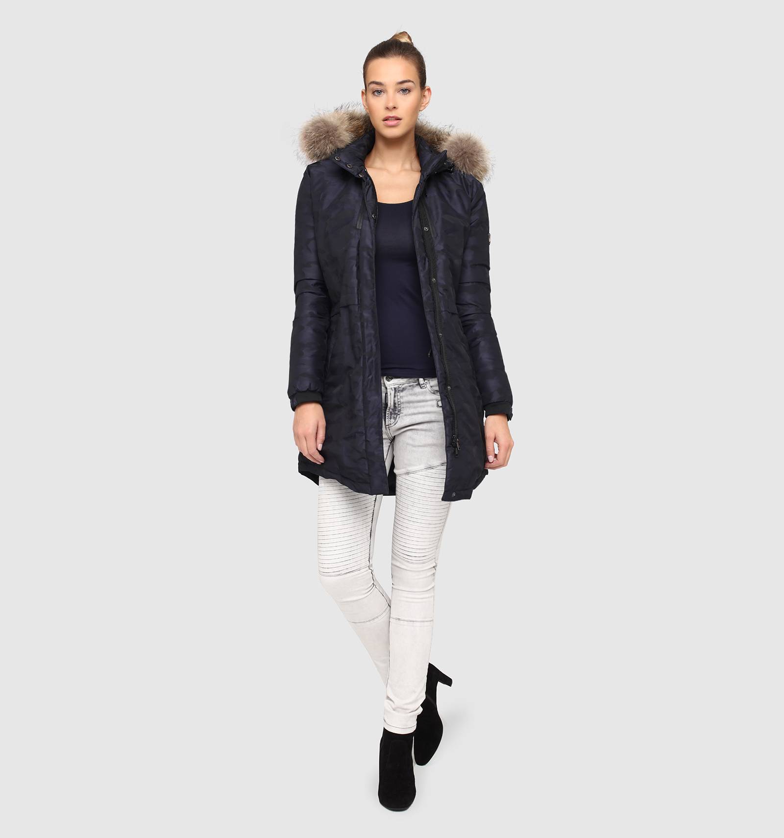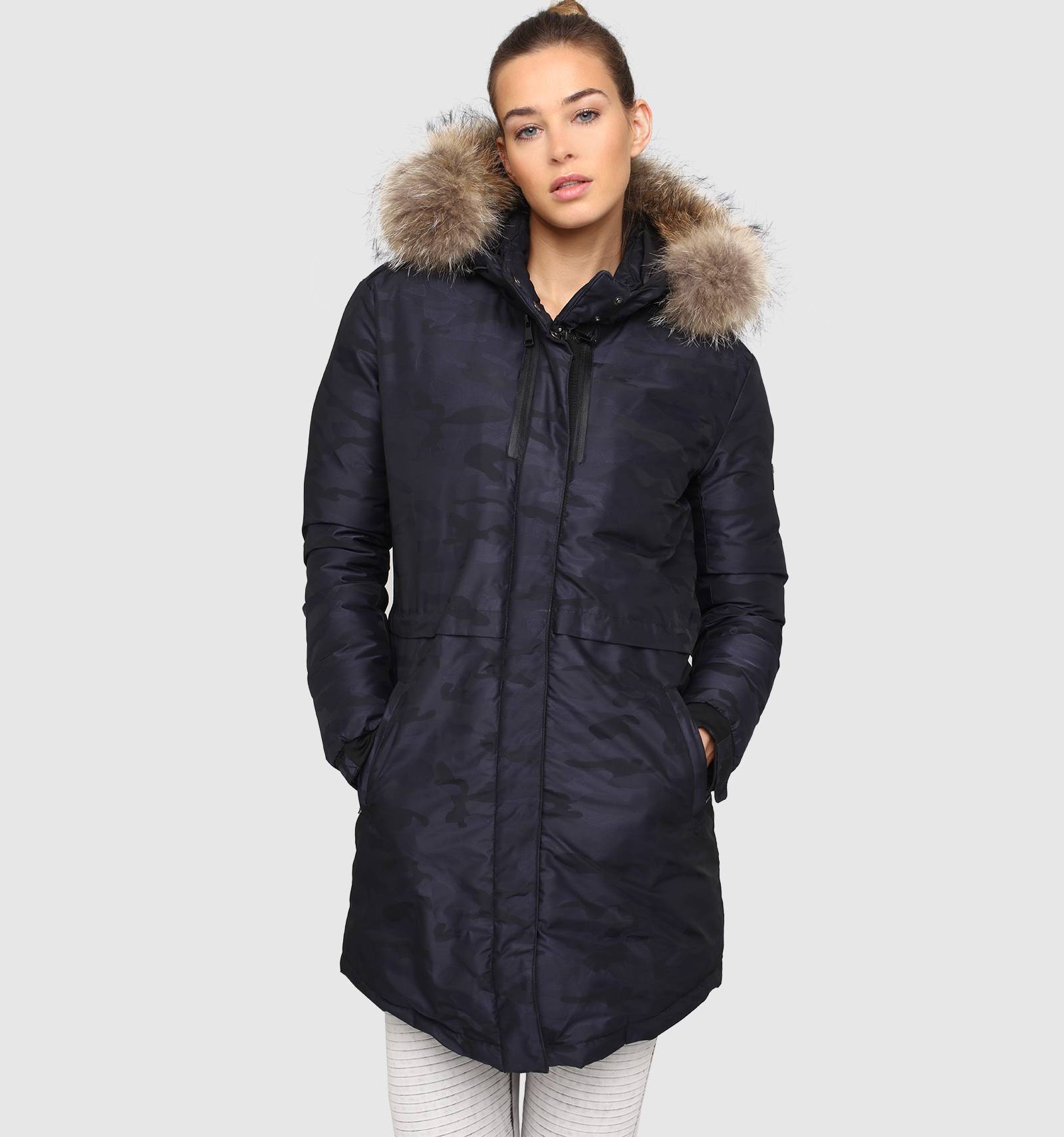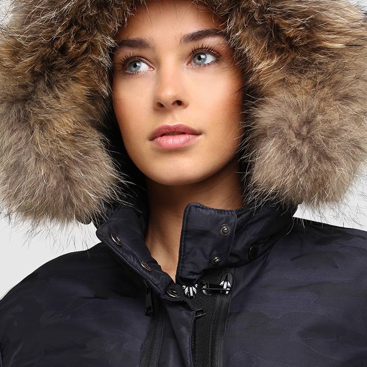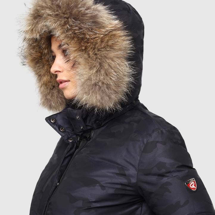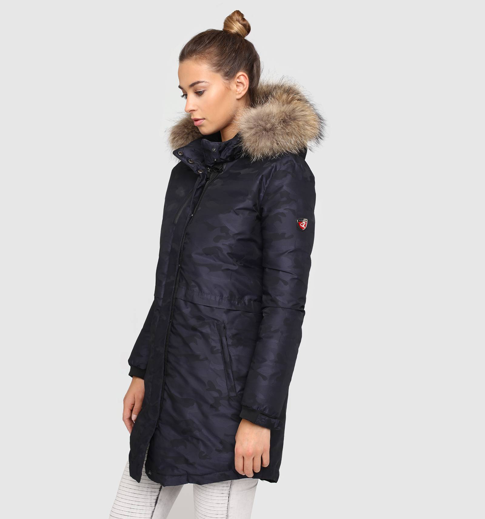 Sur la parka LINDSEY ECLYPSE, l'imprimé camouflage devient bleu marine. Cette pièce phare du vestiaire d'hiver est conçue dans un tissu imperméable rembourré de duvet, avec une capuche en fourrure, une fermeture éclair ton sur ton et des poches latérales. Sur la manche, elle arbore un écusson métallique REDSKINS.