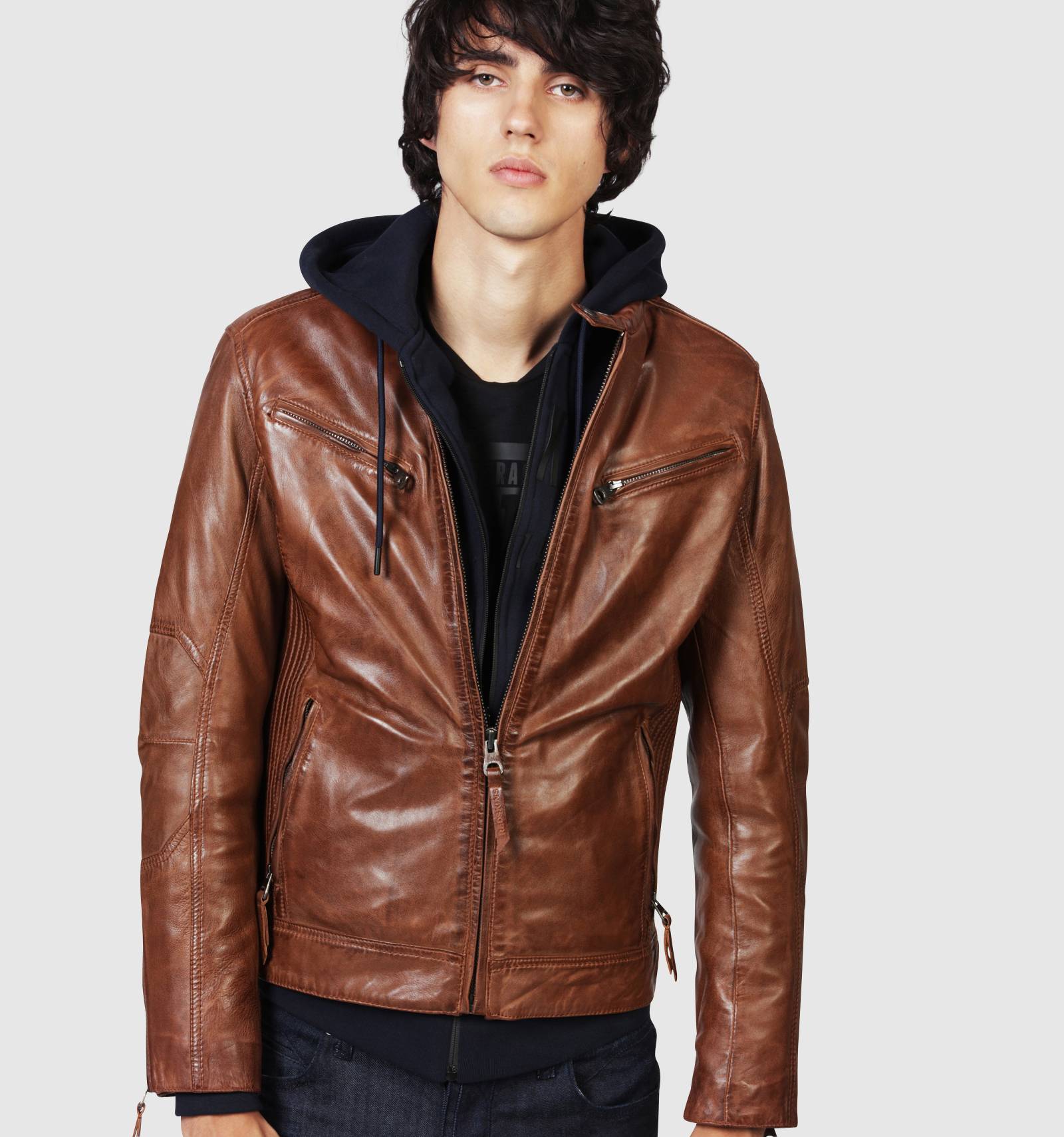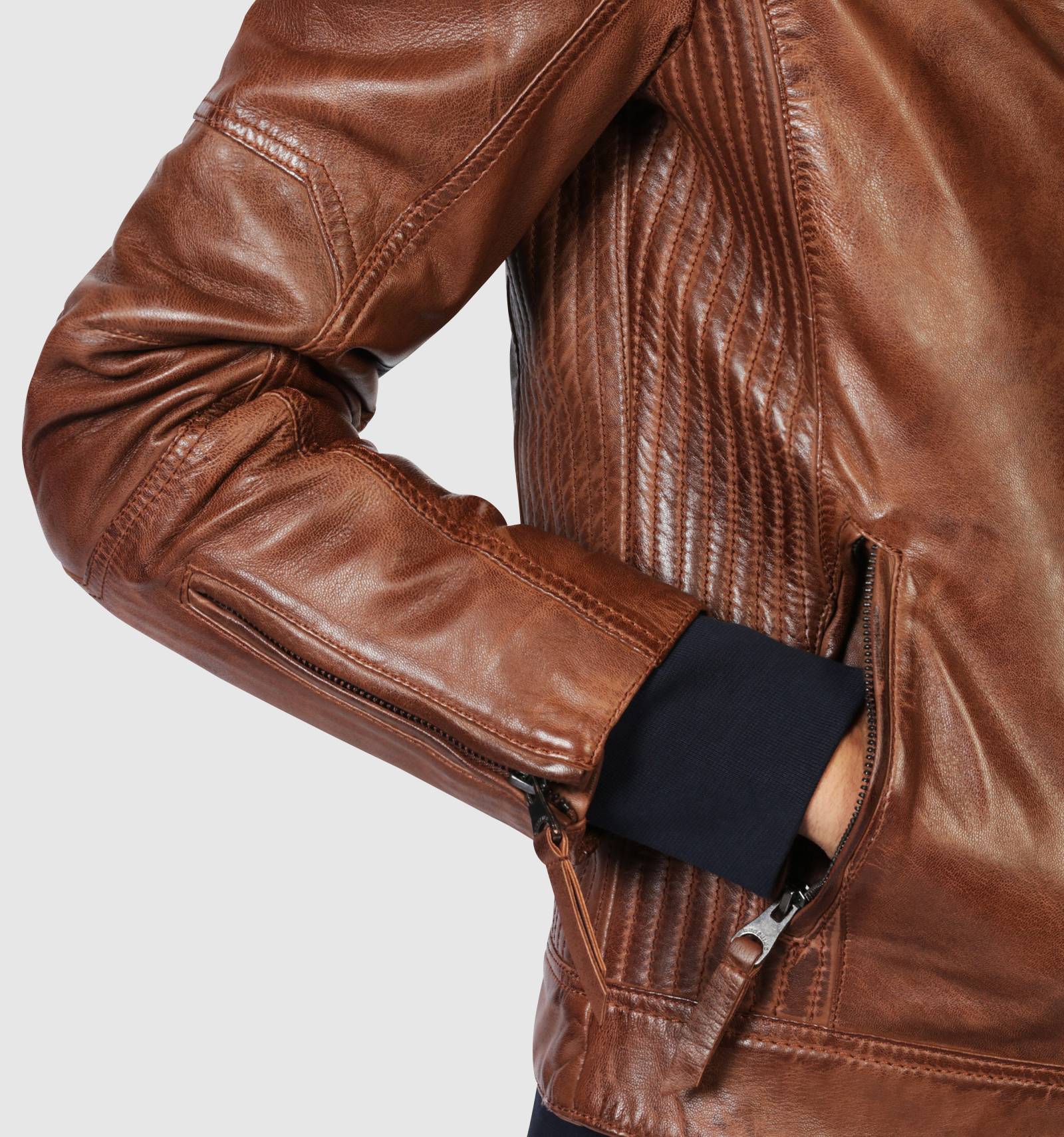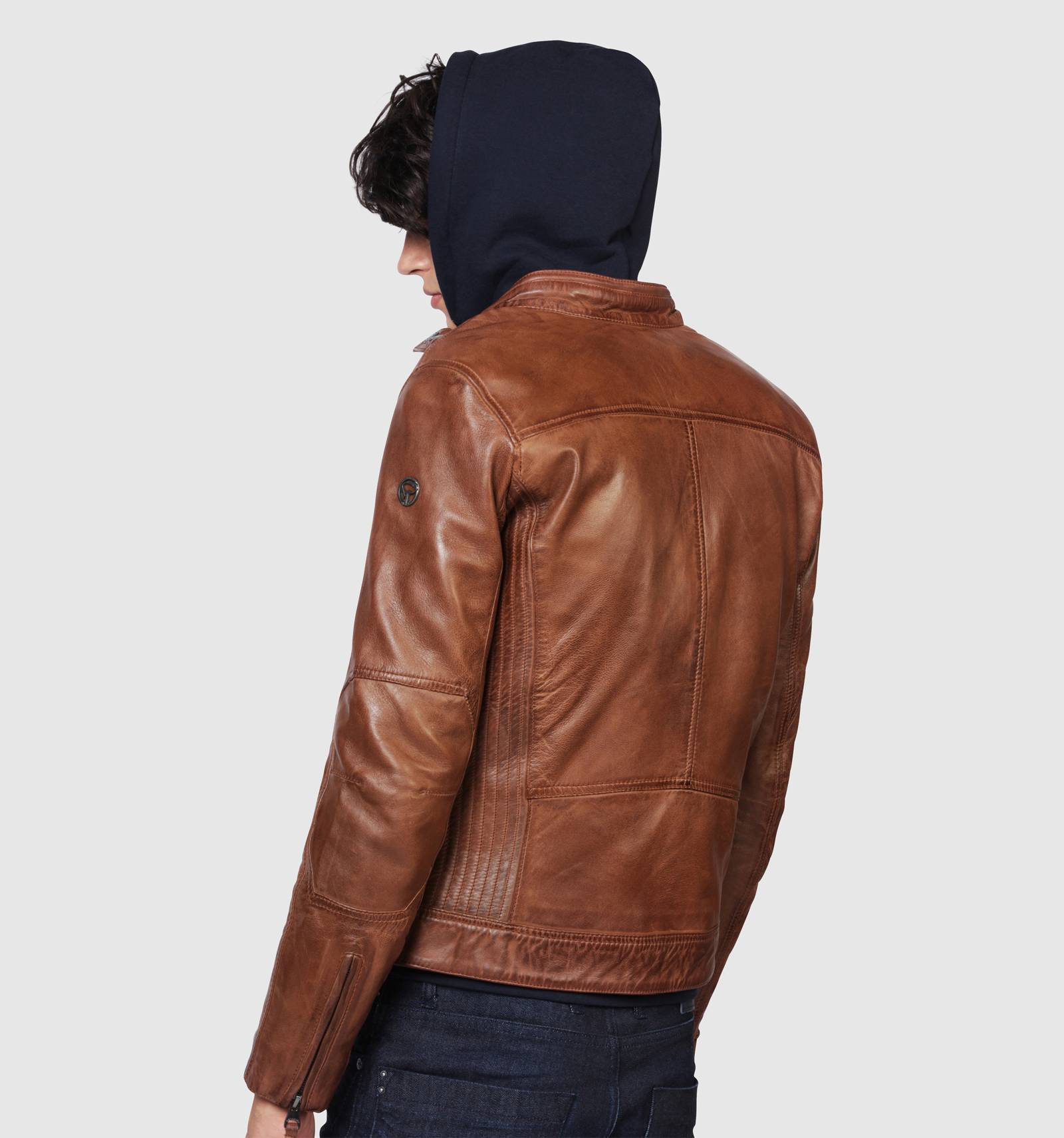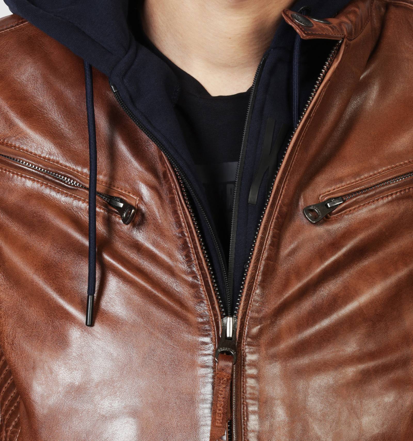 Blouson en cuir cognac brut aux inspirations motardes, le LYNCH CASTING se distingue par ses empicements striés sur les c™tés, ajustant sa coupe et lui donnant une allure cintrée. Orné de surpiqures ton sur ton, il est paré d'un col montant à deux pressions, de fermetures éclair aux poignets et de plusieurs poches zippées sur le devant.