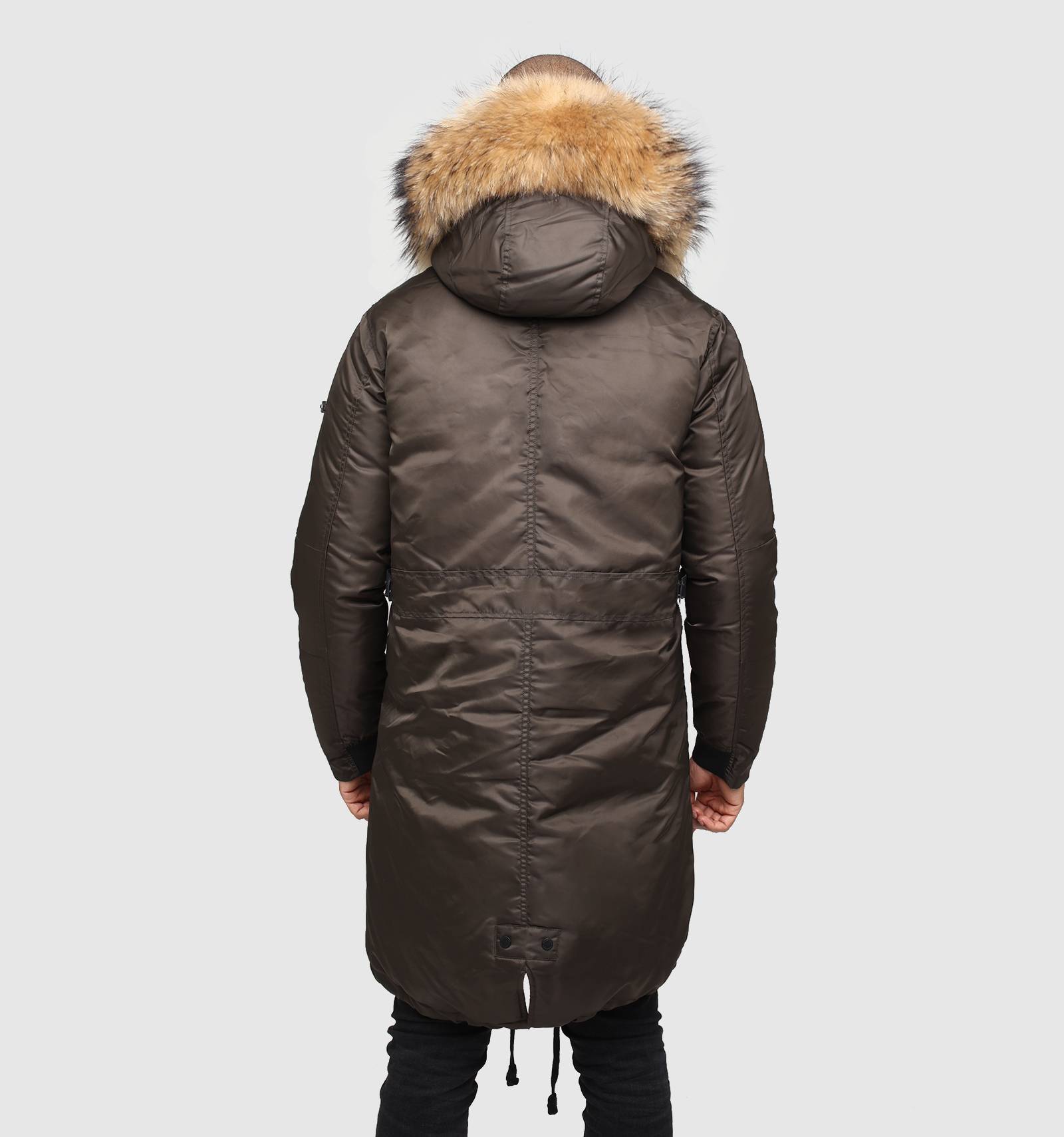 Le grand froid s'invite dans le dressing REDSKINS et la parka MAESTRO HARRODS sort le grand jeu. Confectionnée en nylon kaki et ornée d'une capuche en fourrure, de grandes poches à rabats et d'une fermeture sous patte, cette pièce incontournable de la saison associe le style et le confort.