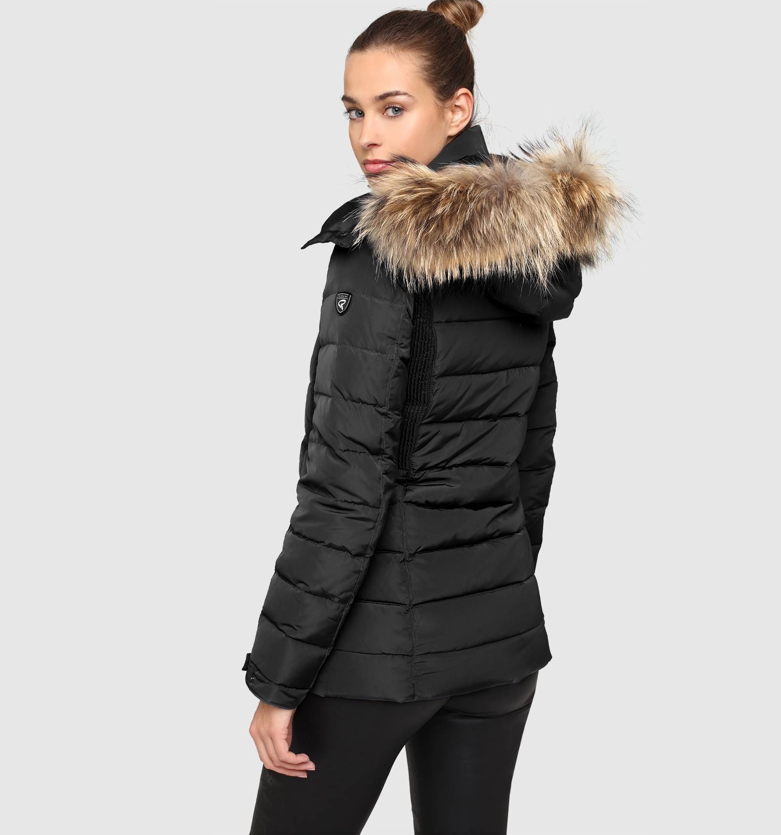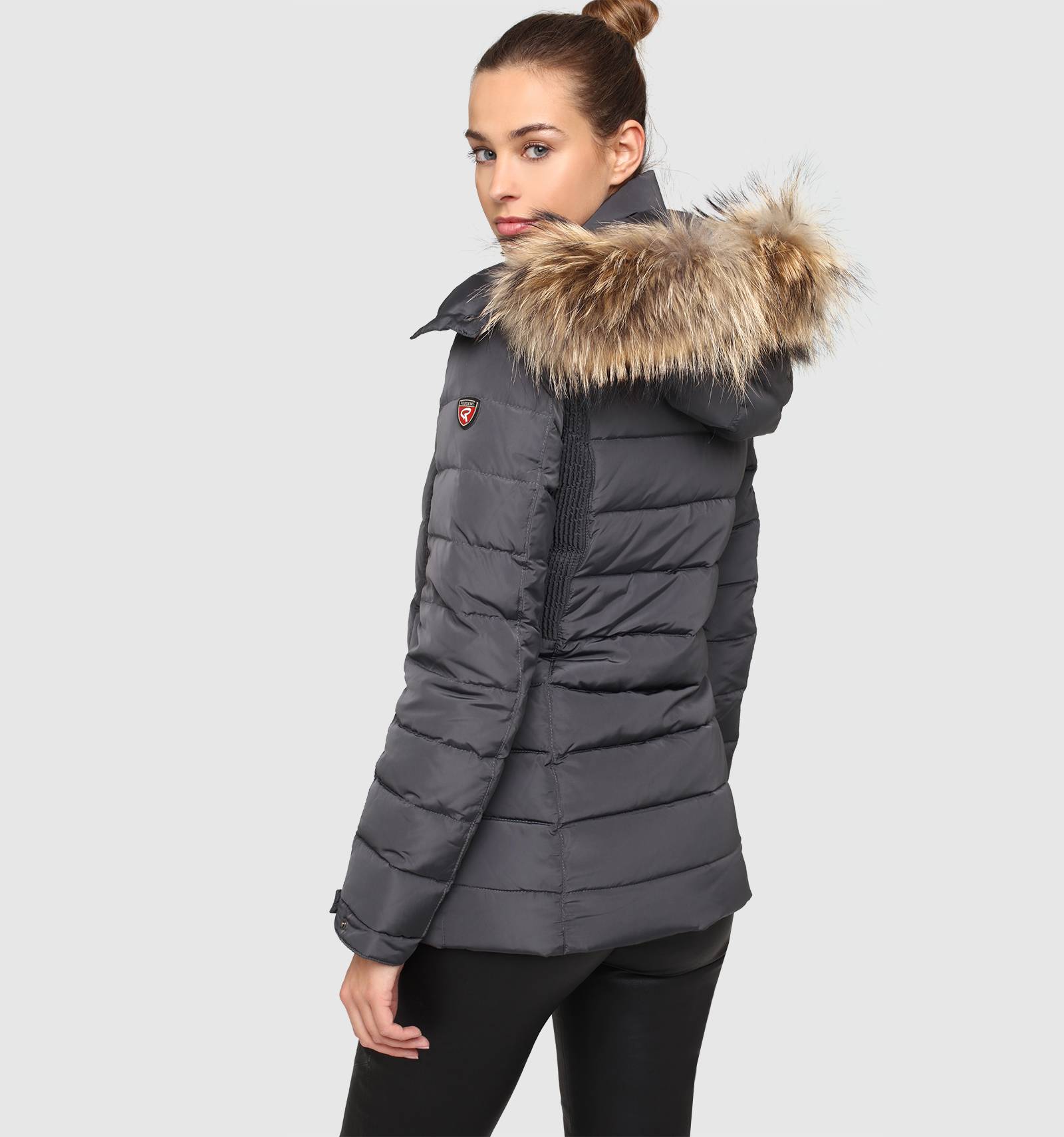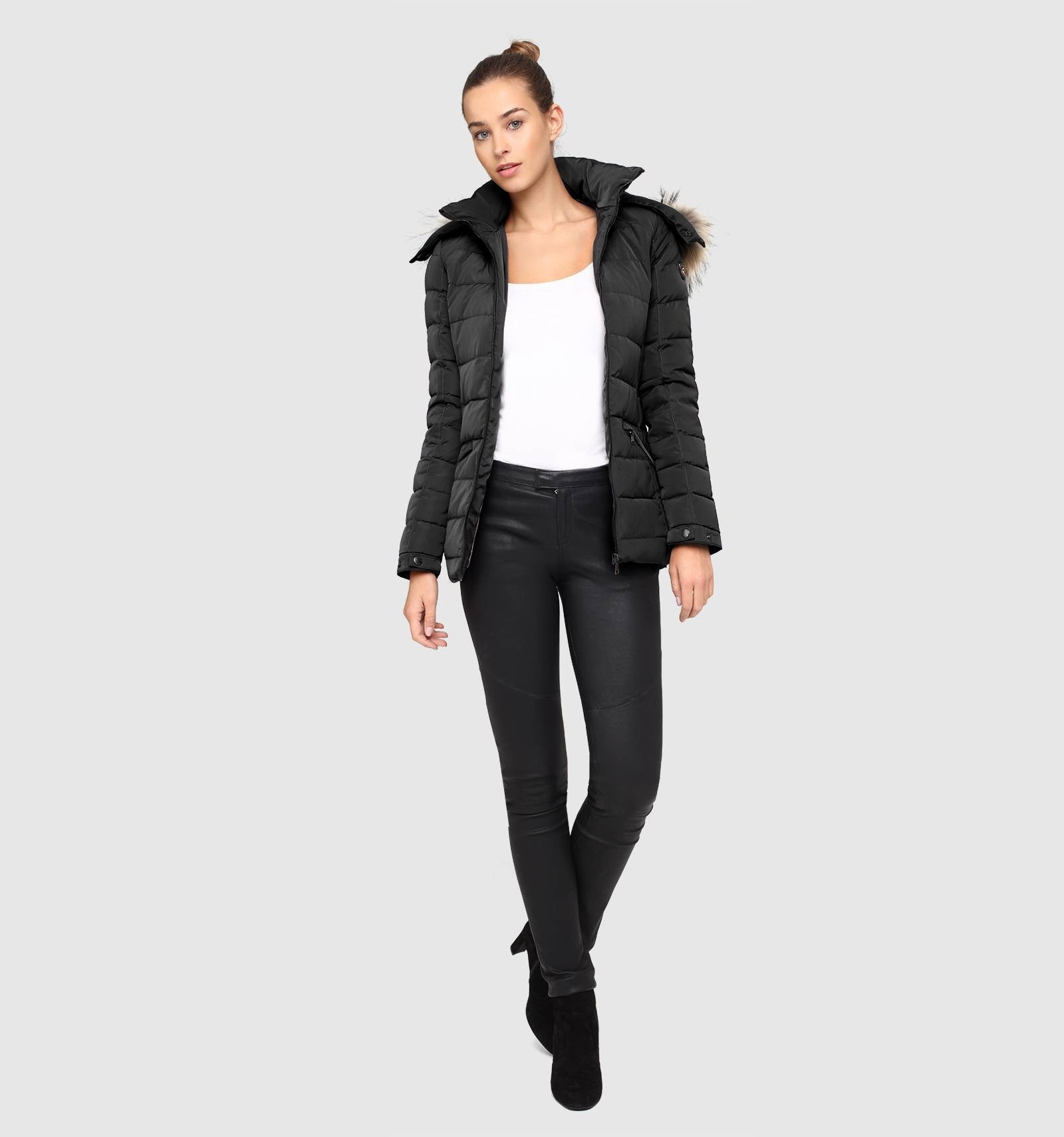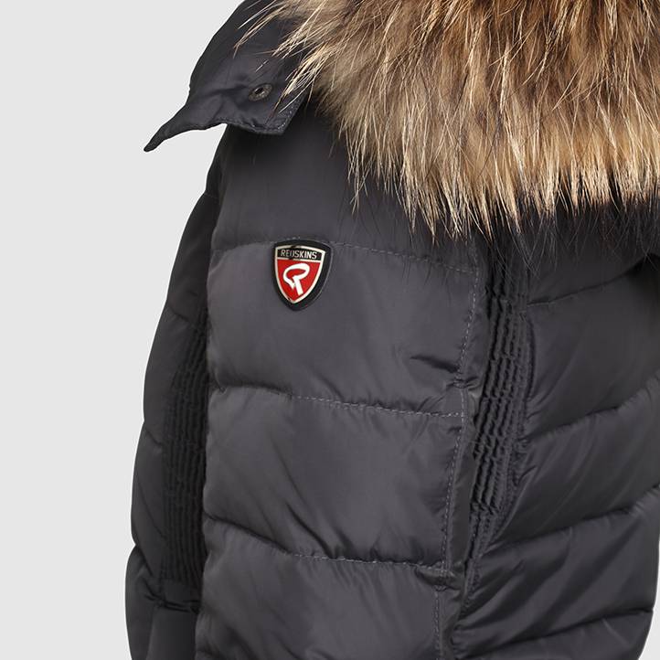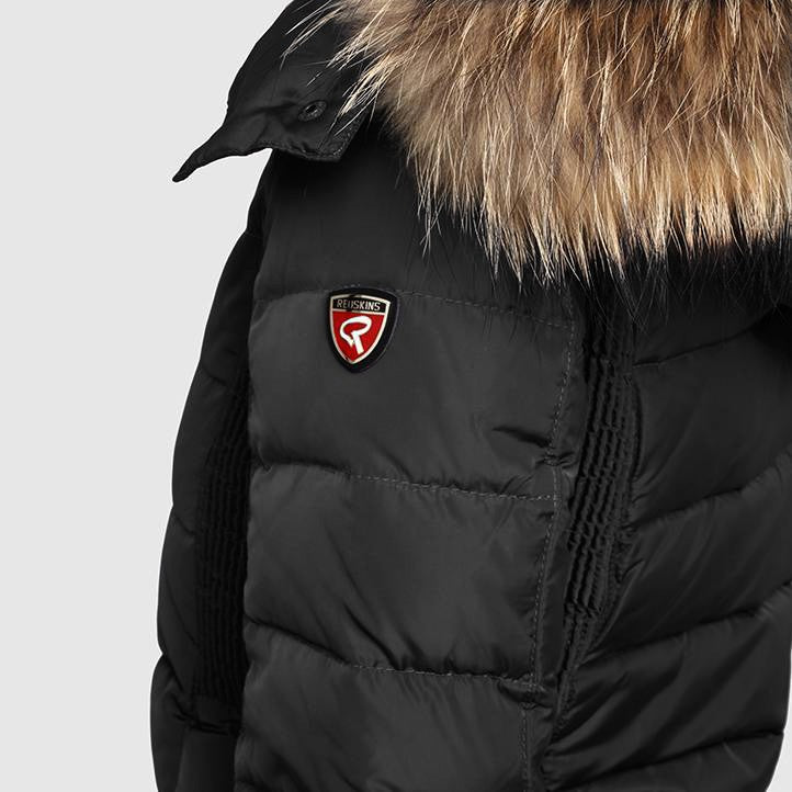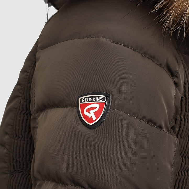 La doudoune matelassée bleu marine MAIWENN CAMPBELL est une pièce intemporelle de la garde-robe d'hiver parée d'une capuche en fourrure, de finitions métalliques aux poches et à la fermeture, d'un écusson REDSKINS sur la manche et des empiècements striés sur les côtés ajustent sa coupe.