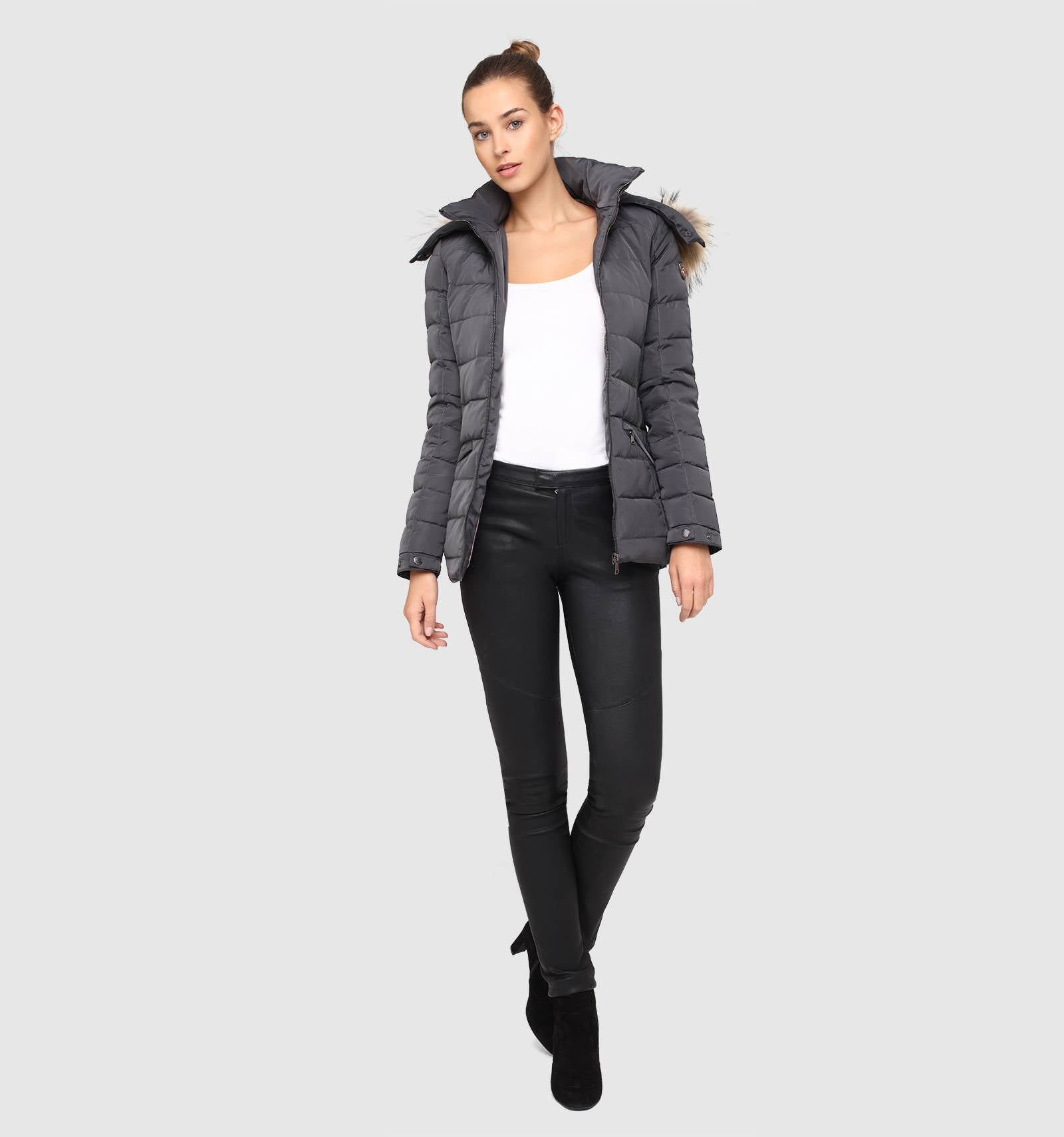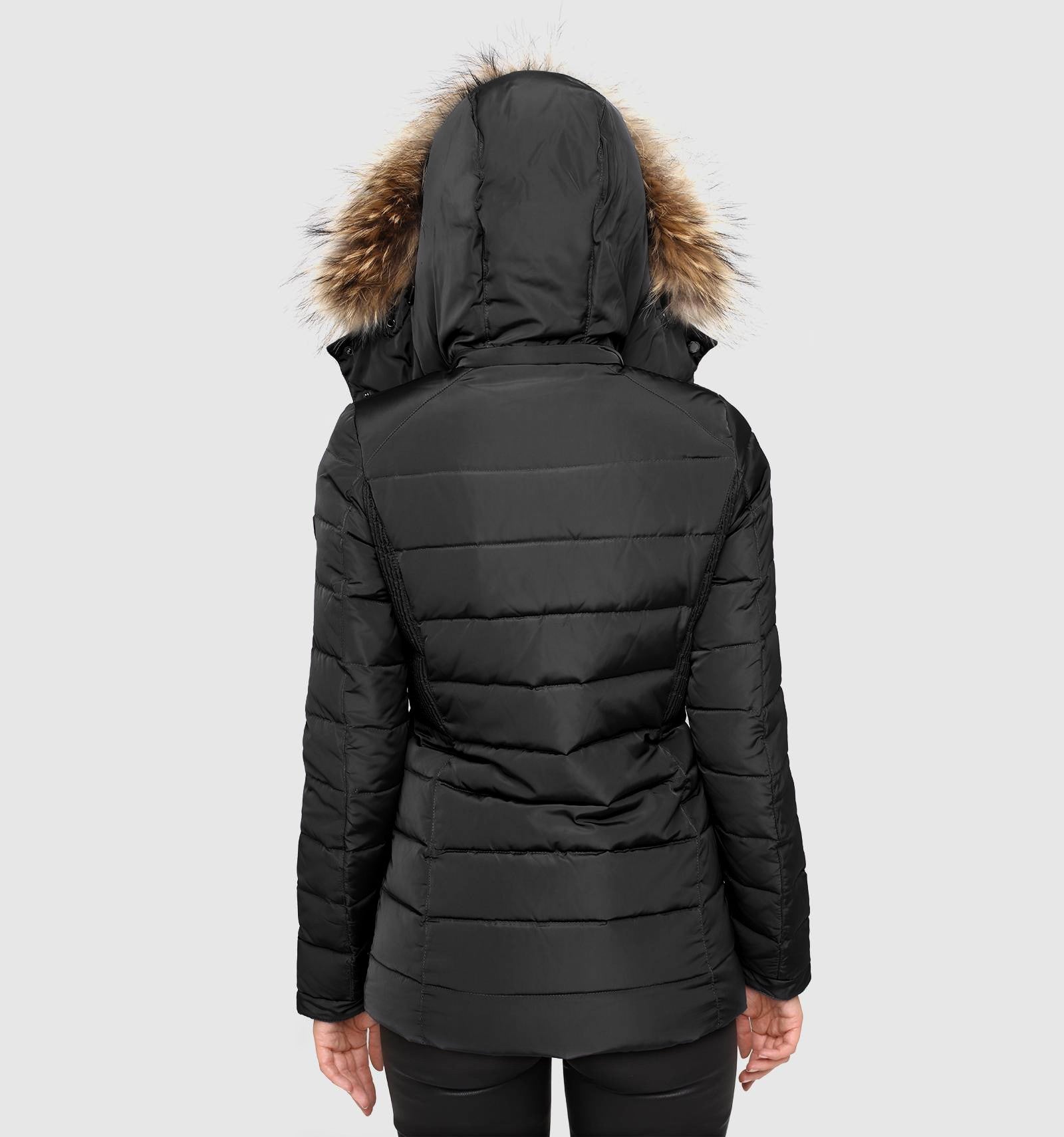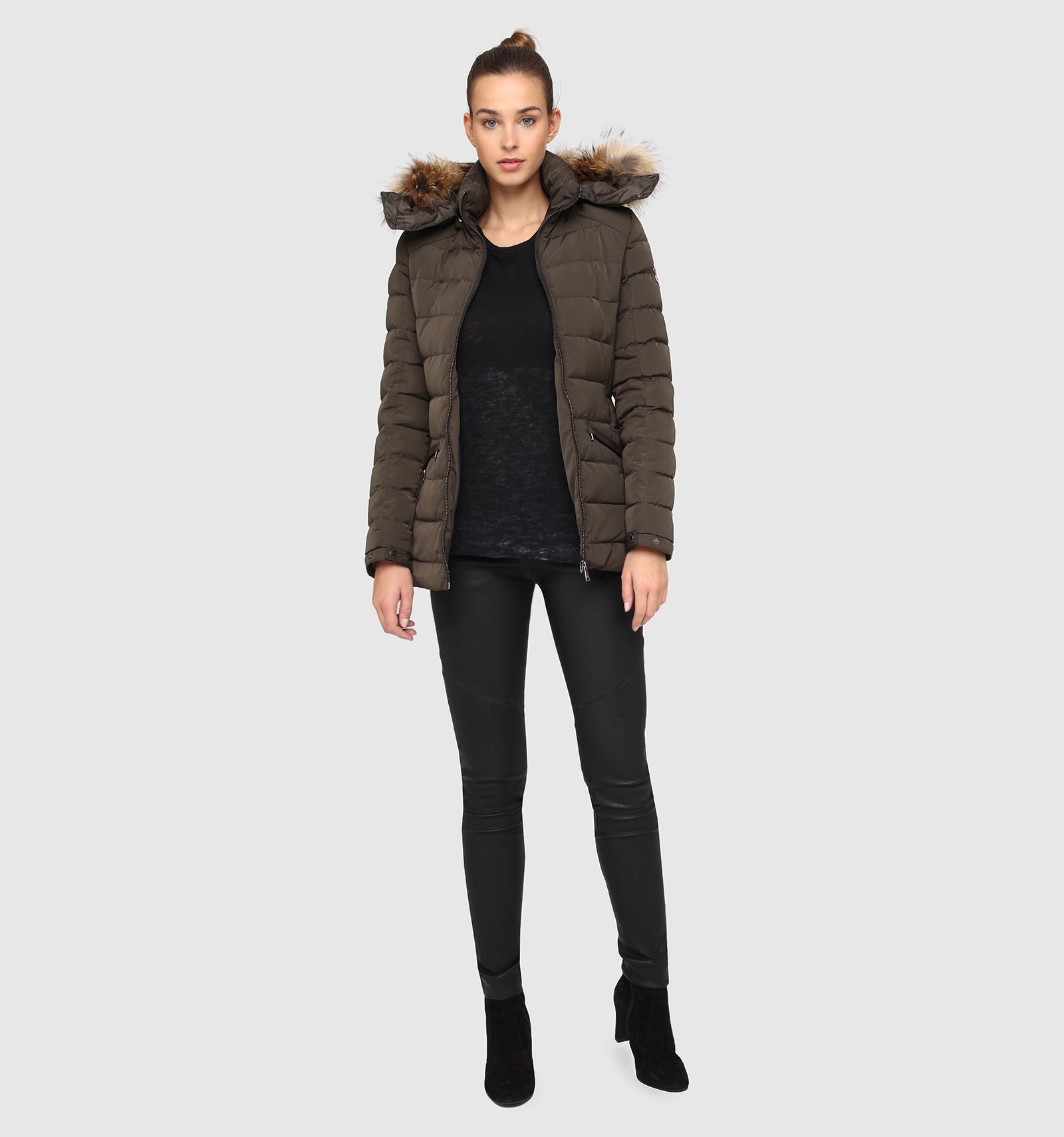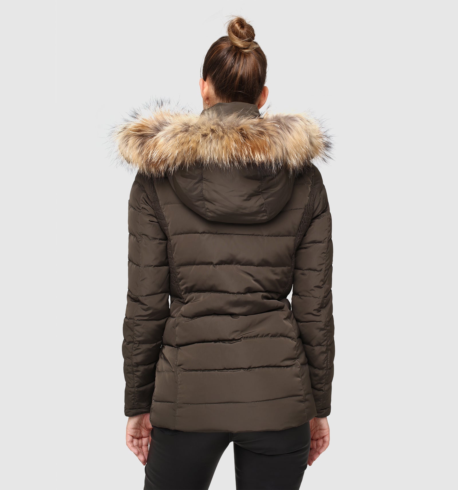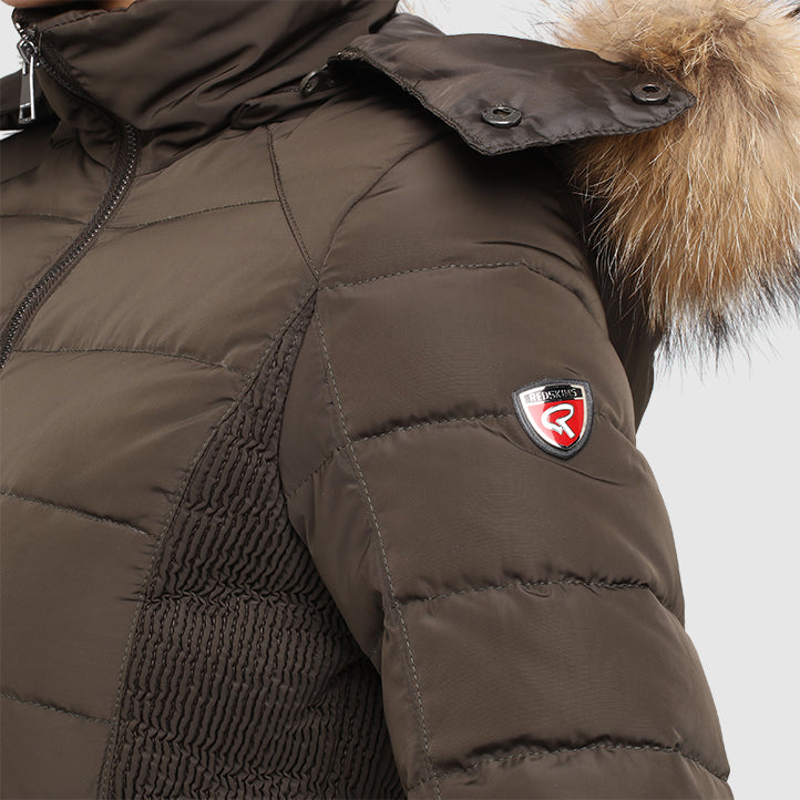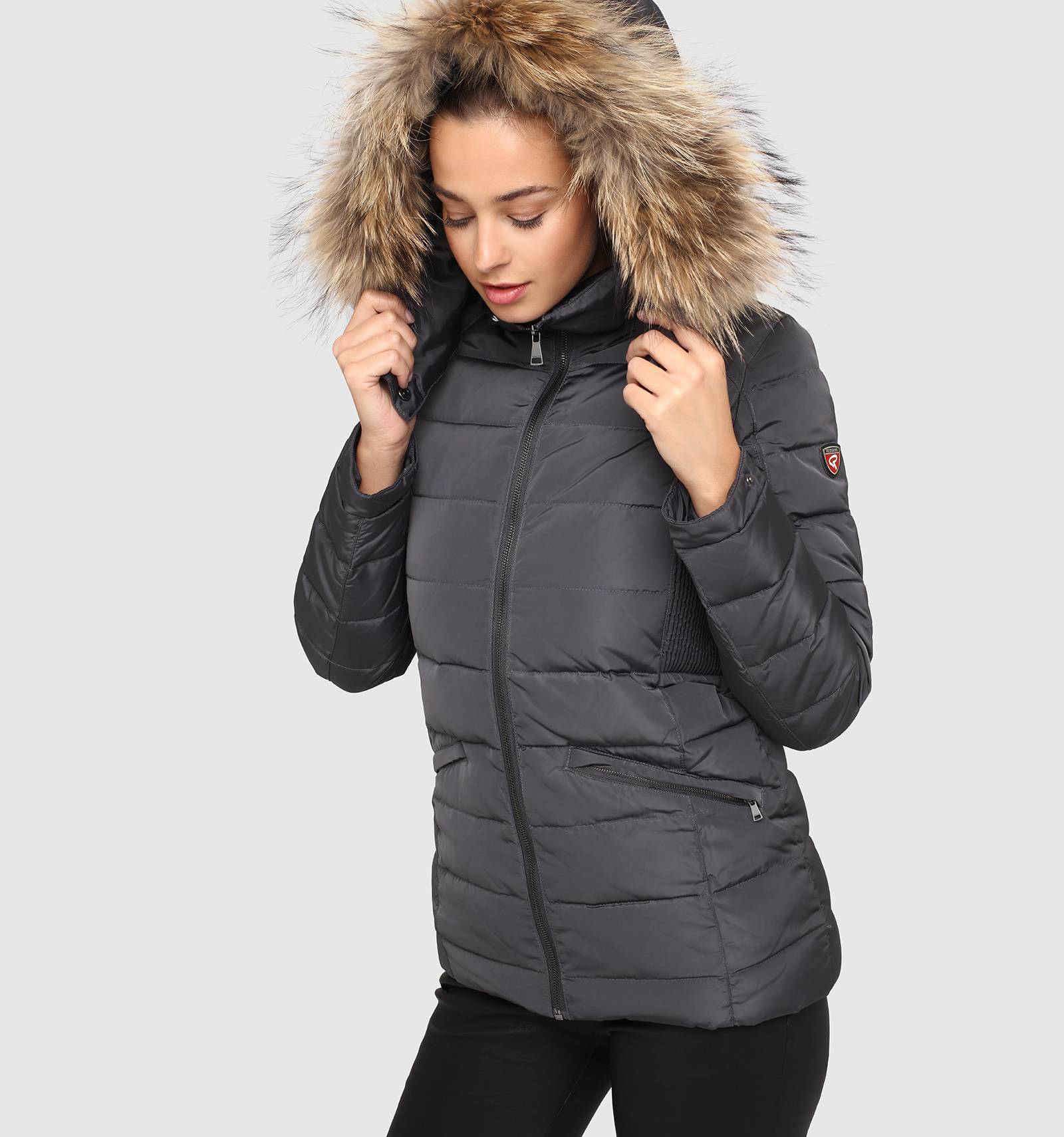 La doudoune matelassée bleu marine MAIWENN CAMPBELL est une pièce intemporelle de la garde-robe d'hiver parée d'une capuche en fourrure, de finitions métalliques aux poches et à la fermeture, d'un écusson REDSKINS sur la manche et des empiècements striés sur les côtés ajustent sa coupe.