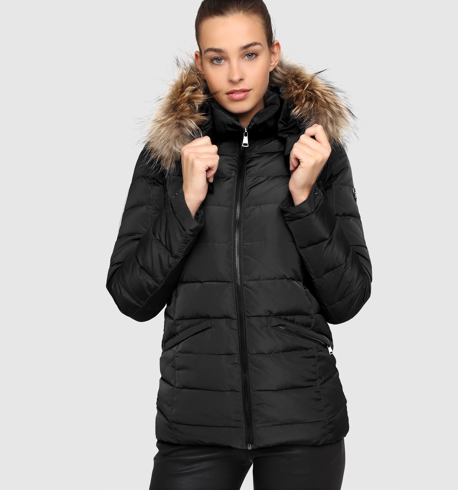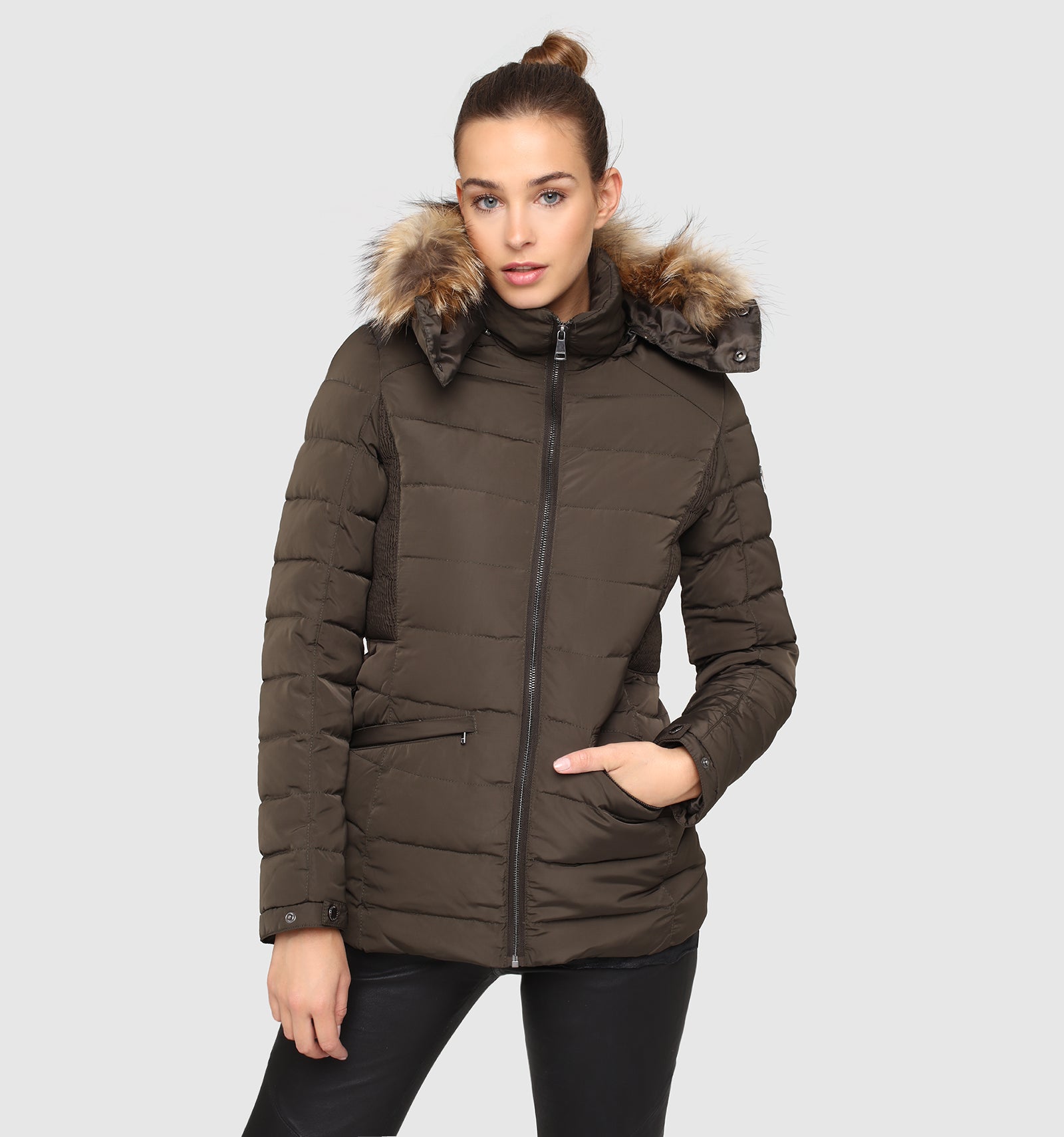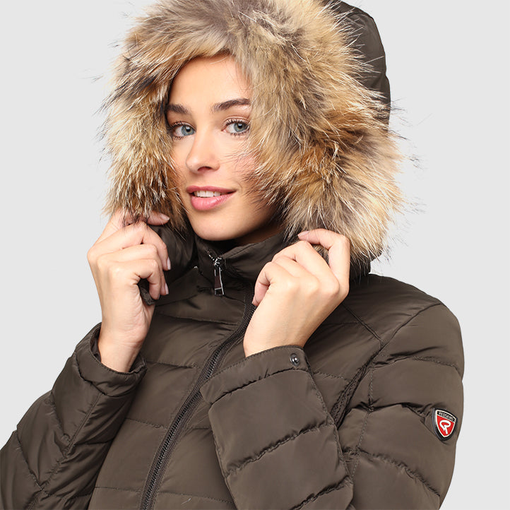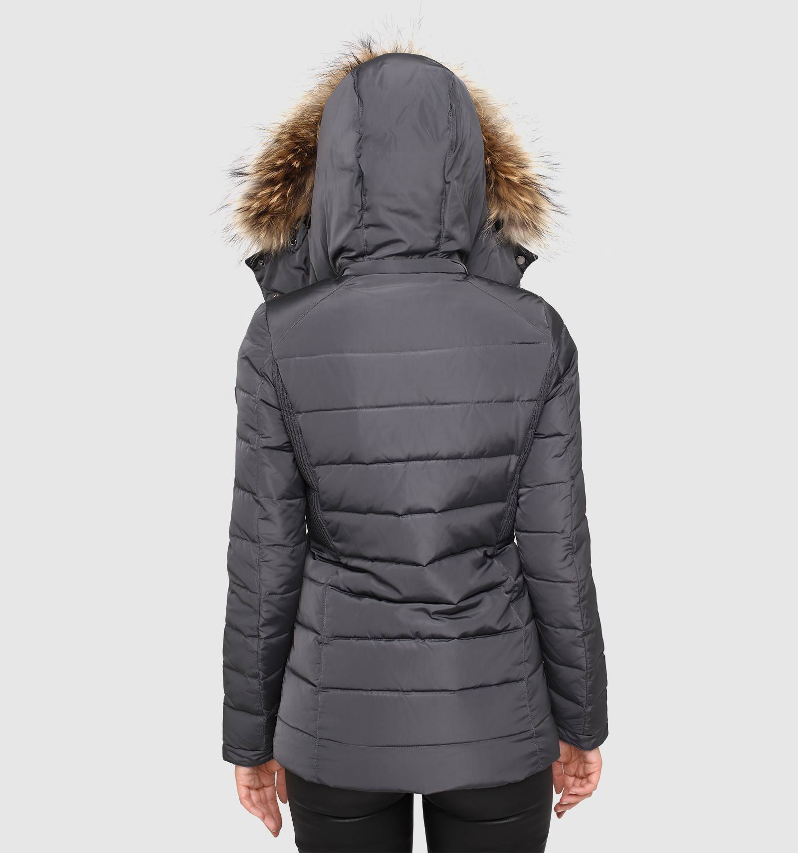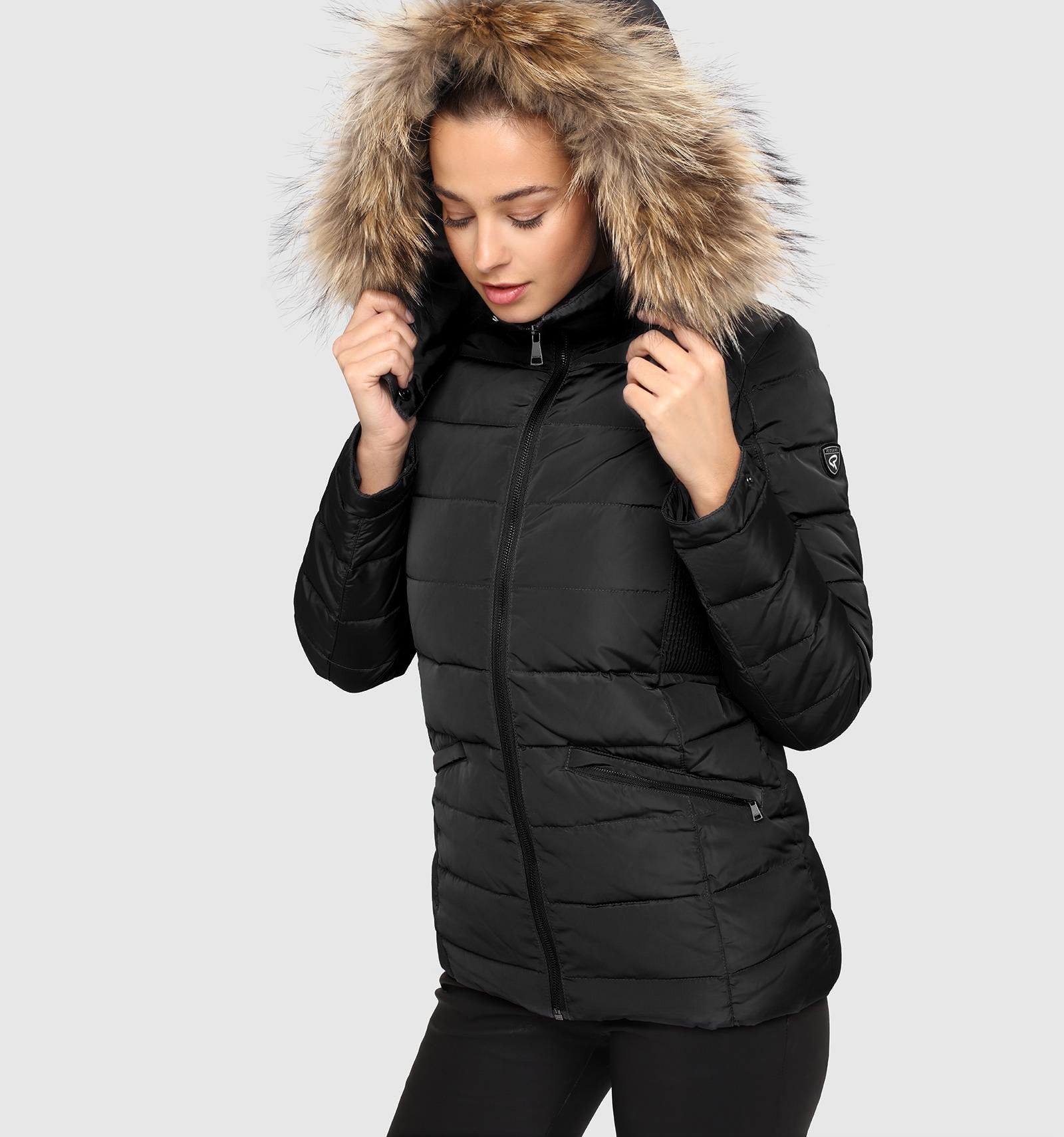 La doudoune matelassée bleu marine MAIWENN CAMPBELL est une pièce intemporelle de la garde-robe d'hiver parée d'une capuche en fourrure, de finitions métalliques aux poches et à la fermeture, d'un écusson REDSKINS sur la manche et des empiècements striés sur les côtés ajustent sa coupe.