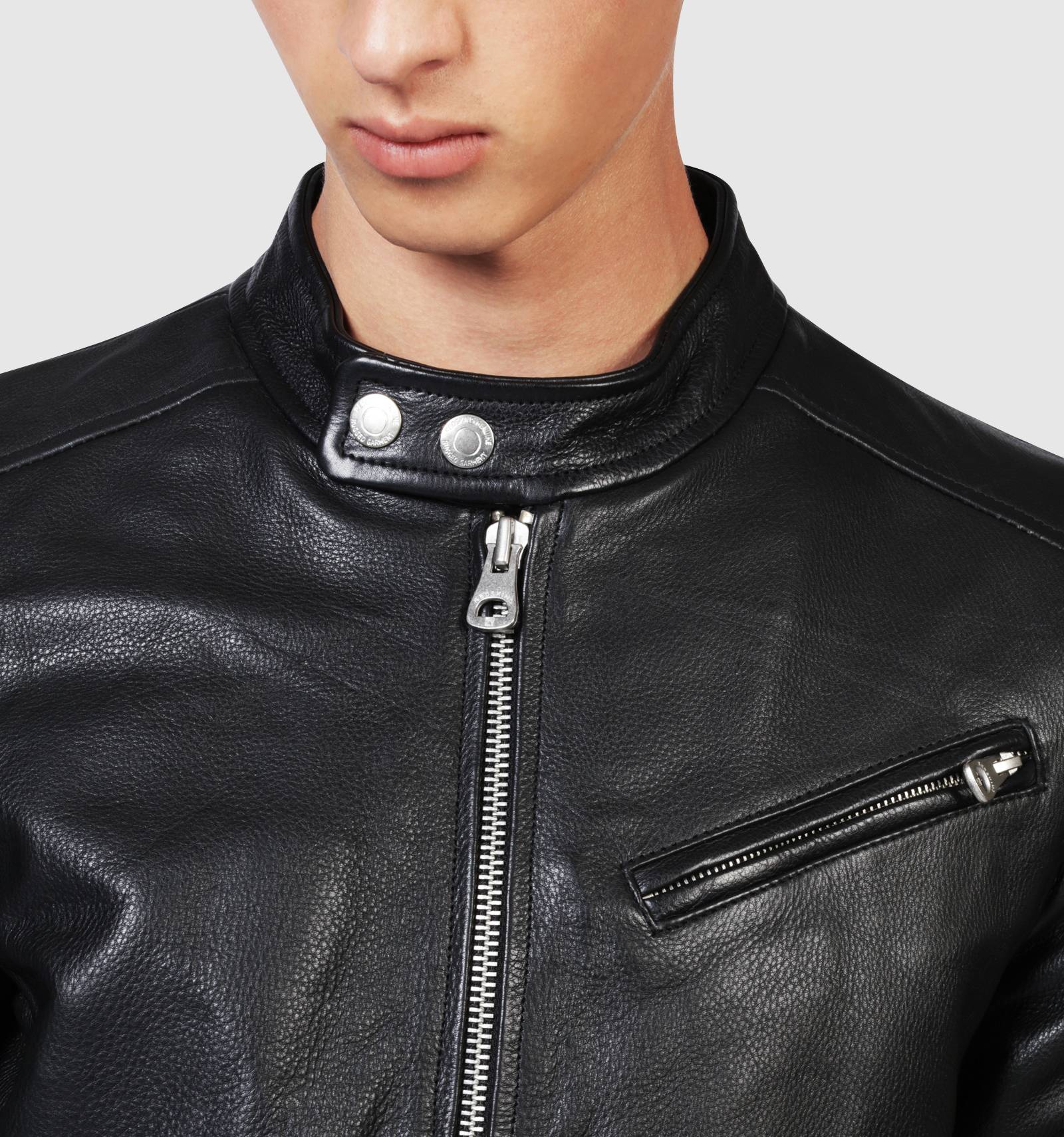 En cuir noir grainé, le blouson NITRO CARTER est un blouson aux influences motardes, dont le zip métallique est l'apparat, des poches aux poignets. Les surpiqures lui donnent du relief, les sangles sur les c™tés cintrent sa taille, l'écusson signature de la maison est brodé au dos et son col montant à pressions apporte la touche finale à cette pice de caractre.