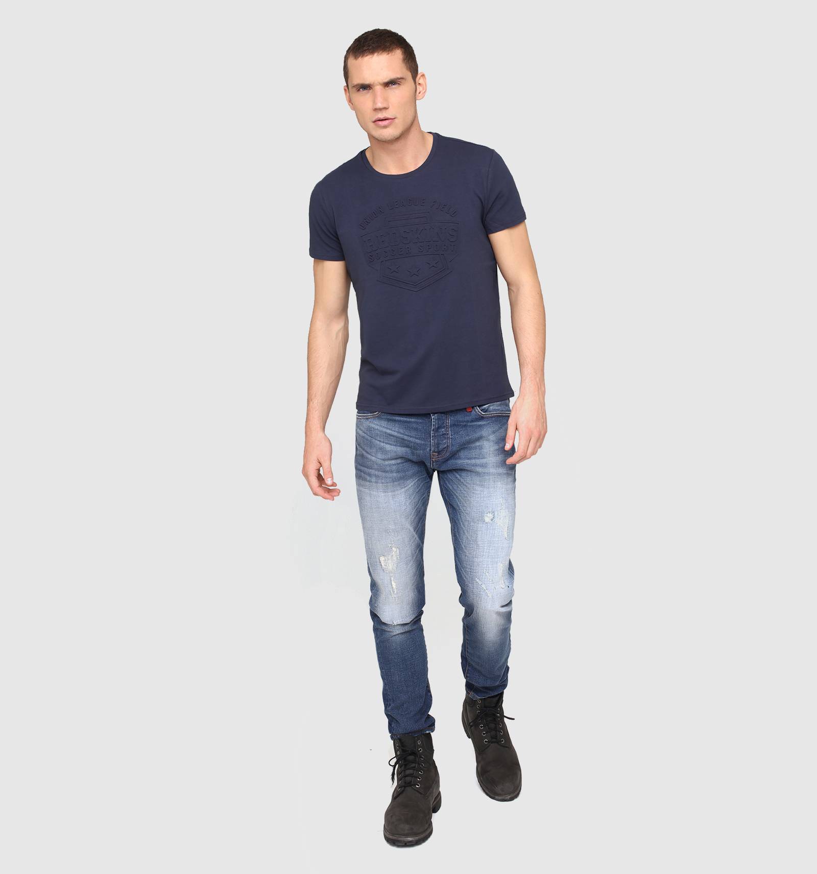 En coton marine, le t-shirt à manches courtes NORTH CALDER est orné du nom REDSKINS embossé ton sur ton. Un relief réhaussé par un col rond ourlé et une coupe près du corps.