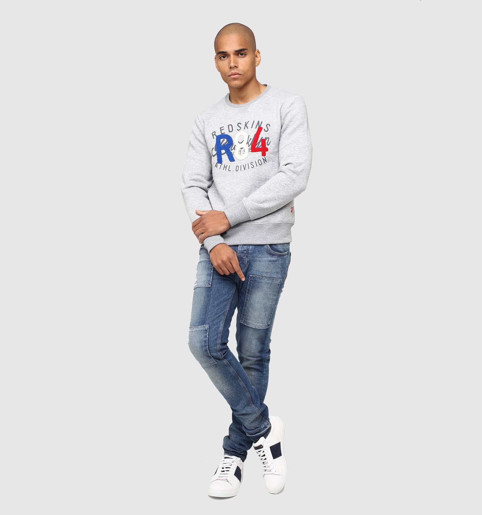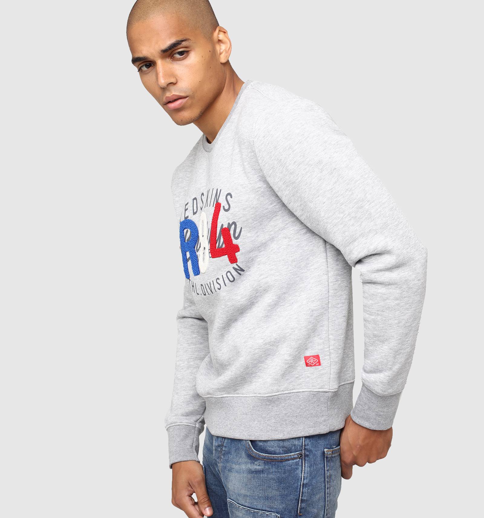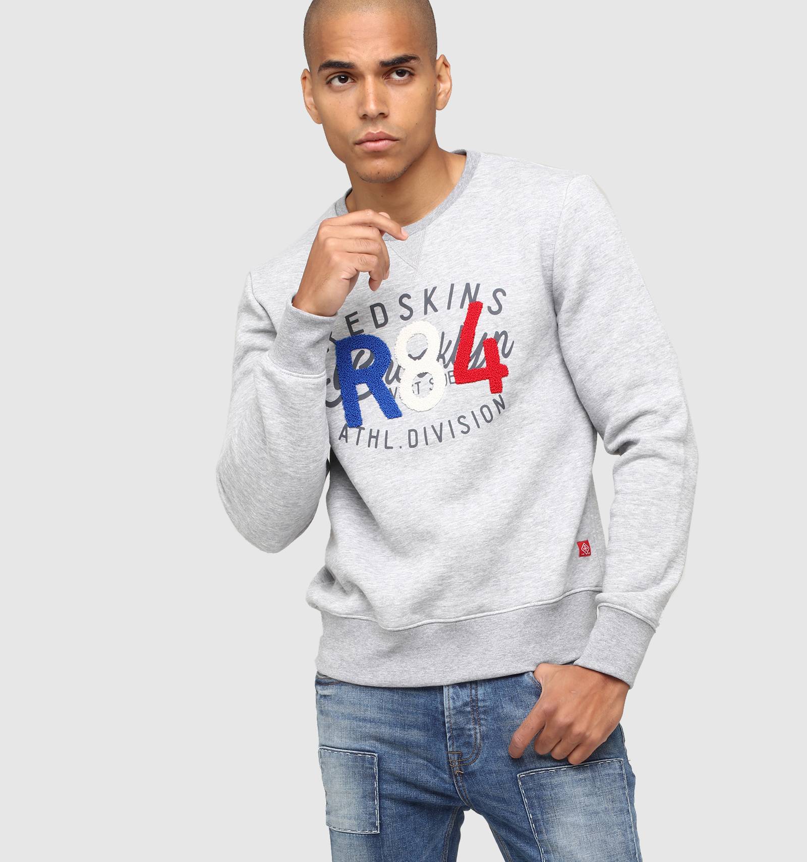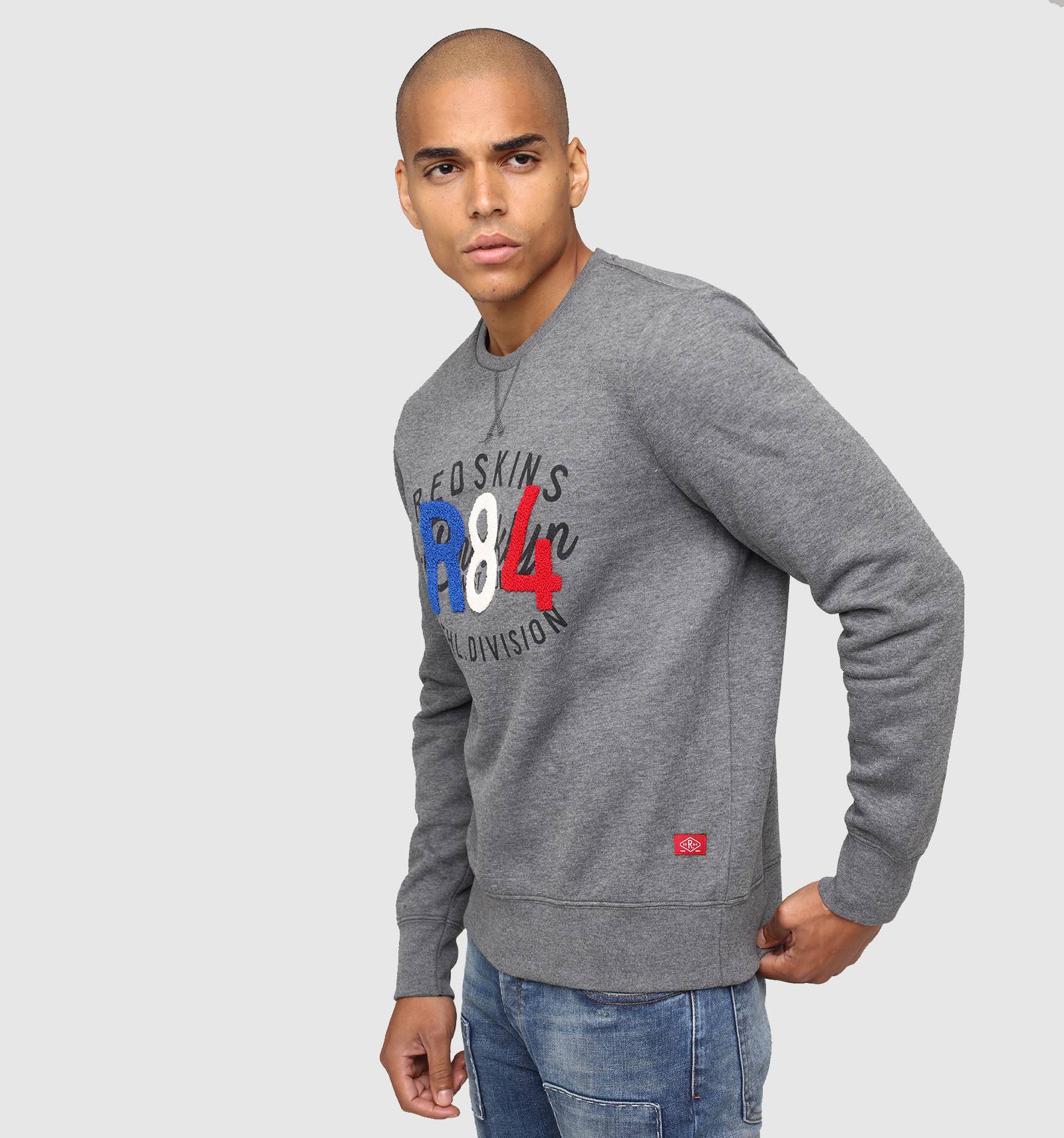 Sur le sweat en molleton gris chiné POOR POSTER, le bleu-blanc-rouge se porte avec fierté et style. A col rond et à la coupe près du corps, ses poignets et sa taille sont ornés de bord-côte et une broderie tricolore en point de bouclette donne à cette pièce une allure unique.