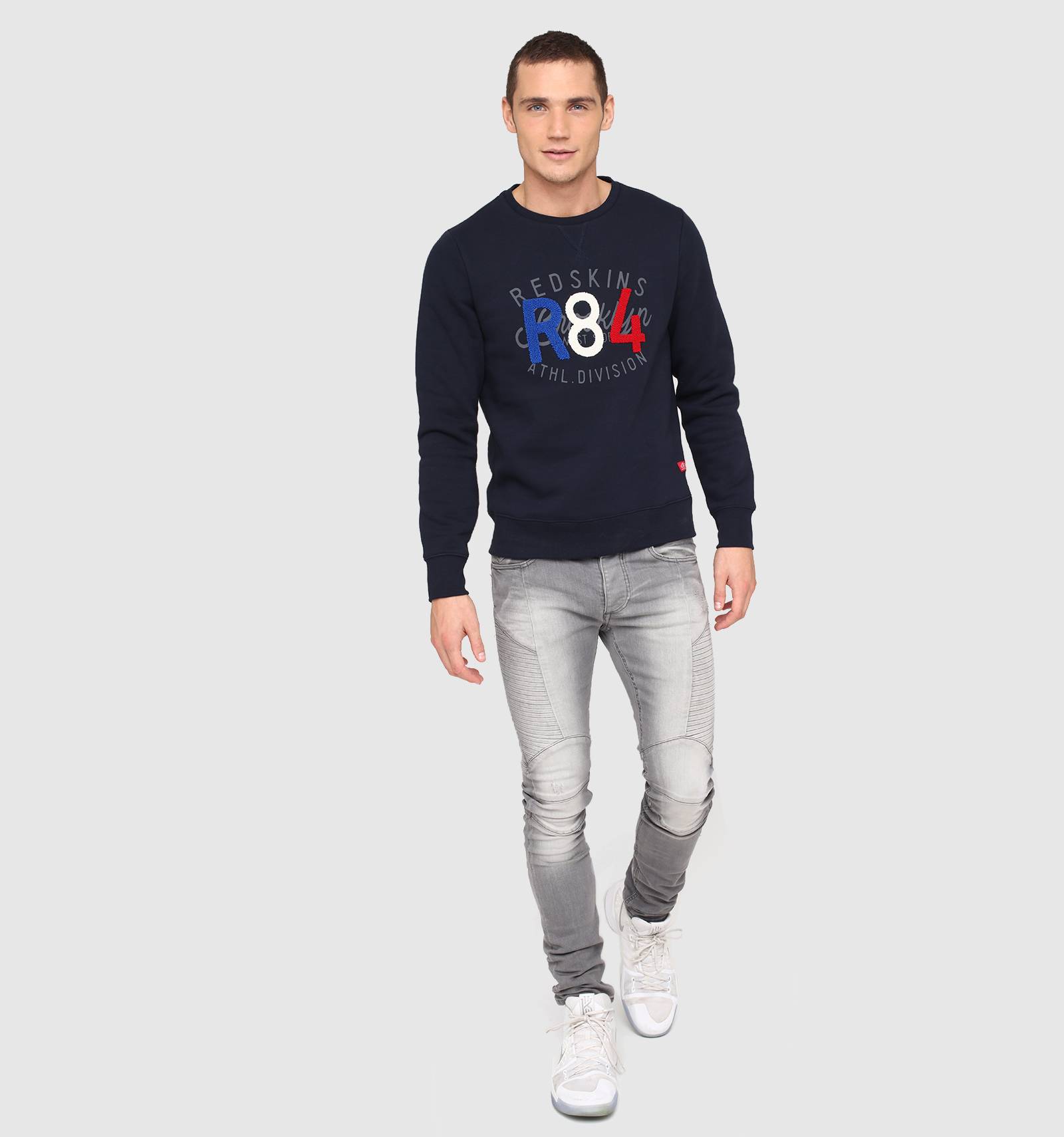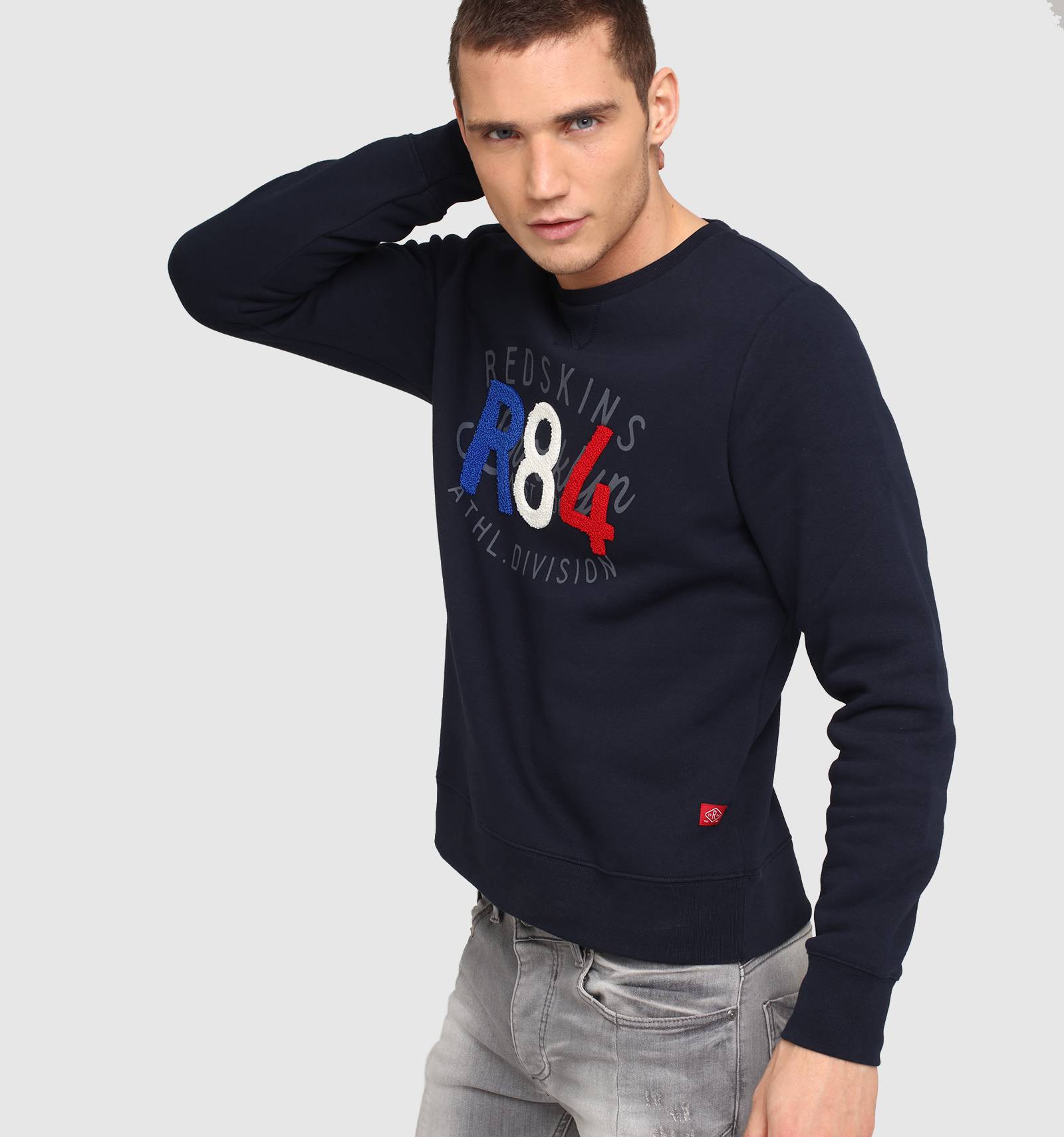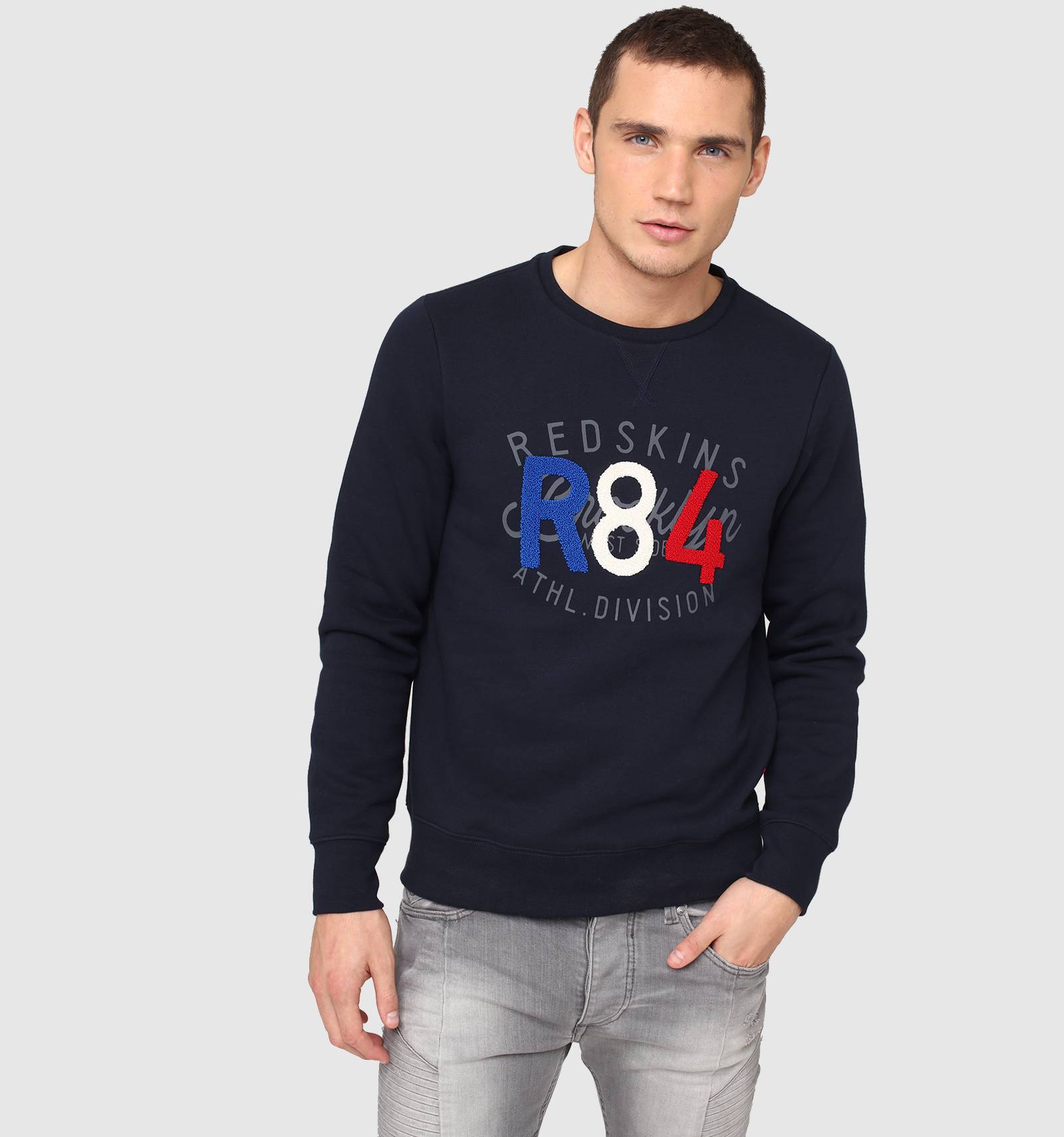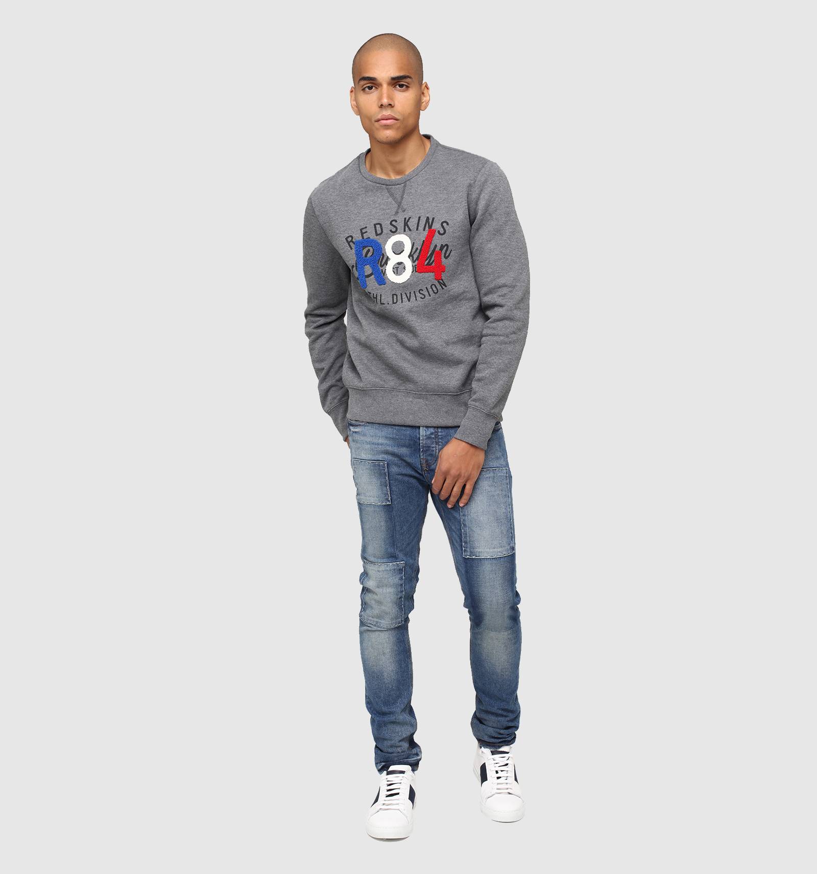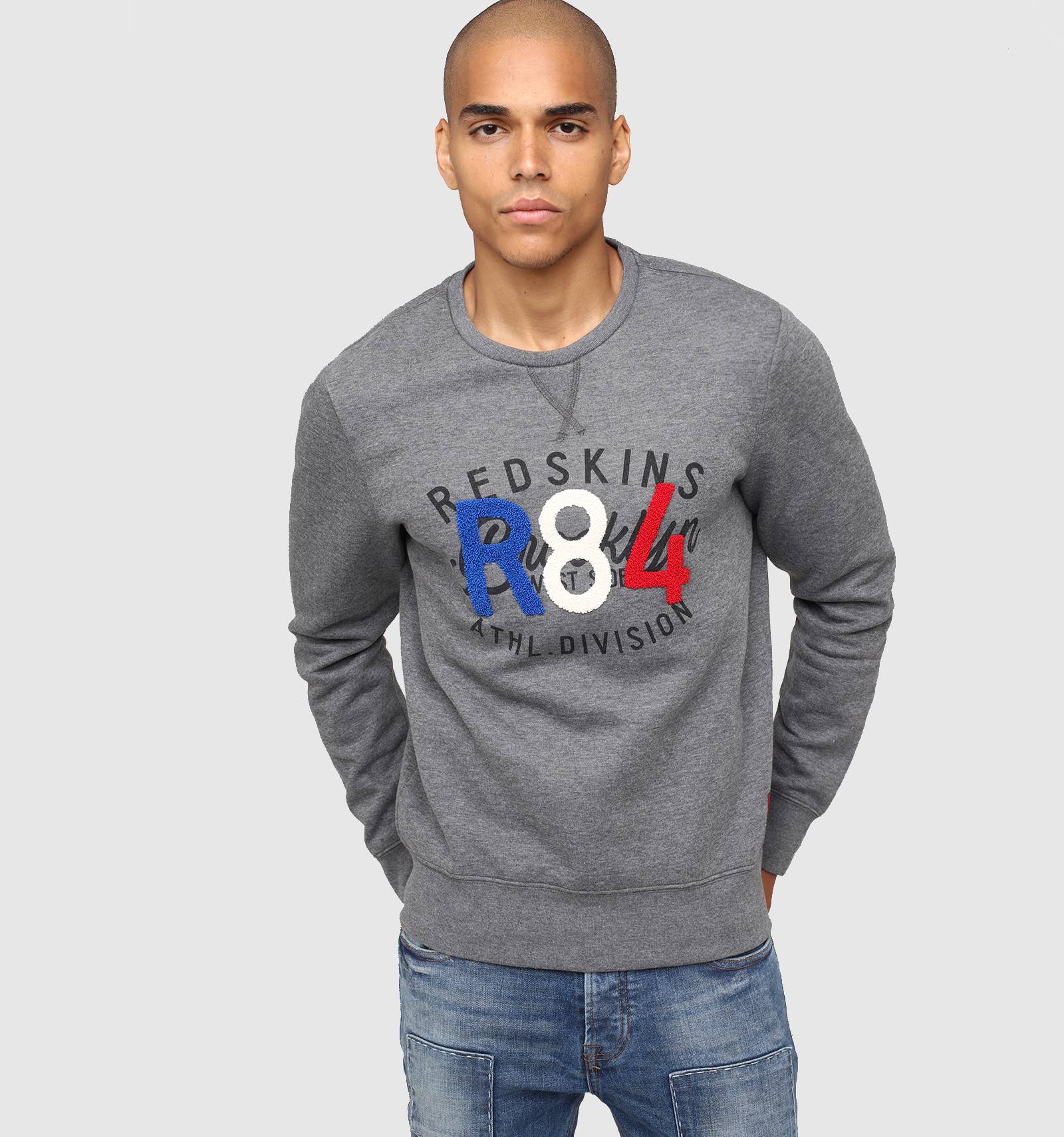 Sur le sweat en molleton gris chiné POOR POSTER, le bleu-blanc-rouge se porte avec fierté et style. A col rond et à la coupe près du corps, ses poignets et sa taille sont ornés de bord-côte et une broderie tricolore en point de bouclette donne à cette pièce une allure unique.