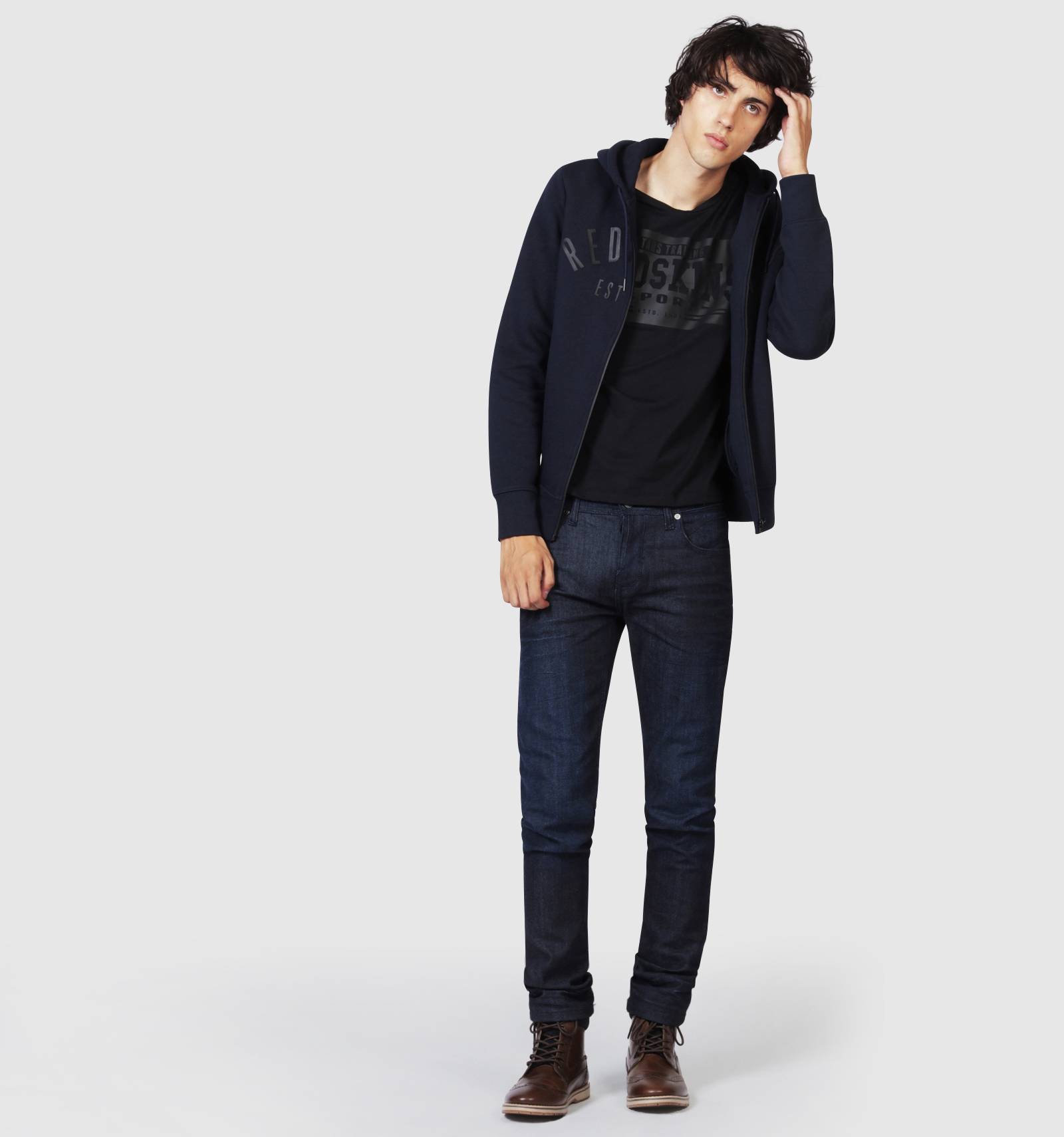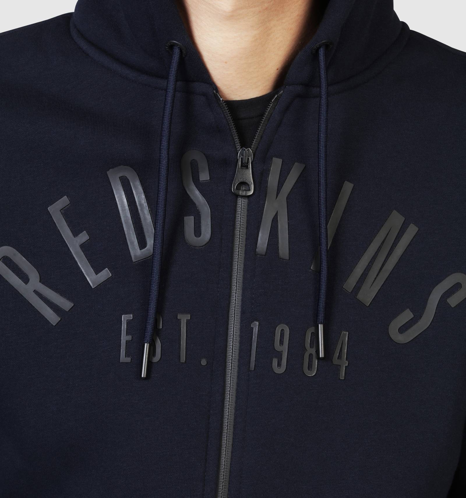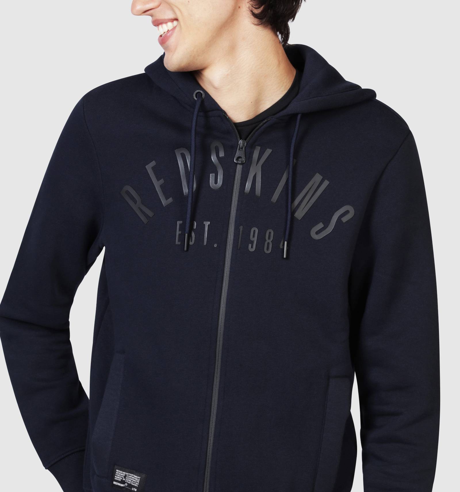 Au style urbain et minimaliste, le sweat à capuche SCAP POSTER porte la signature REDSKINS avec subtilité. Confectionné dans un molleton bleu marine, il est orné d'inscriptions en gomme ton sur ton, ainsi que de deux poches latérales de chaque c™té du zip de fermeture. Aux poignets et à la taille, du bord-c™te apporte une touche décontractée.