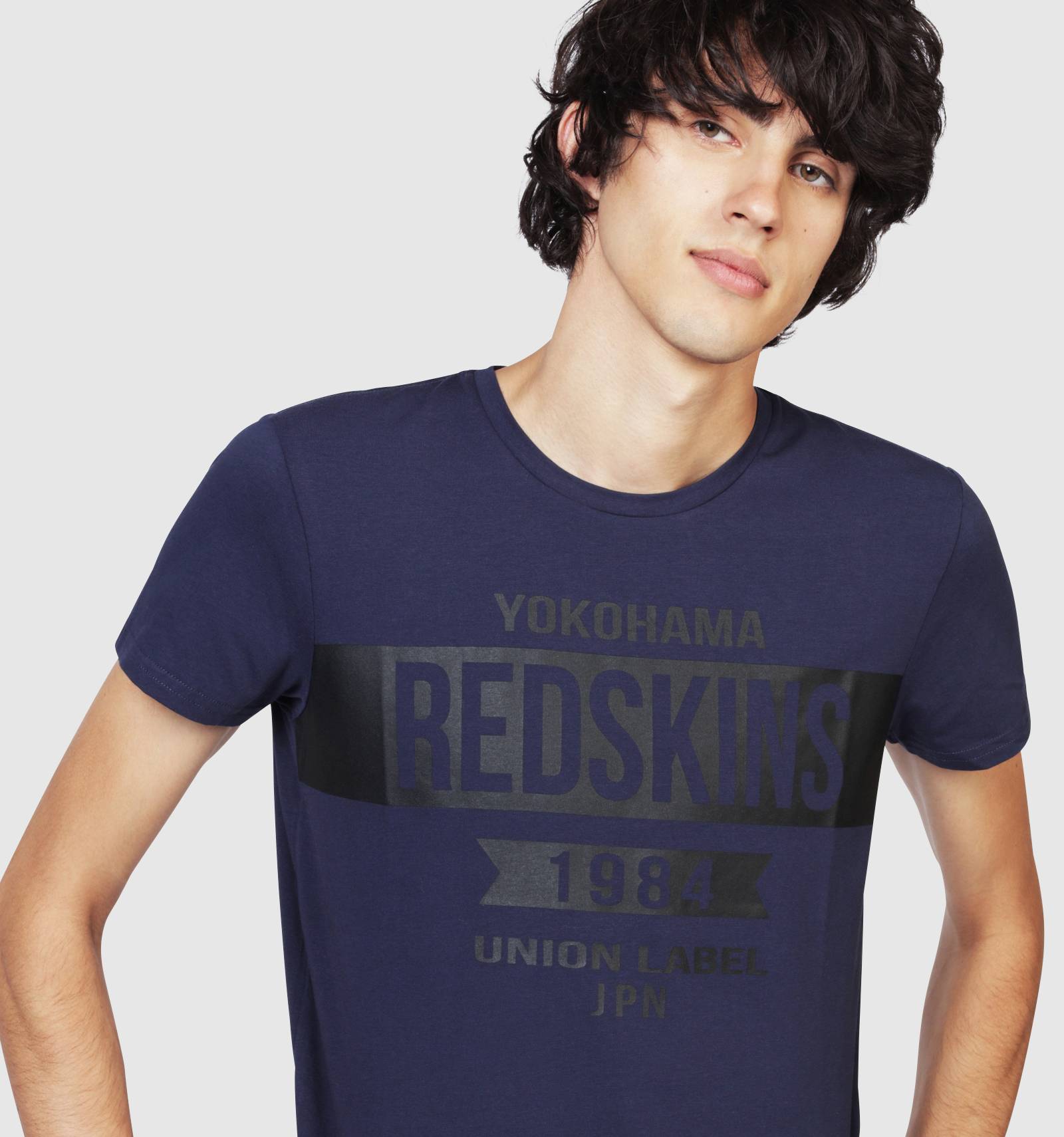 REDSKINS s'offre une parenthse japonaise avec le t-shirt à manches courtes SOFTBALL CALDER. En coton marine, au col rond ourlé et à la coupe prs du corps, il est orné d'inscriptions venant du pays du soleil levant sur le torse.