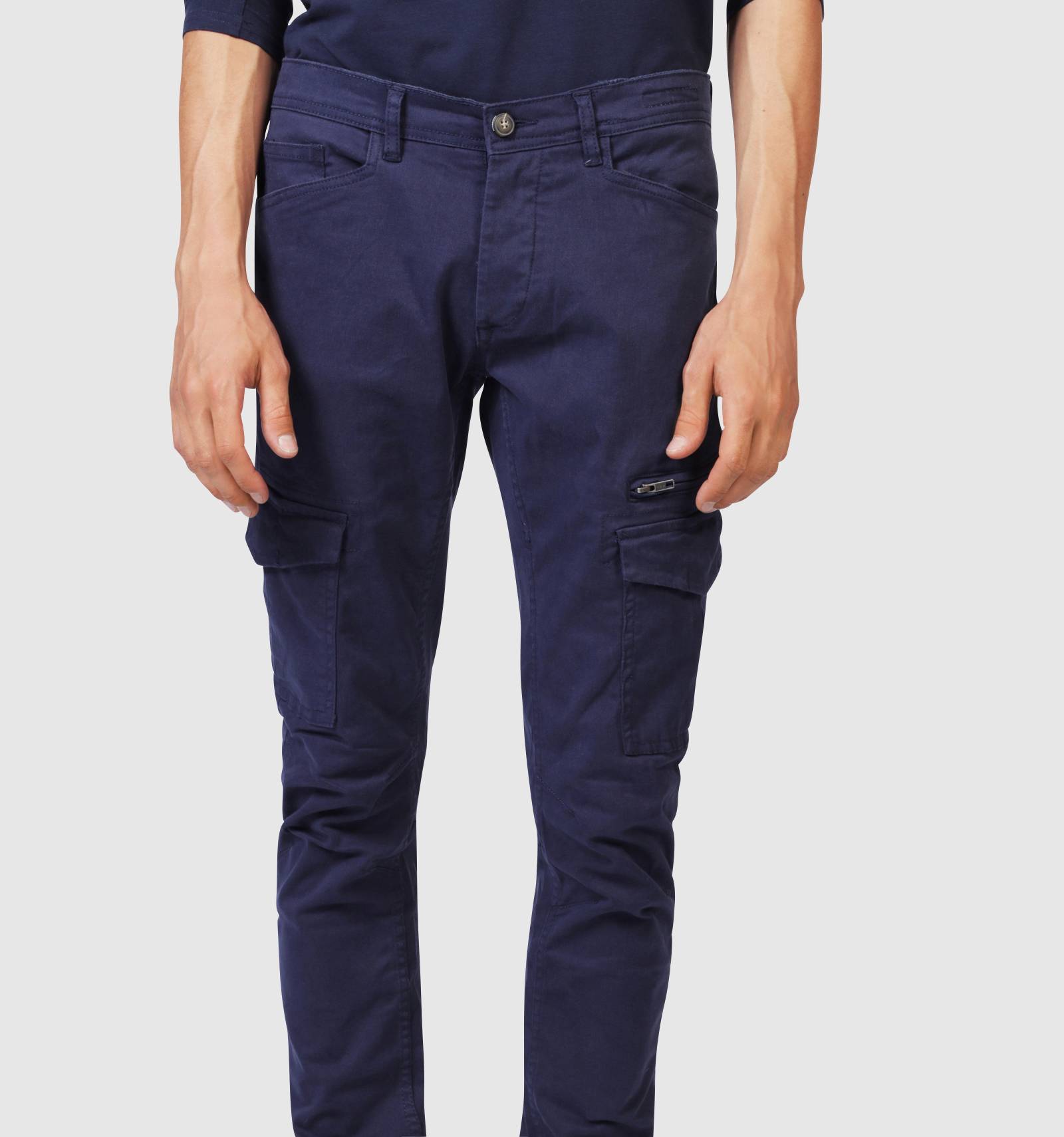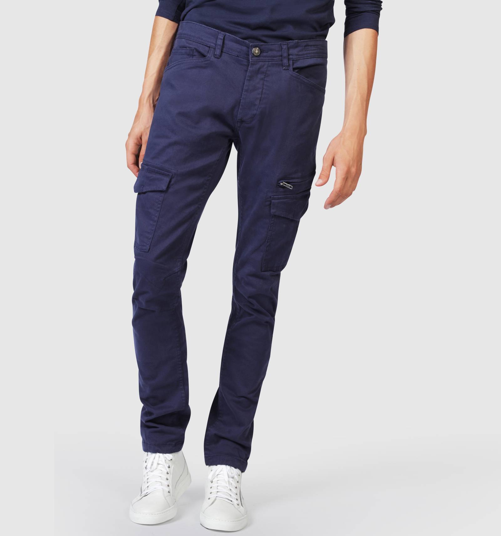 Inspiré des uniformes militaires, le pantalon en toile marine TONVUI MAHEVAN interpelle par un style singulierÊ: une coupe cargo, un jeu de poches à rabats et à zips, des surpiqures ton sur ton et un jacron en cuir REDSKINS au dos. Léger et confortable, c'est une pice à la fois décontractée et chic.
