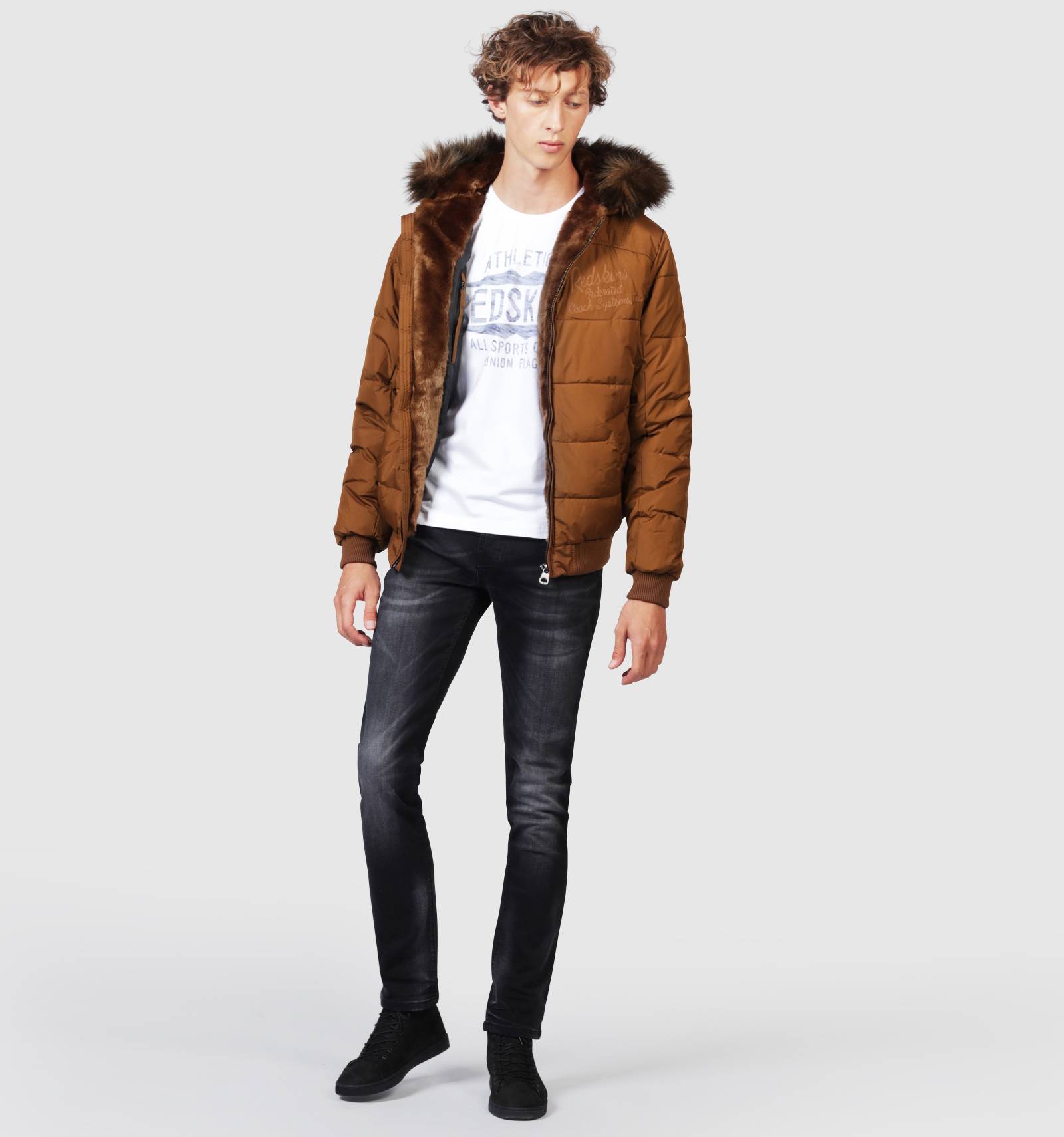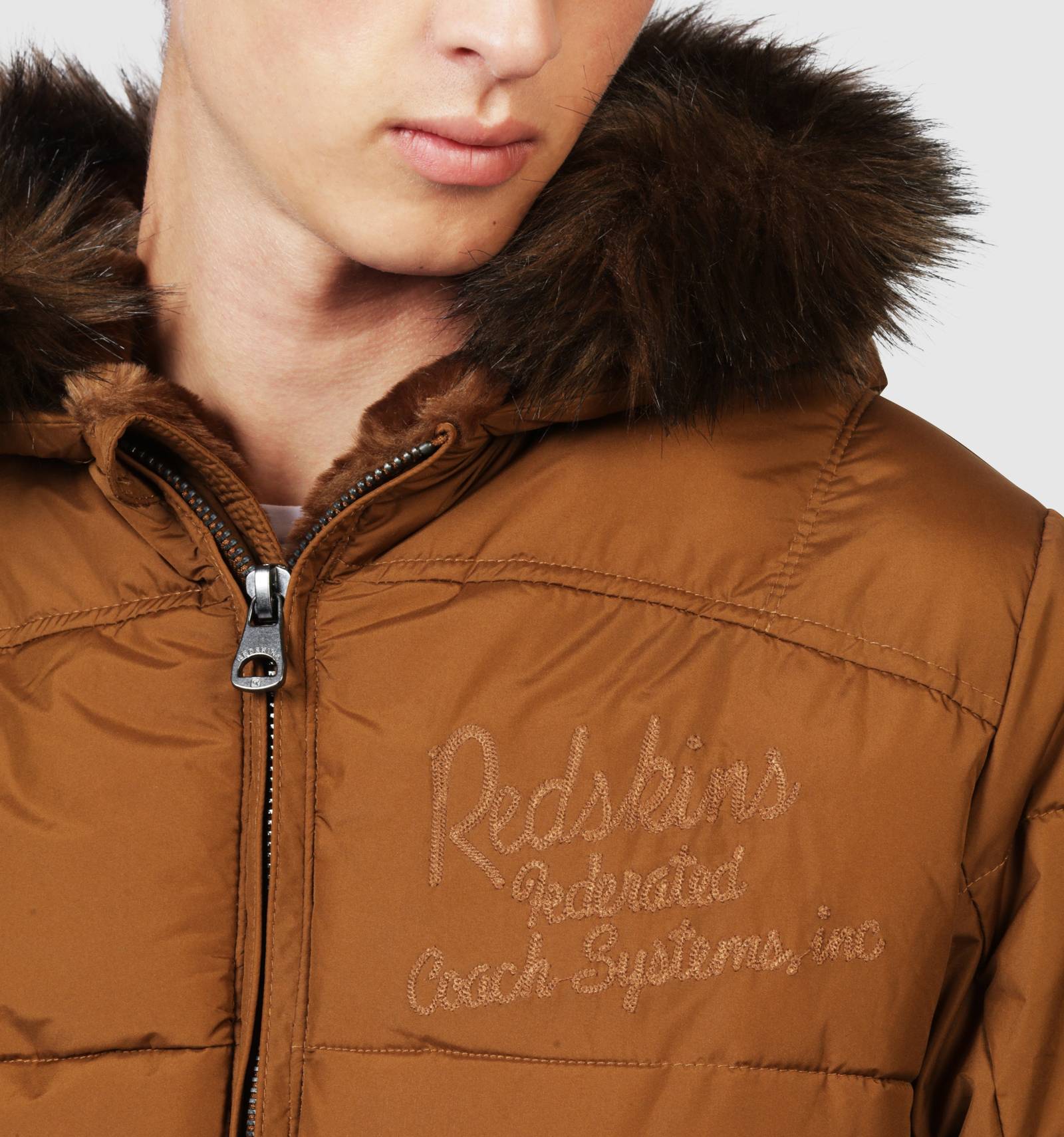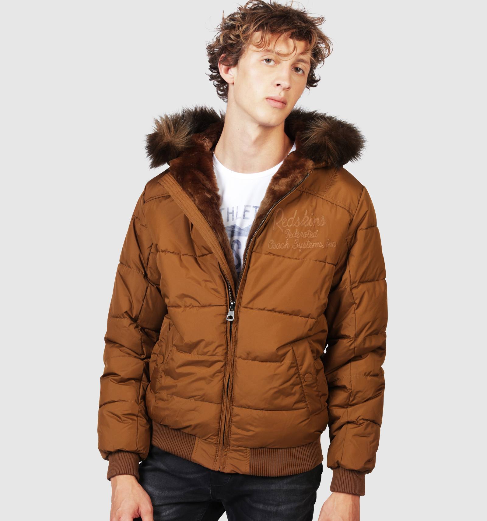 Sa sobriété séduit à premire vue, mais la doudoune WALLAS 4 OSLO est bien plus sophistiquée qu'elle n'y parait. Derrire son nylon camel matelassé, son bord-c™te aux poignets et à la taille, ses poches latérales et sa fermeture éclair se cache une doublure en fourrure dont on devine l'existence ds la capuche. La signature REDSKINS se pose en broderies ton sur ton au dos et à la poitrine.