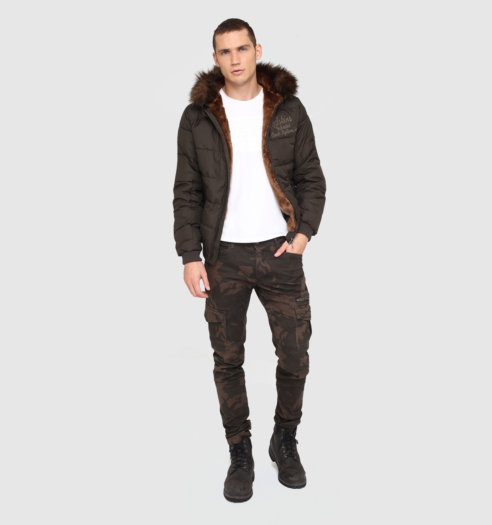 Le pantalon WALOSL incarne le style militaire avec audace. En toile camouflage et à la coupe près du corps, il est doté des classiques cinq poches et de deux autres sur les côtés à la façon des treillis, d'une fermture éclair et d'un jacron en cuir au dos.