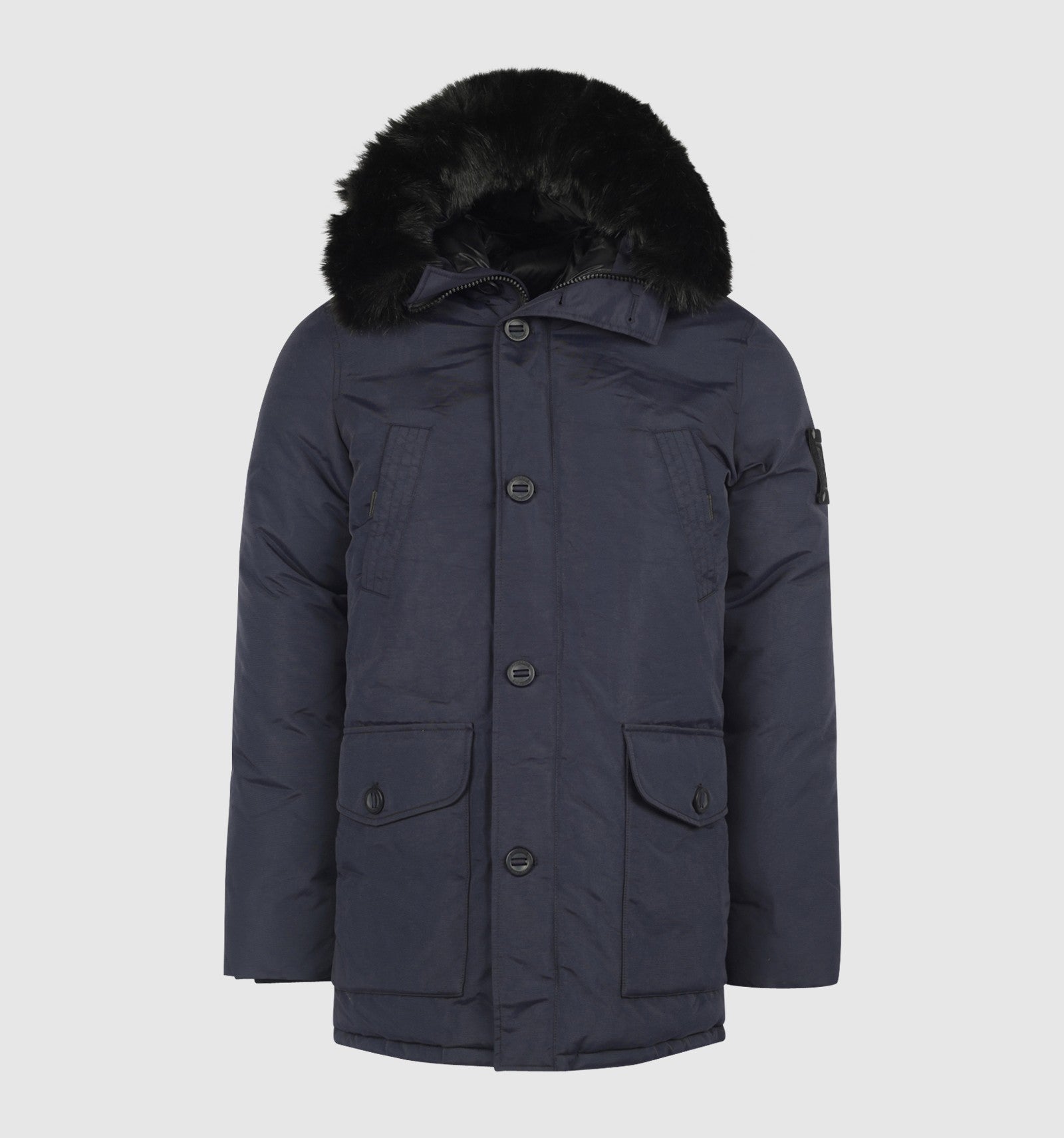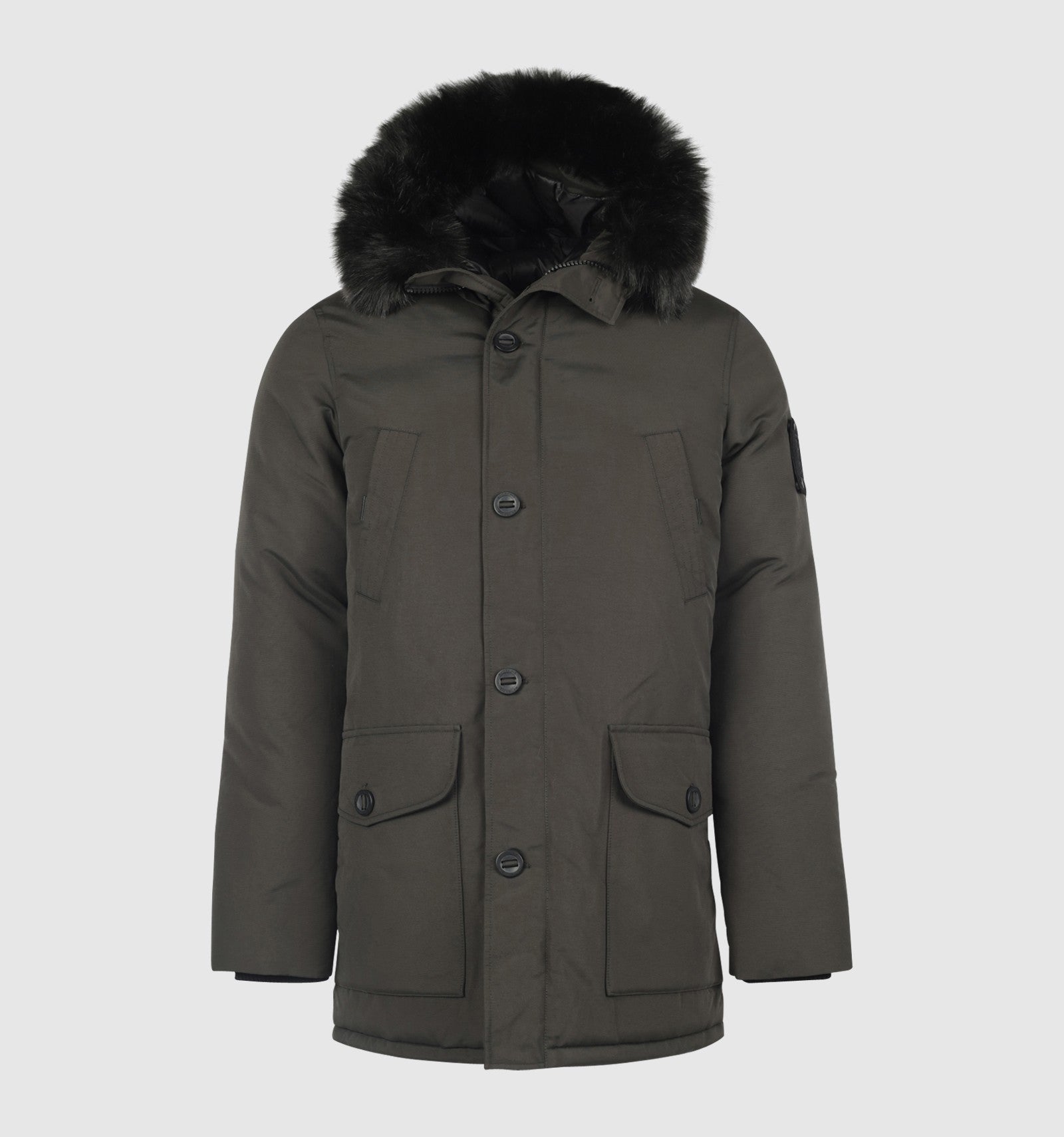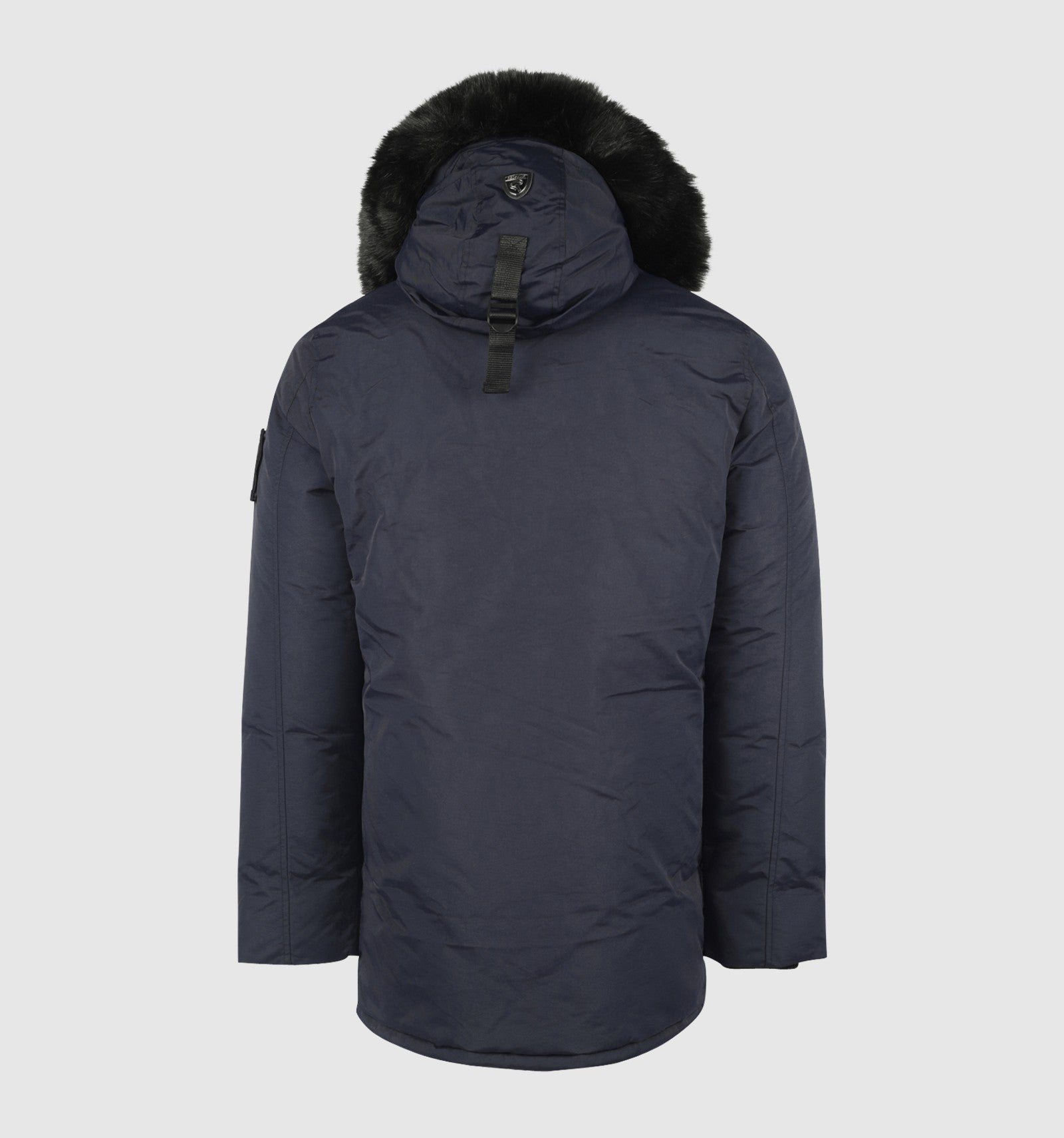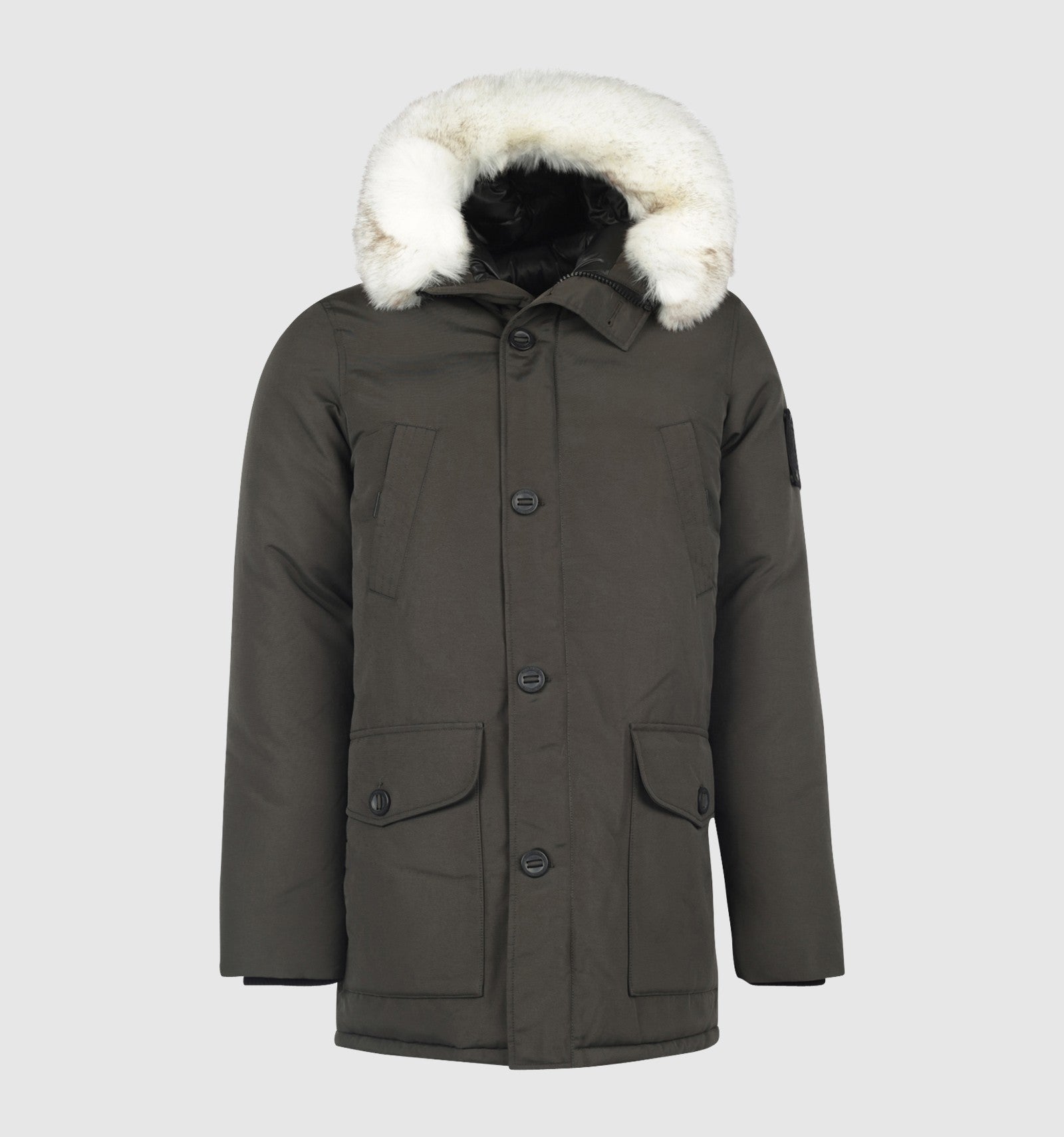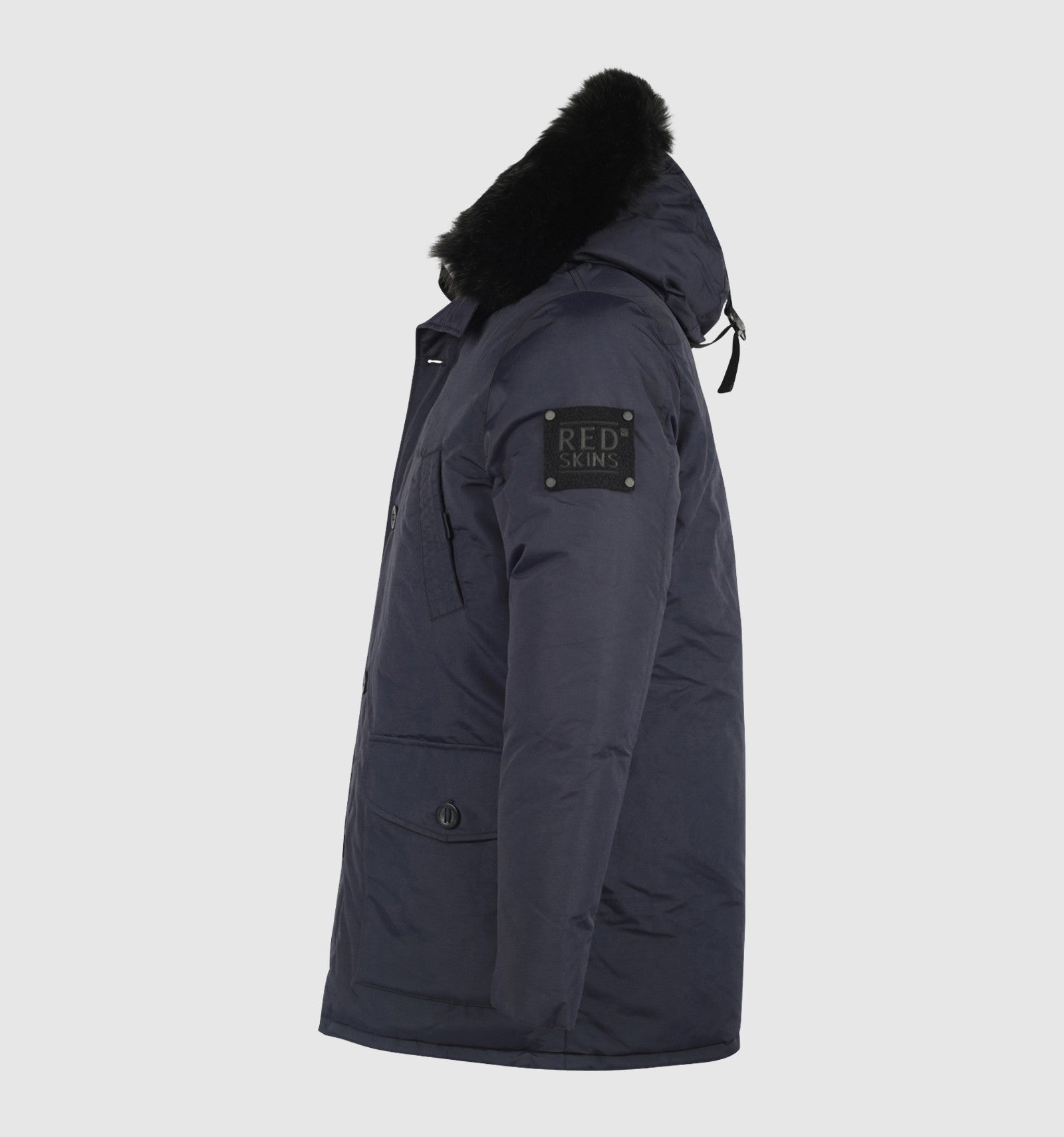 La parka longue et matelassée EVEREST 2 PARAMOUNT, est munie d'une capuche bordée de 2 fourrures synthétiques amovibles (Une ton sur ton noire et une blanche contrastante), d'un col montant, de manches longues dont une ornée d'un écusson velcro siglé REDSKINS et enfin, de poignets côtelés. Elle dispose aussi, d'une fermeture à glissière dissimulée sous un rabat boutonné, de 6 poches à l'avant dont 4 en biais et 2 à rabat, ainsi que d'une poche latérale zippée à l'intérieur avec lien de serrage au niveau de la taille.