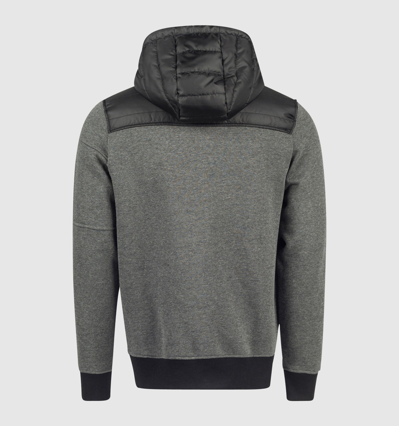 Le Sweat bi-matière à capuche et fermeture zippée LADERA STUY est le hoodie indispensable de l'hiver avec ses détails contrastants et son effet matelassé aux épaules. Le molleton lui confère un confort inégalable et les bords côtes assure le maintien optimal du vêtement. Il dispose de poches kangourou et d'une poche zippée sur le bras.