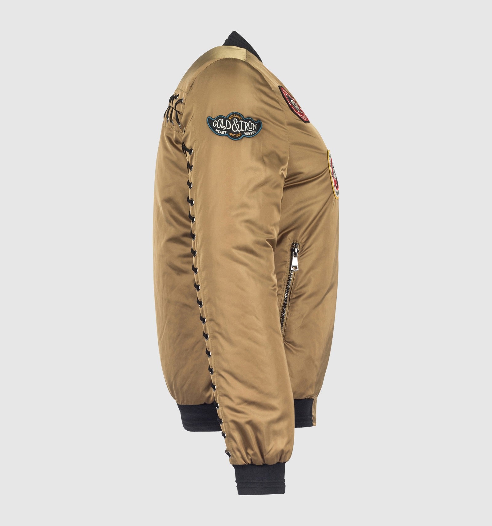 Le blouson satiné PRIVACY RAIZO gold est une exclusivité web. Il arbore des écussons mutliples à la poitrine et aux épaules ainsi qu'une petite poche zippée sur la manche. Il dispose également d'une fermeture par zip, et de bords côtes contrastants.