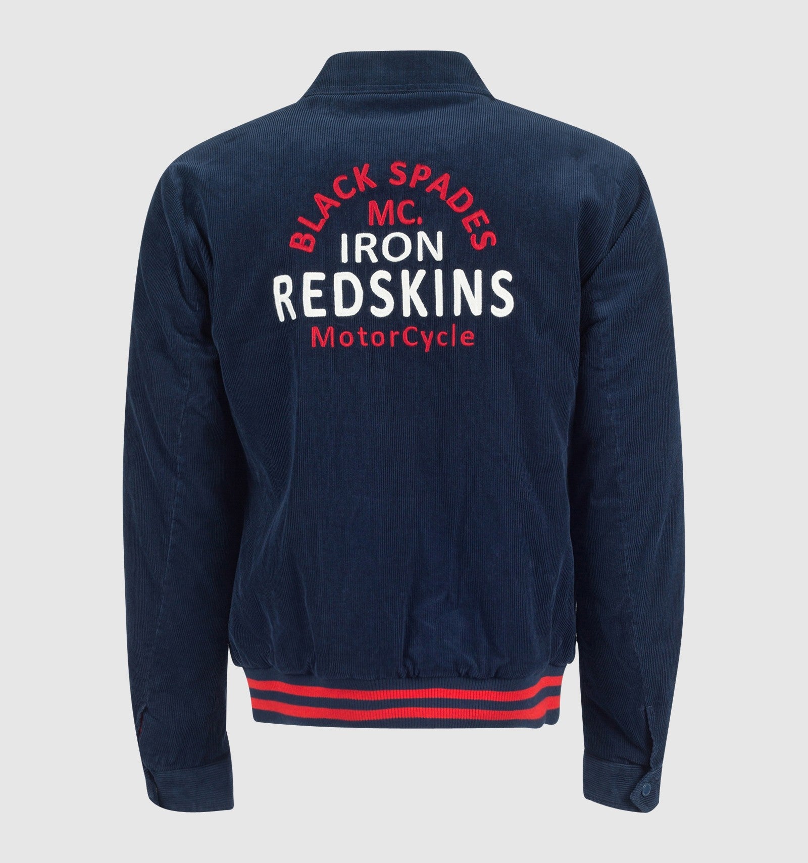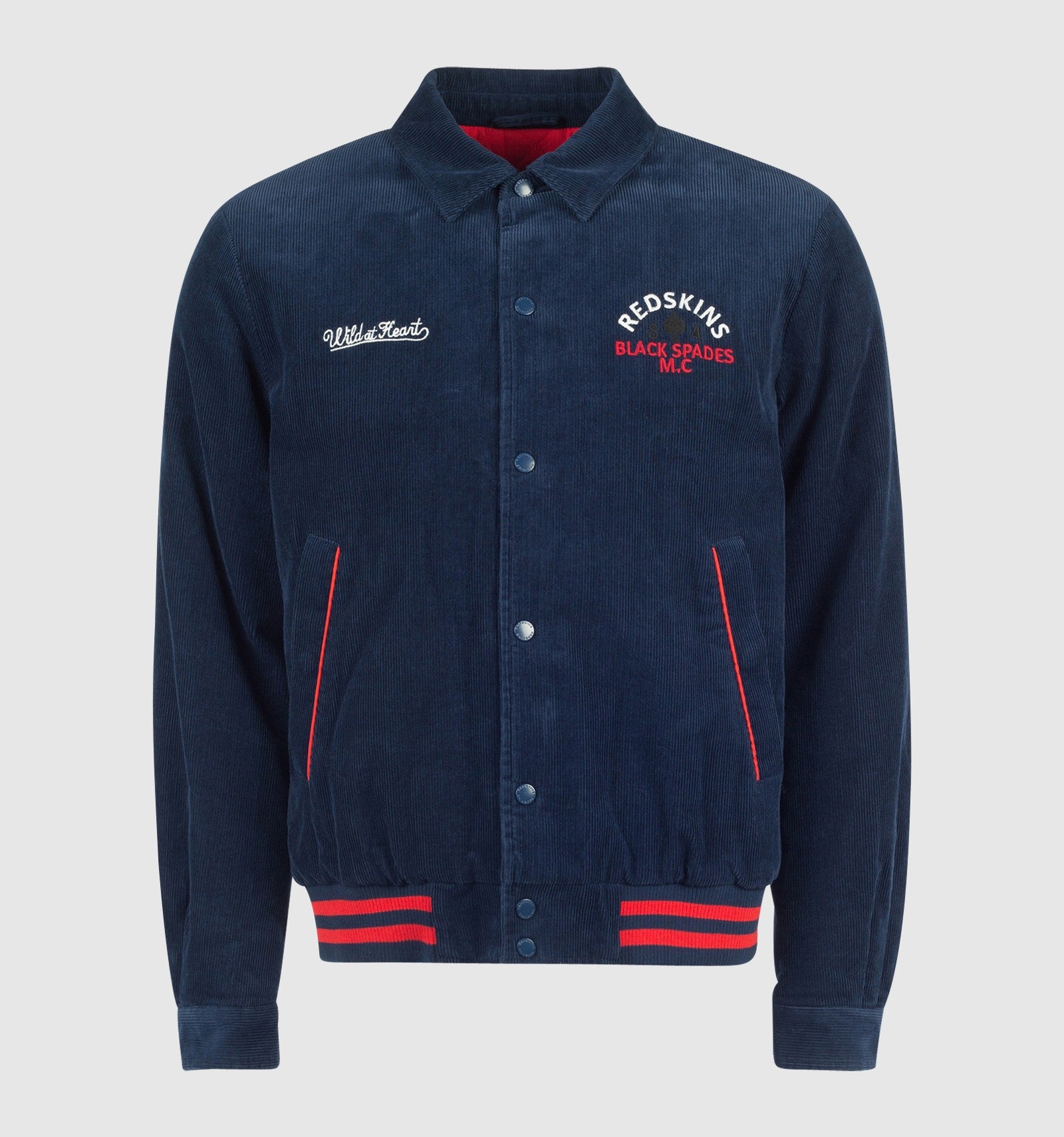 Le blouson SUPER OK STAGE en velours côtelé joue la carte du vintage avec son esprit teddy, ses broderies, ses détails rouge et son col chemise. Il dispose de deux poches latérales en biais ornées d'un liseré rouge et d'une fermeture par pressions.