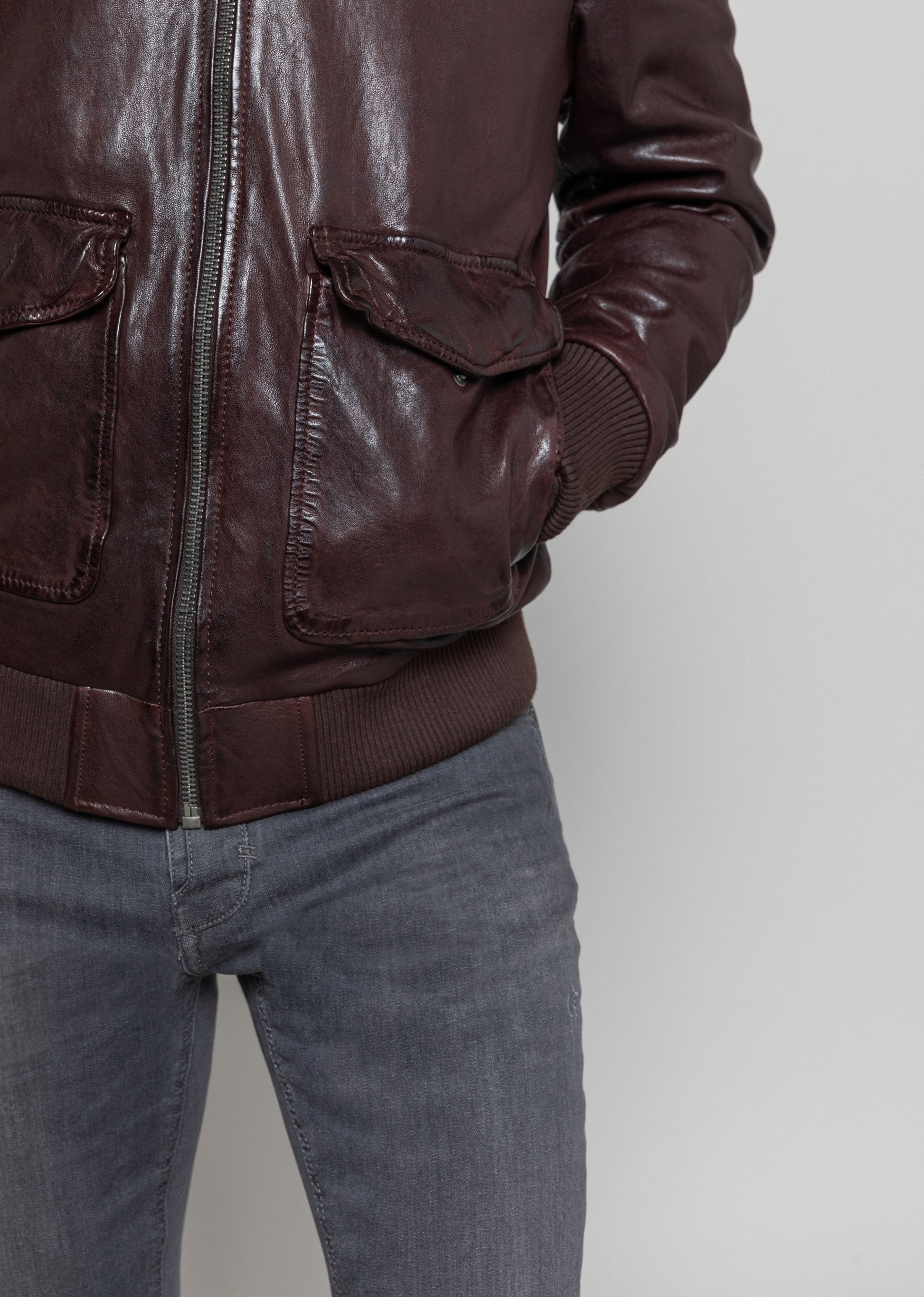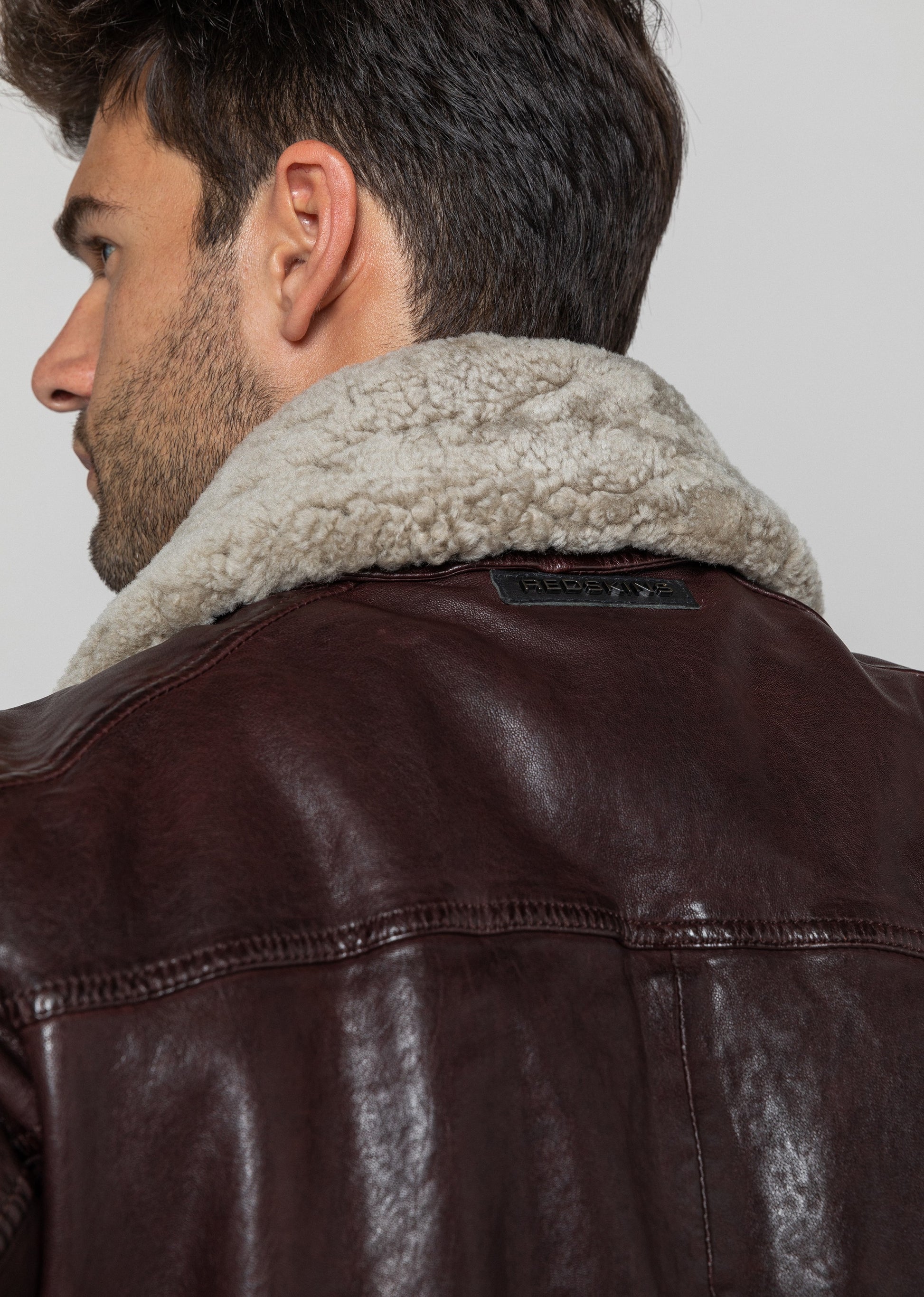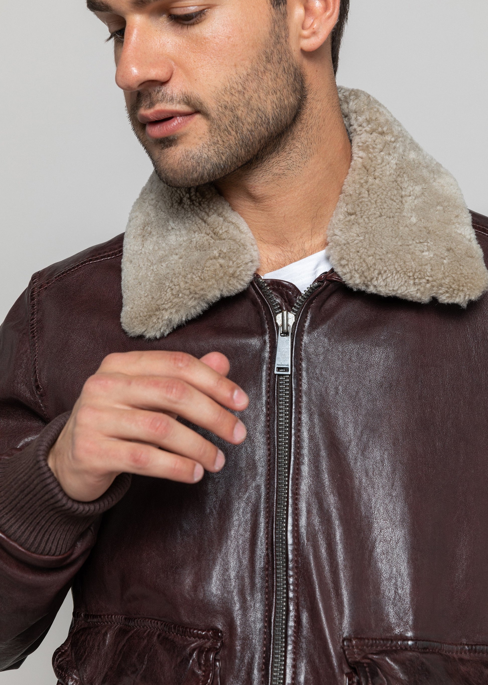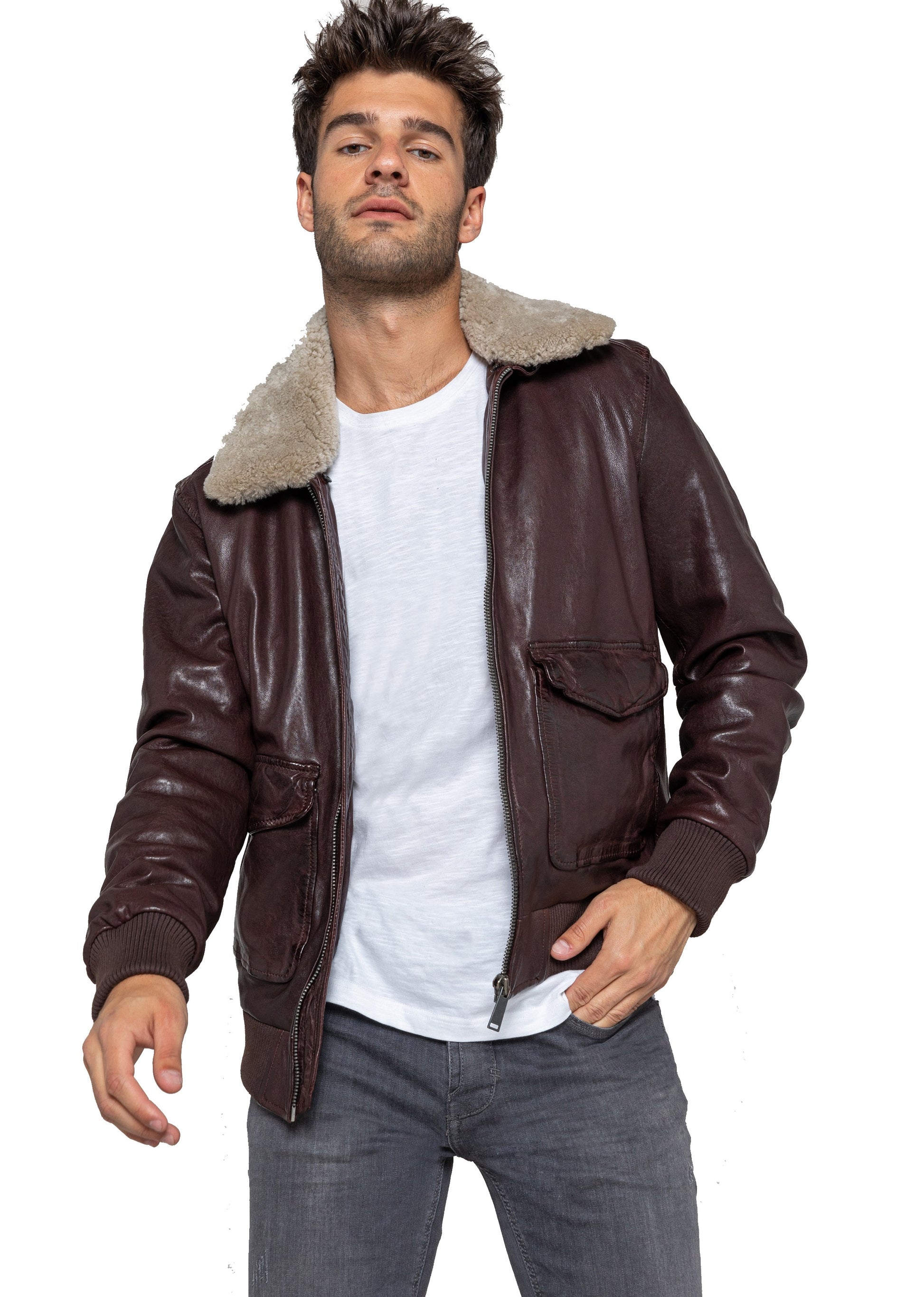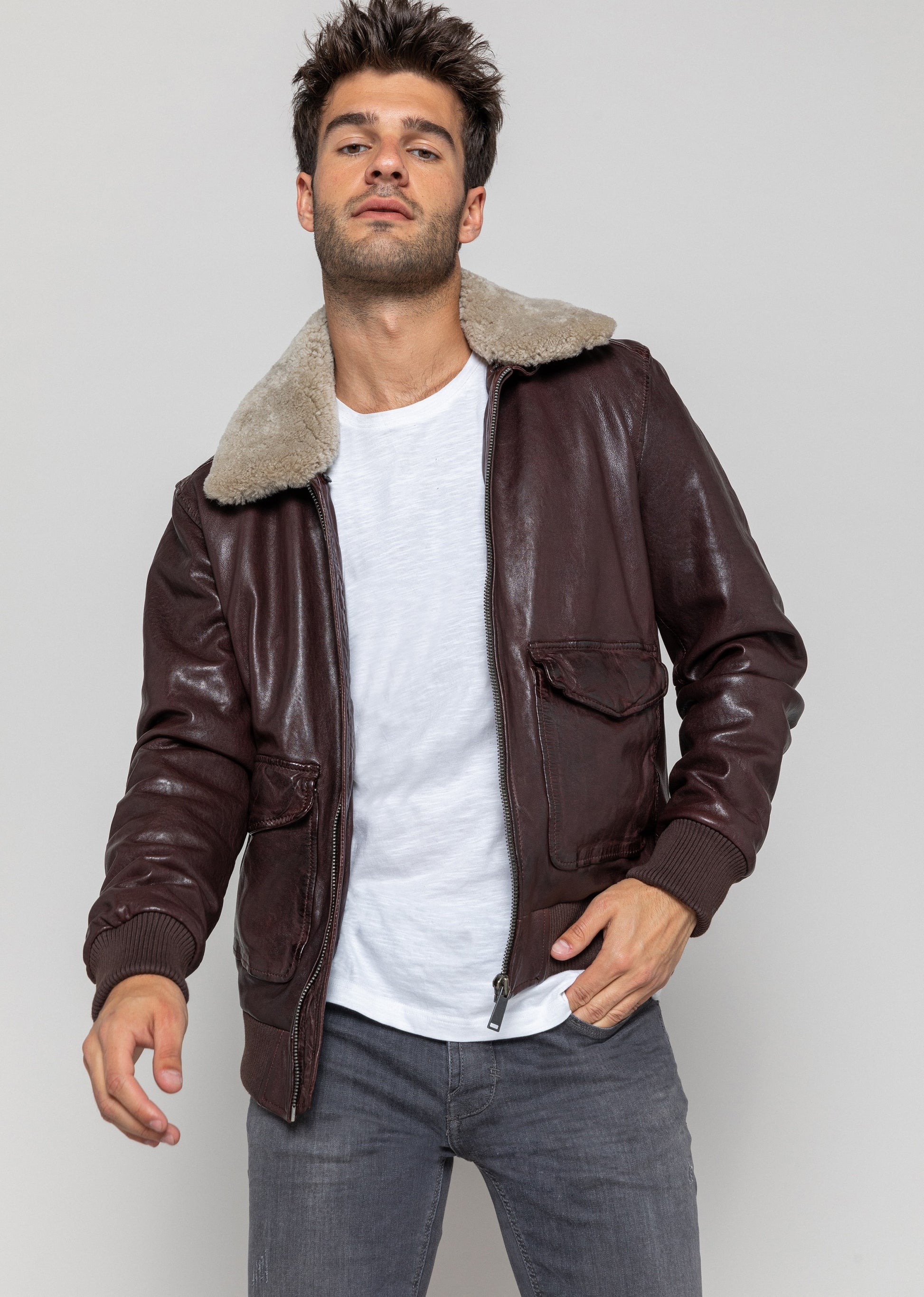 Aves son col mouton, le blouson en cuir CLARK WONDER est inspiré du blouson aviateur. Il arbore une fermeture par zip, des bords cote aux poignets et à la taille, des poches à rabats pressionnés et 2 poches intérieures. Composition : Cuir de mouton