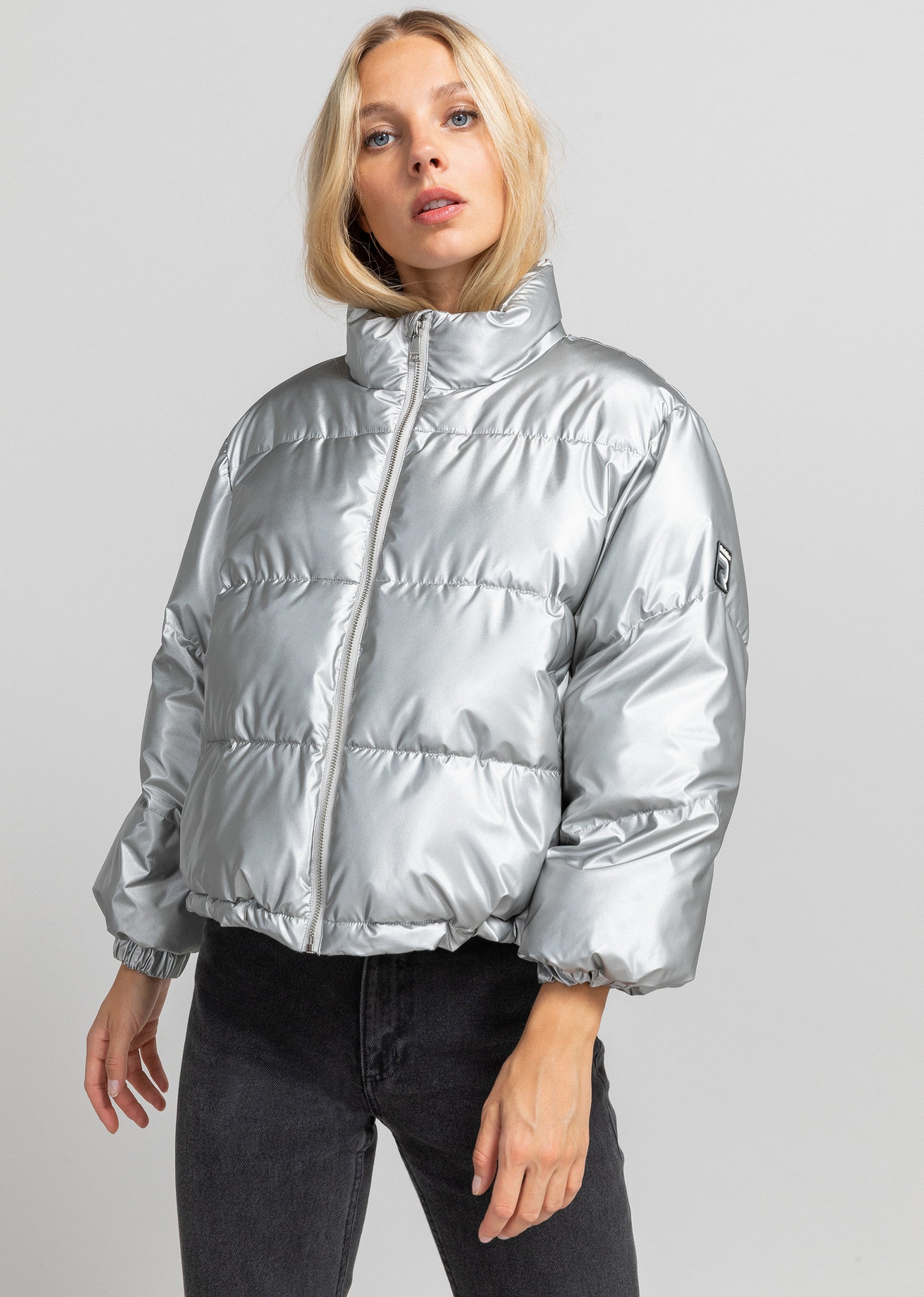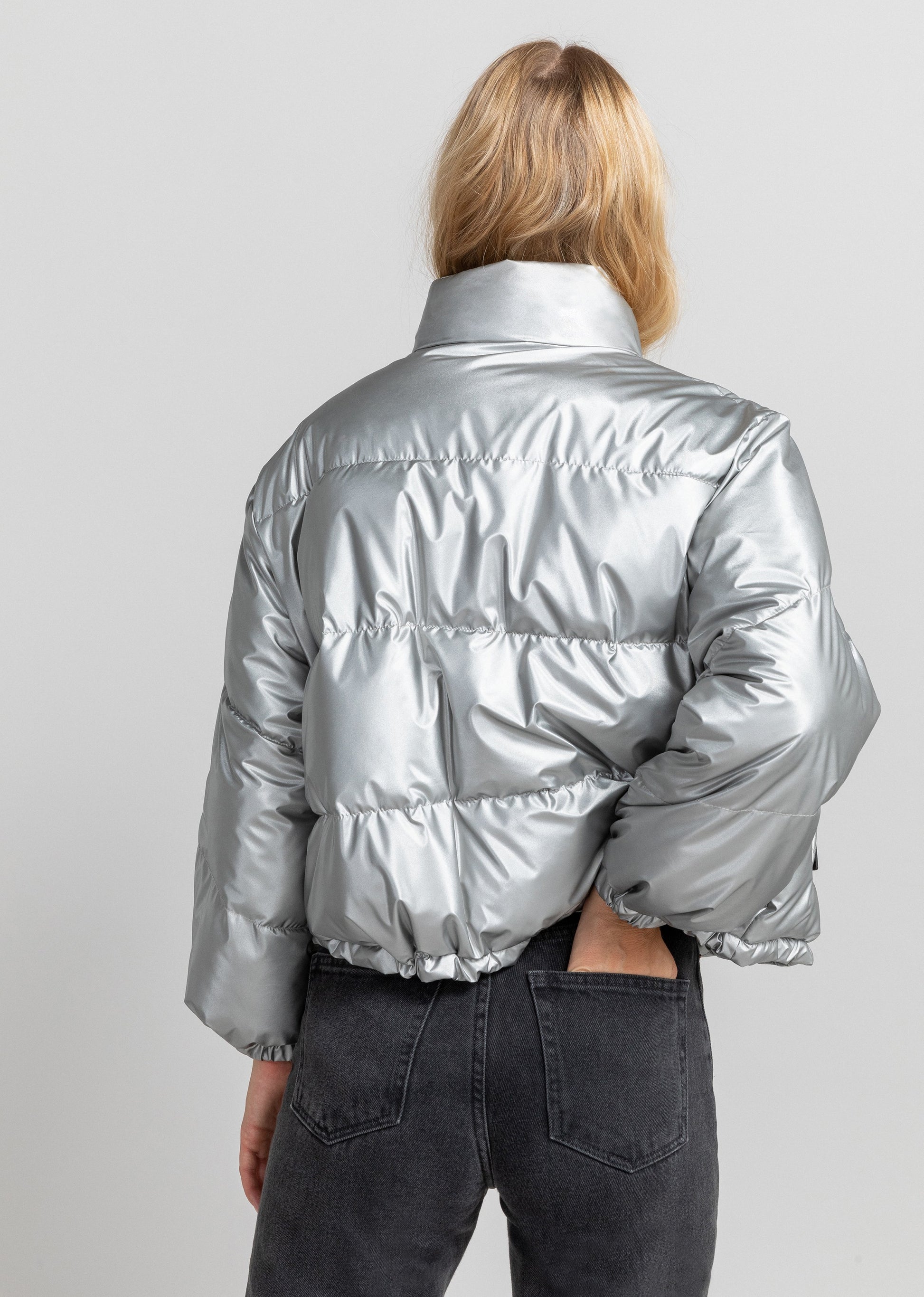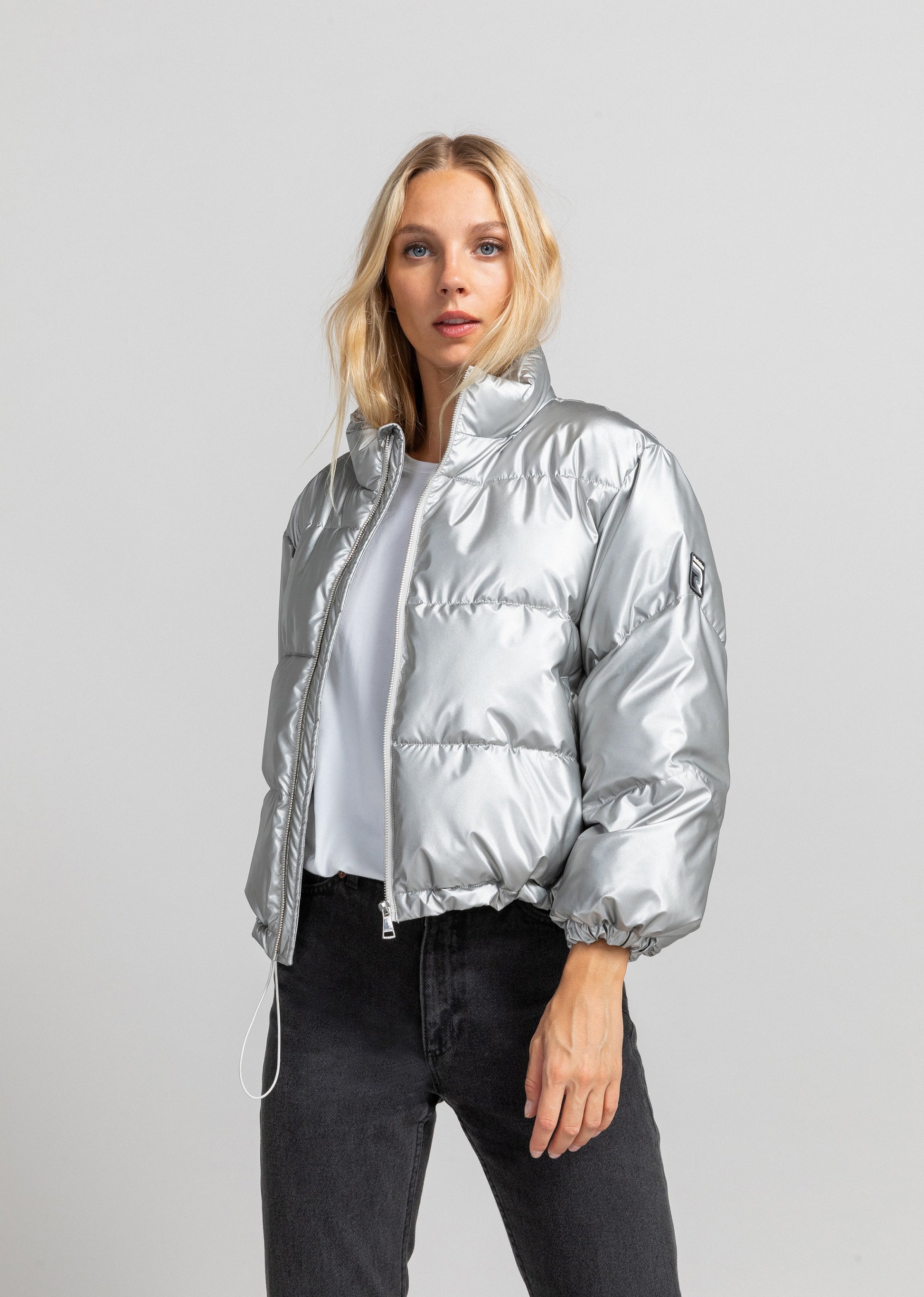 La doudoune courte DANCE MONTEGO couleur argent, est une exclusivité web et un must-have de la saison . Elle dispose d'une coupe oversize, de manches légèrement 3/4, d'un col montant et de deux poches latérales zippées.Composition : 100% polyester