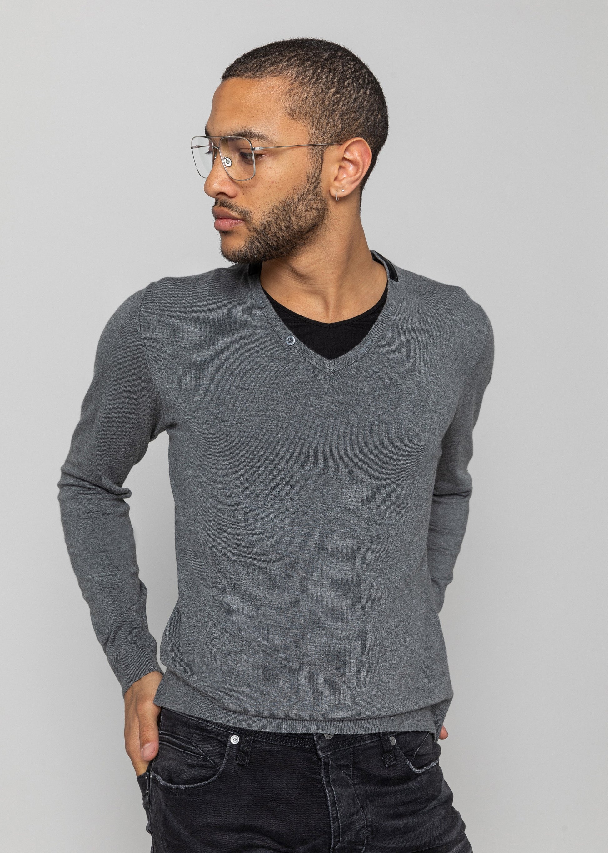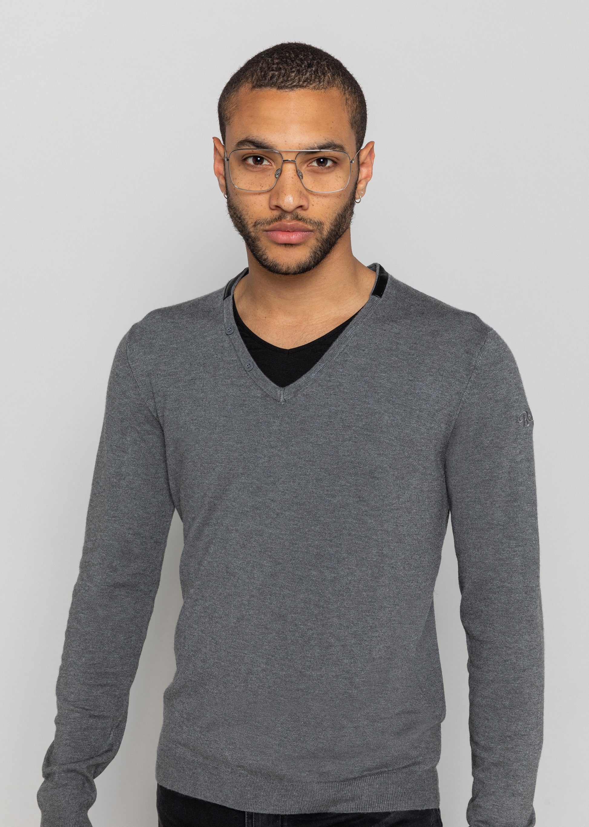 Le pull en maille DARRIUS ELVIS est un classique aux détails surprenants : son col V n'est pas seulement orné d'un liseret en cuir noir à l'arrière et de quelques boutons sur le devant, mais aussi d'un second col en coton contrastant assorti aux coudières du même ton. Composition : 80% VISCOSE - 20% nylon