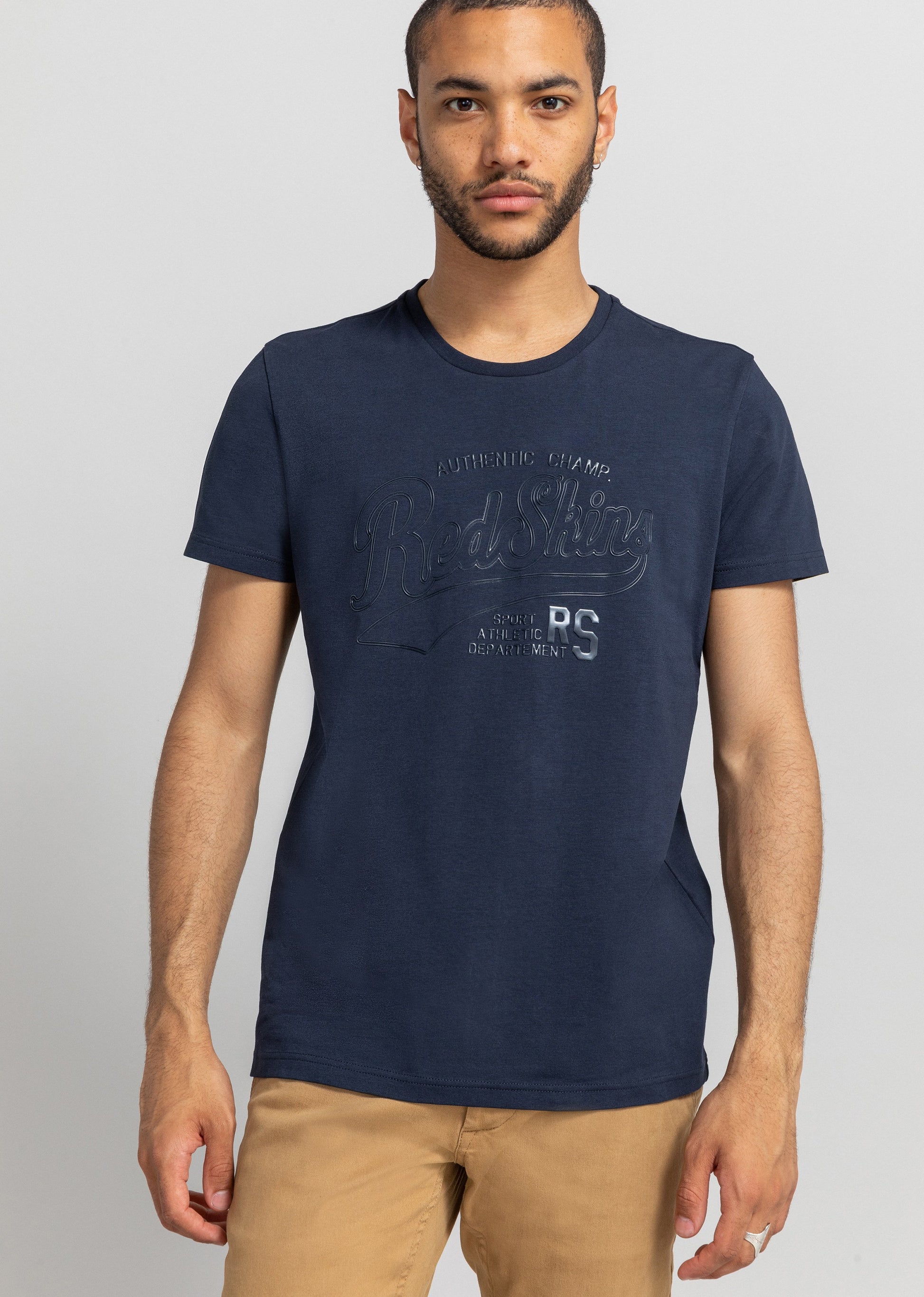 Le t-shirt à manches courtes et col rond HAMMET CALDER est orné d'une application texturée ton sur ton siglée REDSKINS. Composition : 95% coton - 5% elasthanne