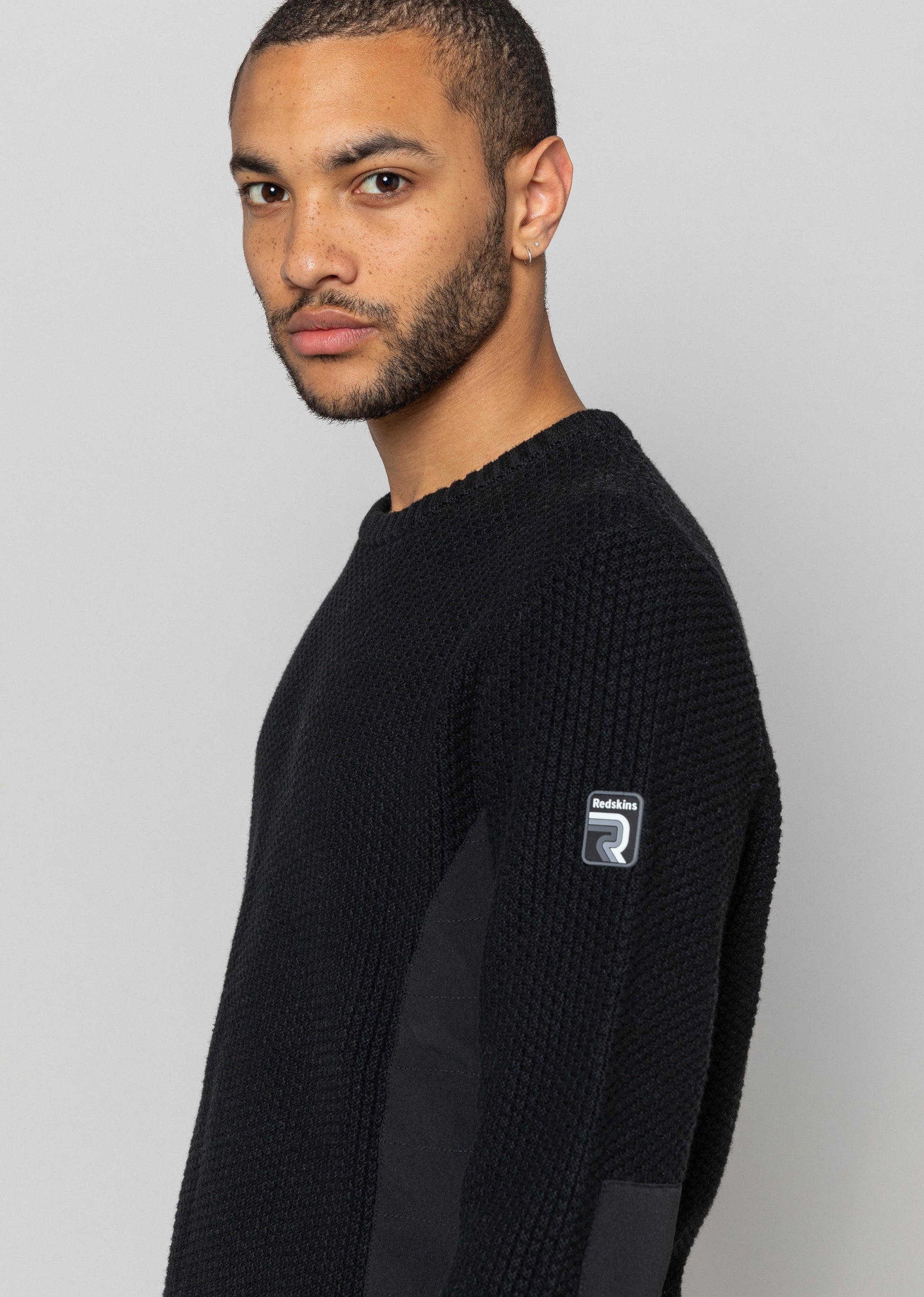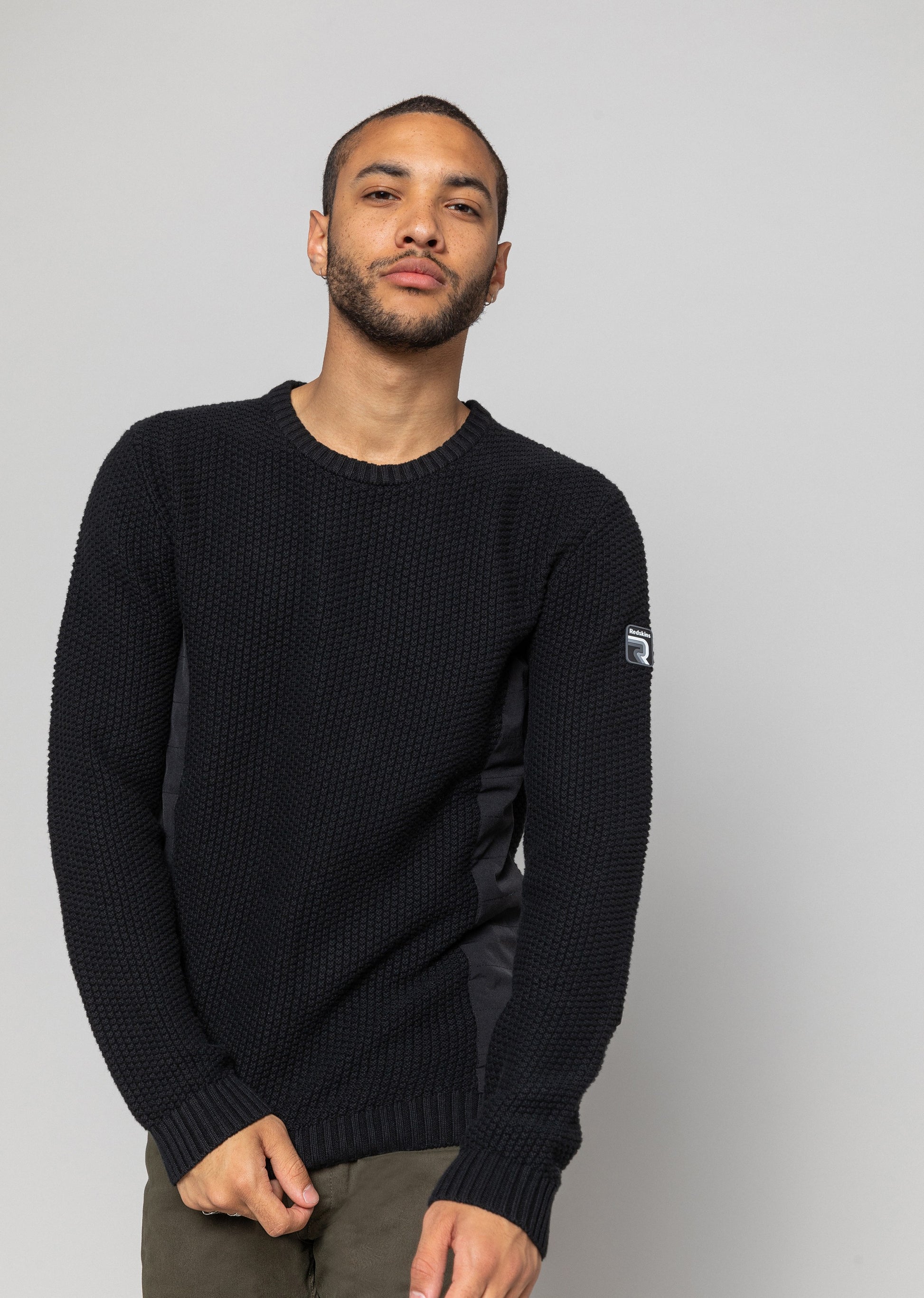 Le pull bi-matière à col rond MIRA WALLY est confectionné en maille effet nid d'abeille. Ce modèle au style casual et urbain est orné d'empiècement en tissu sur les côtés et d'un patch siglé. Composition : 100 % coton