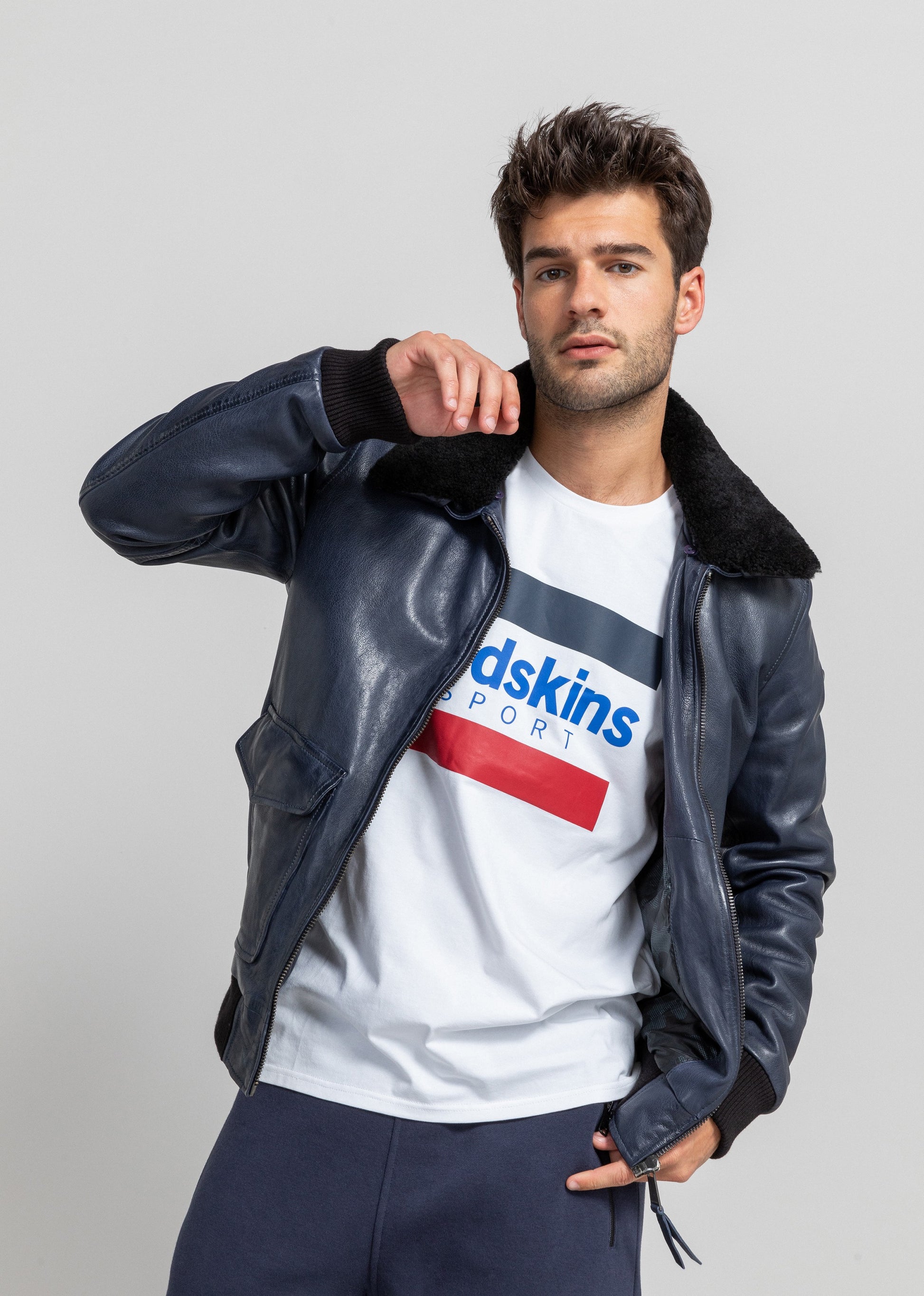 Le blouson PILOT VICTORY reprend les codes du blouson aviator. Il est confectionné dans un cuir souple. Il arbore des bords-cote aux poignets et ceinture, son col chemise est recouvert de fourrure (amovible) et ses poches latérales à rabats lui donnent une touche décontractée. Composition : Cuir de mouton