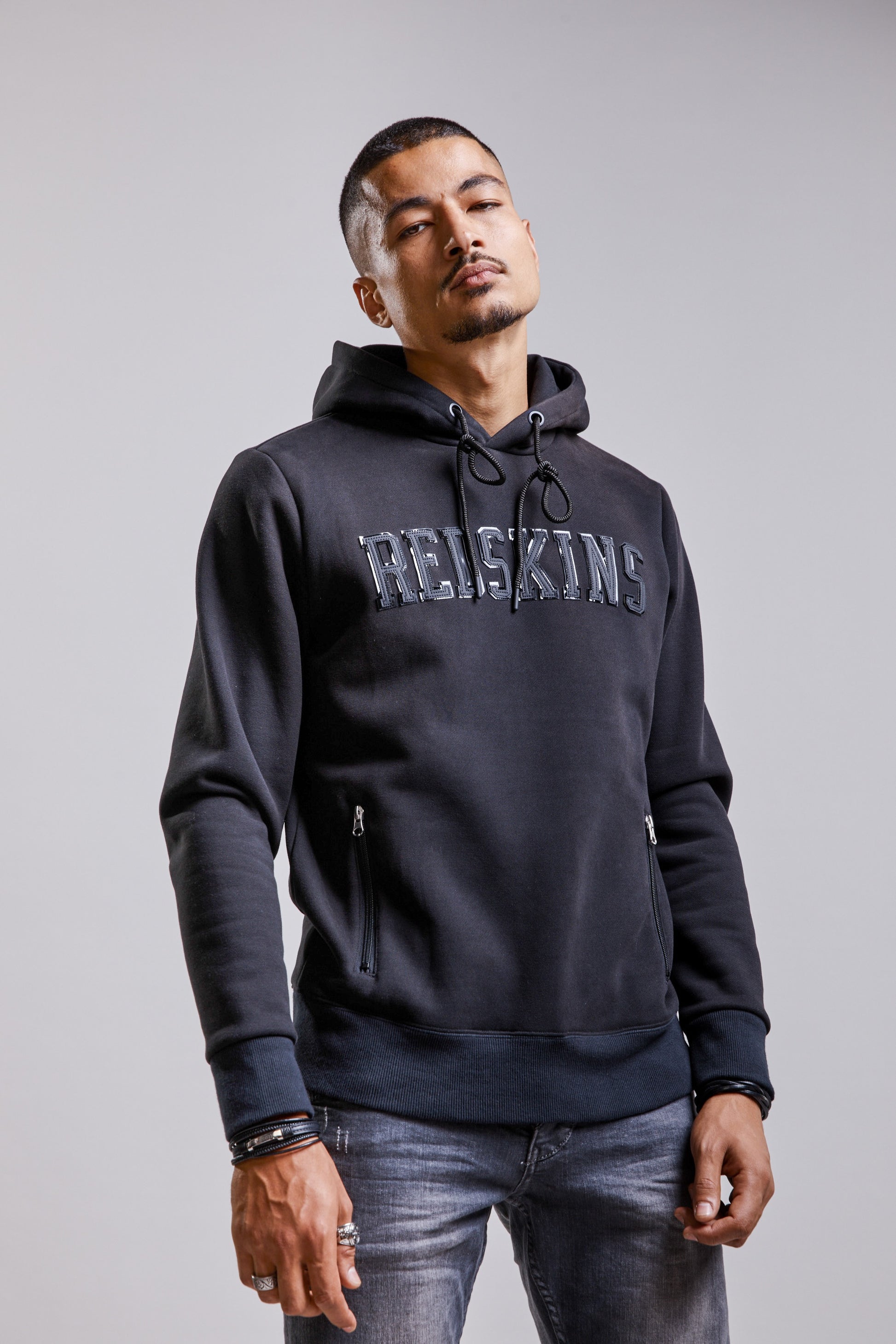 Le sweat à capuche AARON MISTER est orné d'une inscription REDSKINS ton sur ton sur la poitrine, aux bordures réfléchissantes. On trouve 2 poches zippés sur la face avant. Notre mannequin porte une taille L,