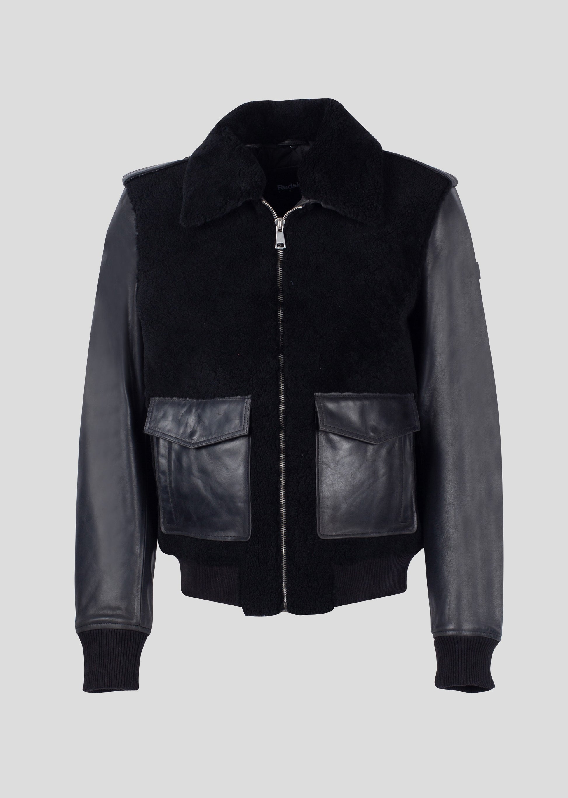 Ici le blouson BROMAN STRICKING affiche son jeu de matières avec élégance. Signature d'un modèle audacieux, tout en jonglant avec sa coupe à l'aplomb impeccable, il a été confectionné en cuir de vachette, associé à des empiècements en fausse fourrure. Son col rabattu est amovible, ses poches sont plaquées avec rabat et ses manches longues se terminent par des poignets en maille côtelée, tout comme la bordure de sa taille. Sur l'épaule, s'accroche une écusson reprenant l'initial REDSKINS. Au dos, des découpes s'affichent librement. La veste avec pattes d'épaules, se portera un brin loose sur une maille, un sweat-shirt et mixée à toutes sortes de pantalon.