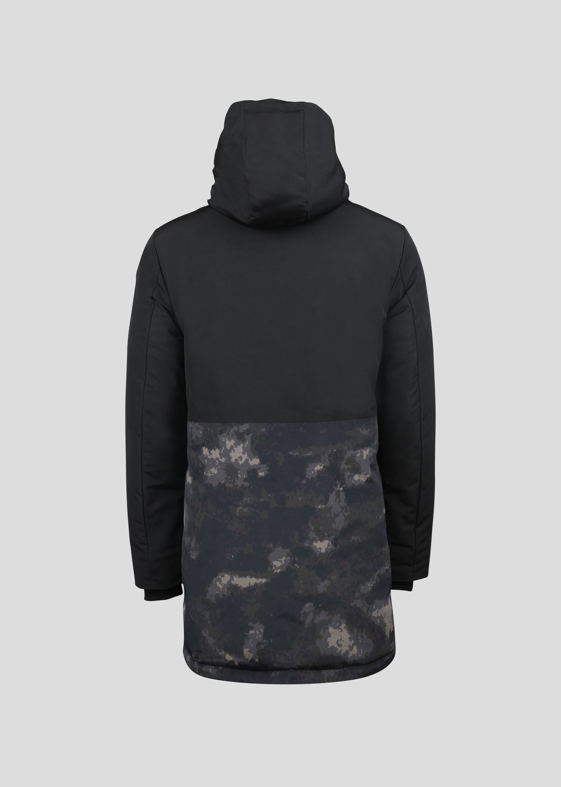 La parka à capuche DEFIANCE PRESSURE possède une partie aux tons camouflage et une partie unie. On y trouve 2 grandes poches à rabats à l'avant, une autre zippée côté cœur. Fermture zippée et à pressions.