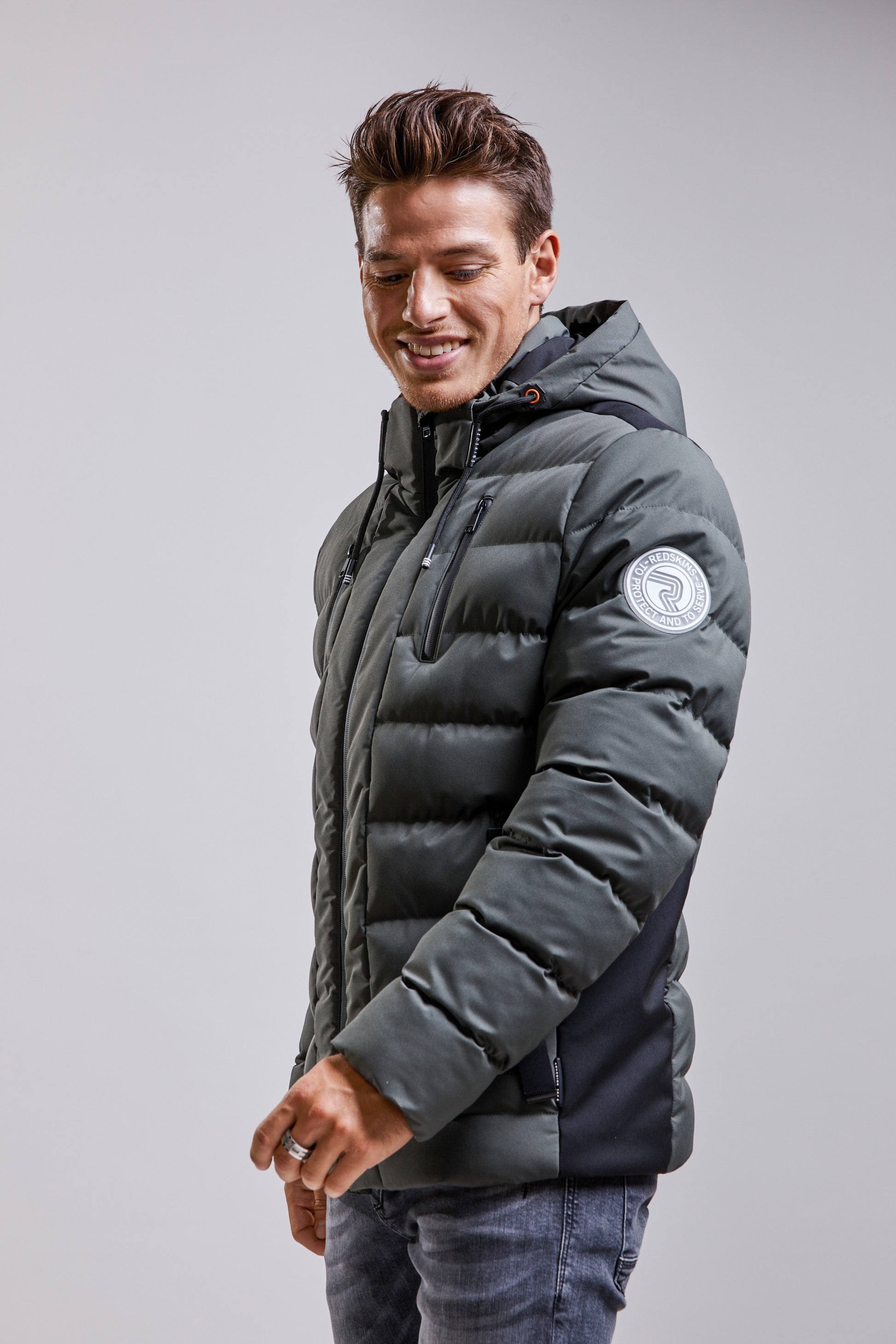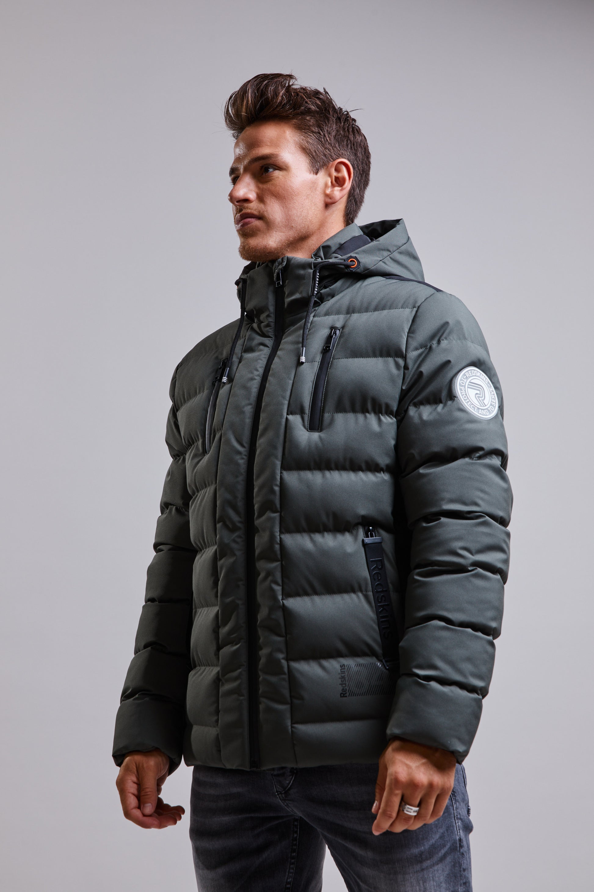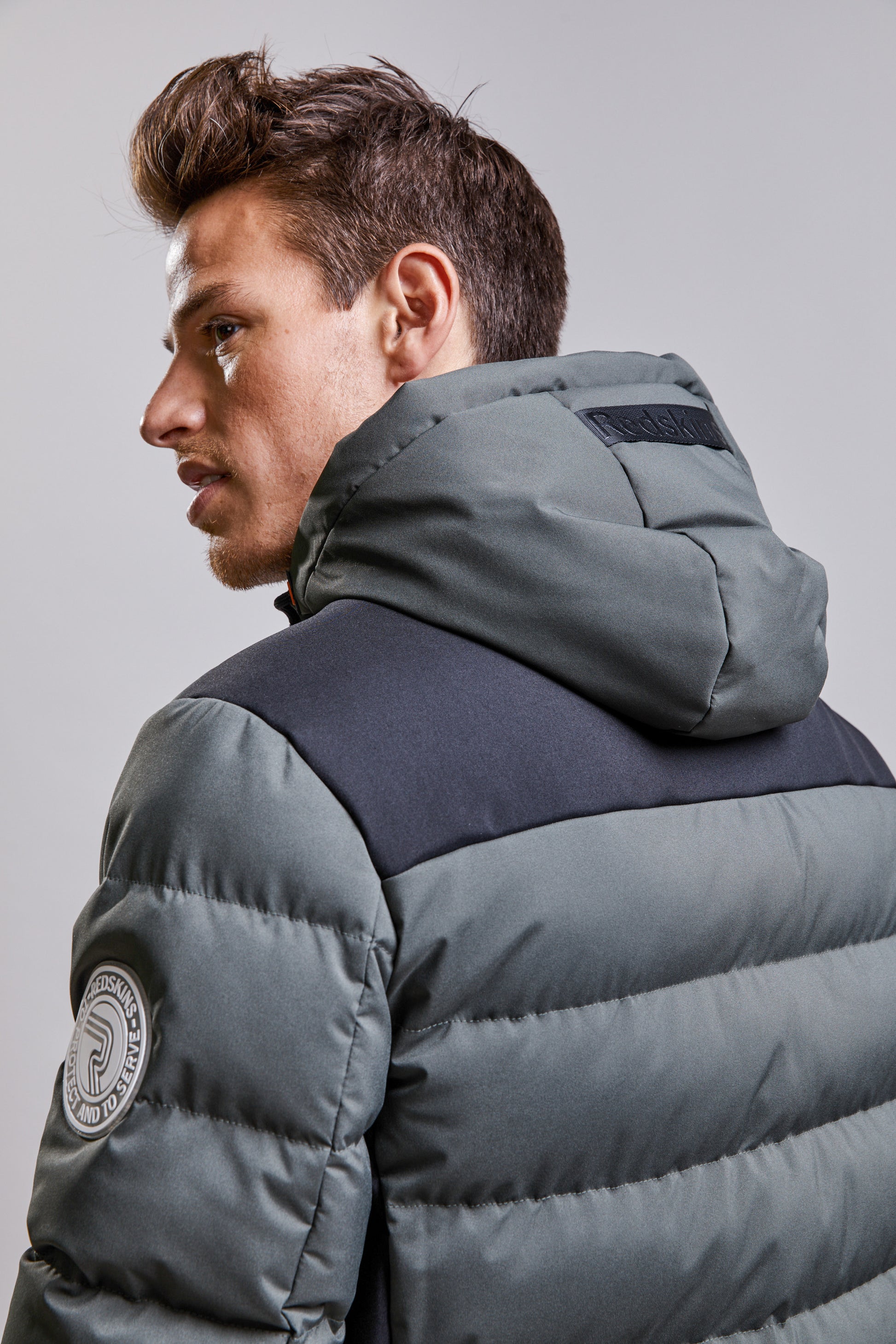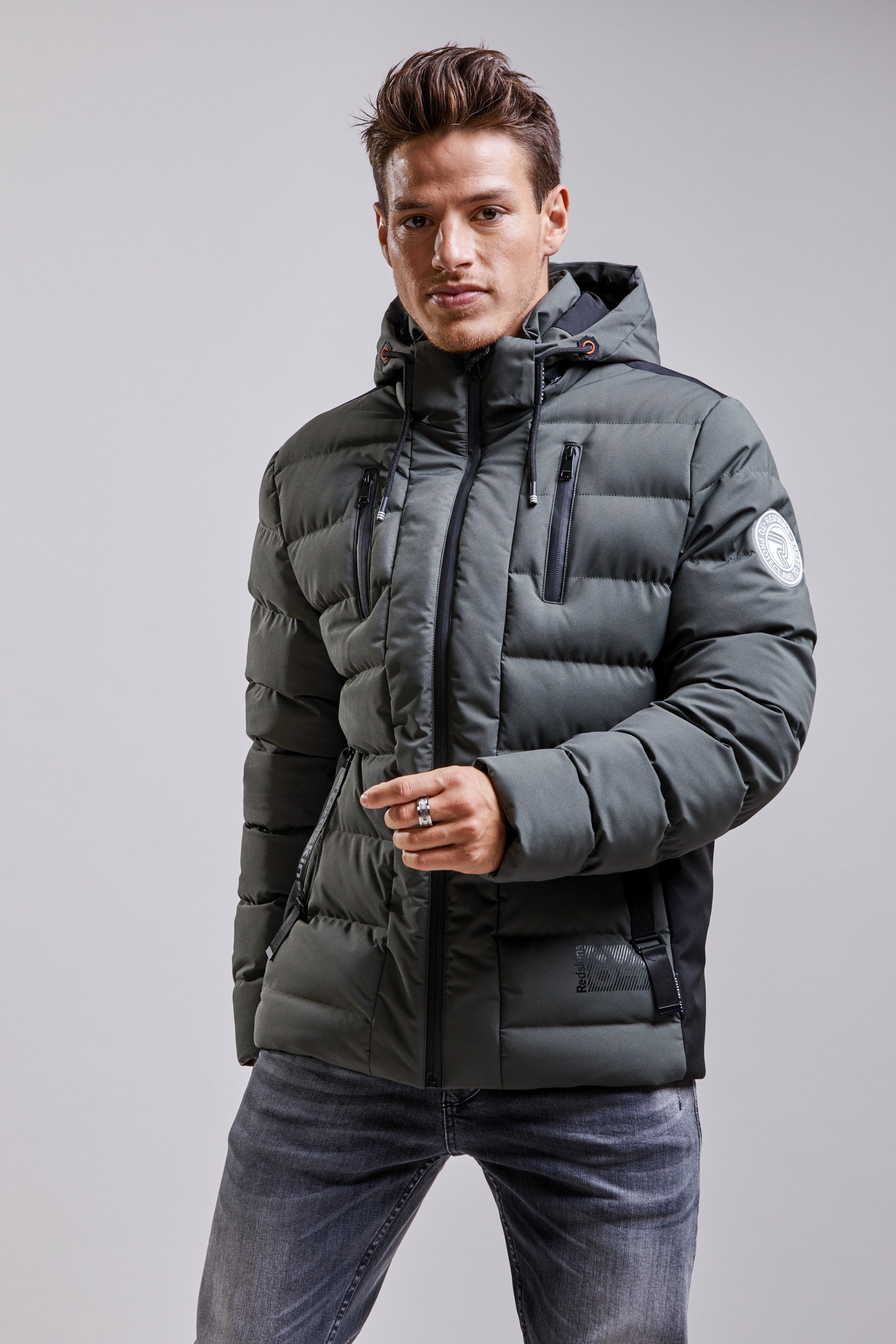La doudoune à capuche FARREL JINX s'empare de notes contemporaines à l'inspiration sport, elle présente un col montant, des cordons de serrage contrastés ainsi que deux poches zippées sur les côtés. Une parka à la coupe courte et cintrée, elle est ornée d’une impression R sur la manche gauche. . Fermeture à glissière et étiquette logotypée.