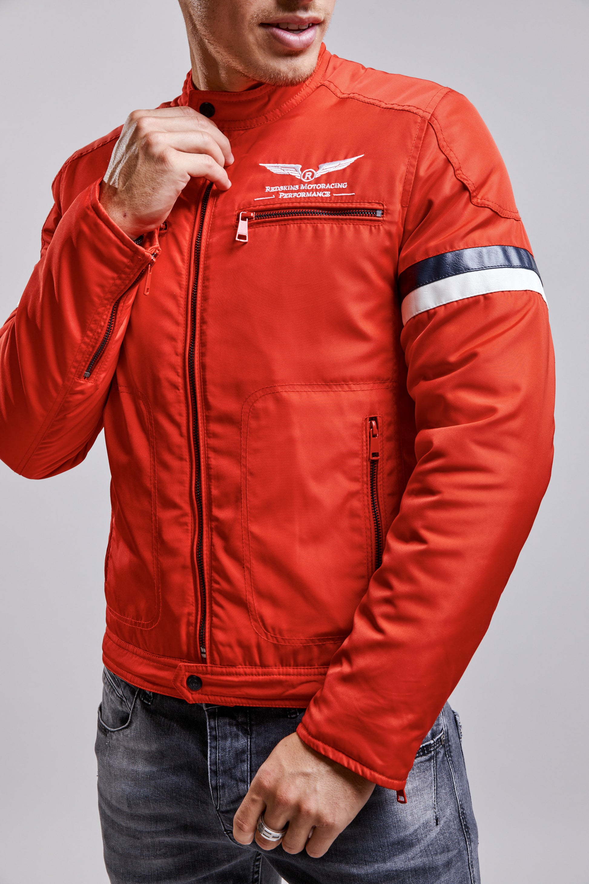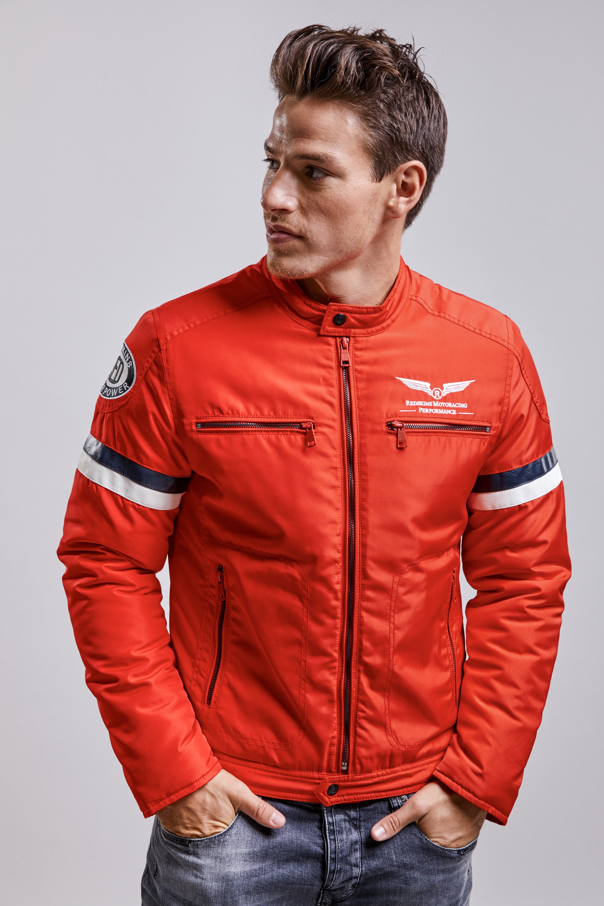 Le blouson OGDEN KAMALE est né sur les circuits de course. Sa carrure est soulignée par des bandes sur les manches. Un zip métallique complète le style singulier et des broderies REDSKINS à la poitrine rappellent l'identité de cette pièce singulière et pleine de caractère.