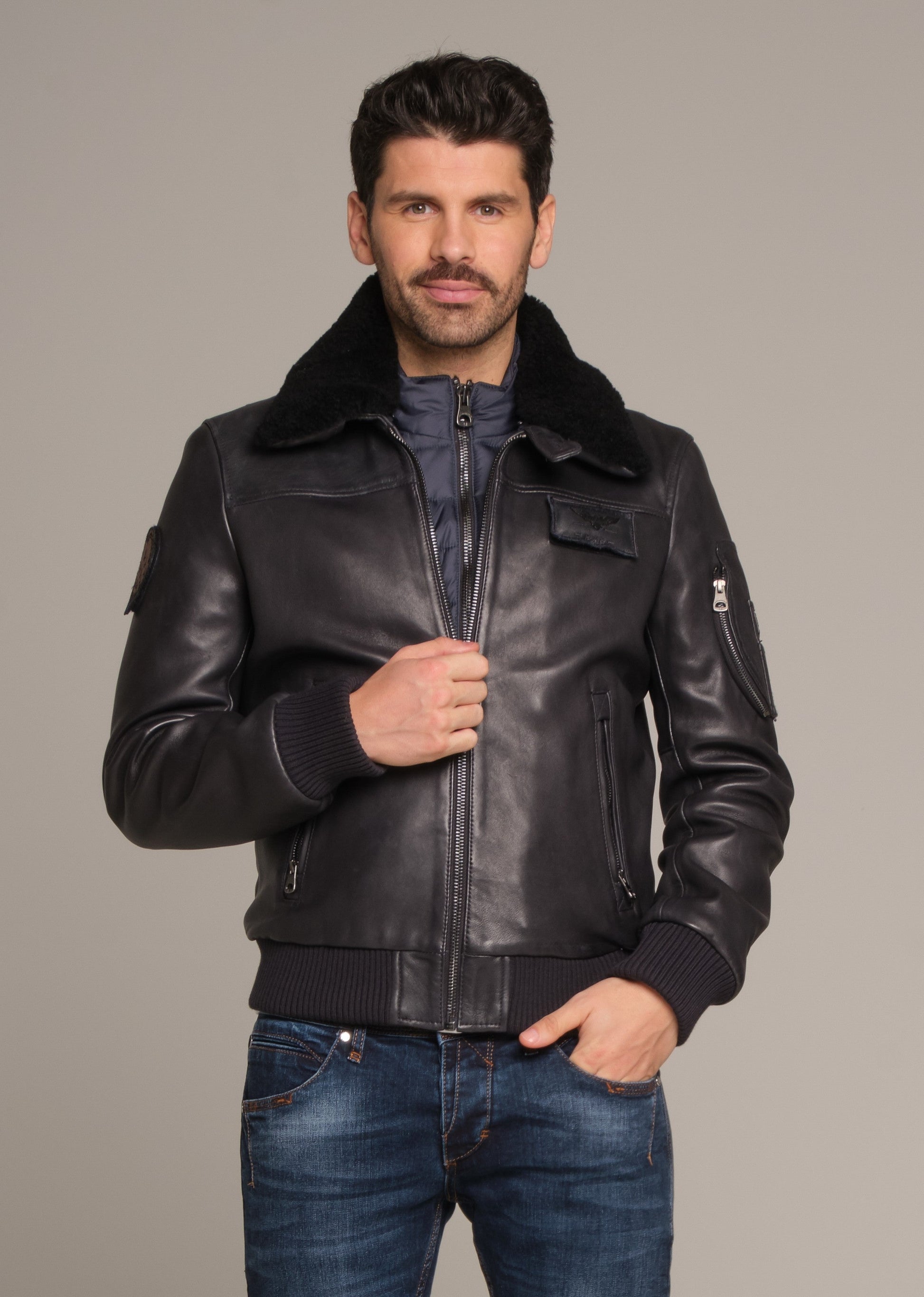 En cuir patiné, le blouson RAFAL YCON est inspiré des uniformes d’aviateur avec une coupe cintrée, du bord-côte aux poignets et à la ceinture ainsi qu’une fermeture à zip et plusieurs poches. Son col chemise en fourrure ton sur ton apporte une touche raffinée et élégante. Composition : Cuir de mouton