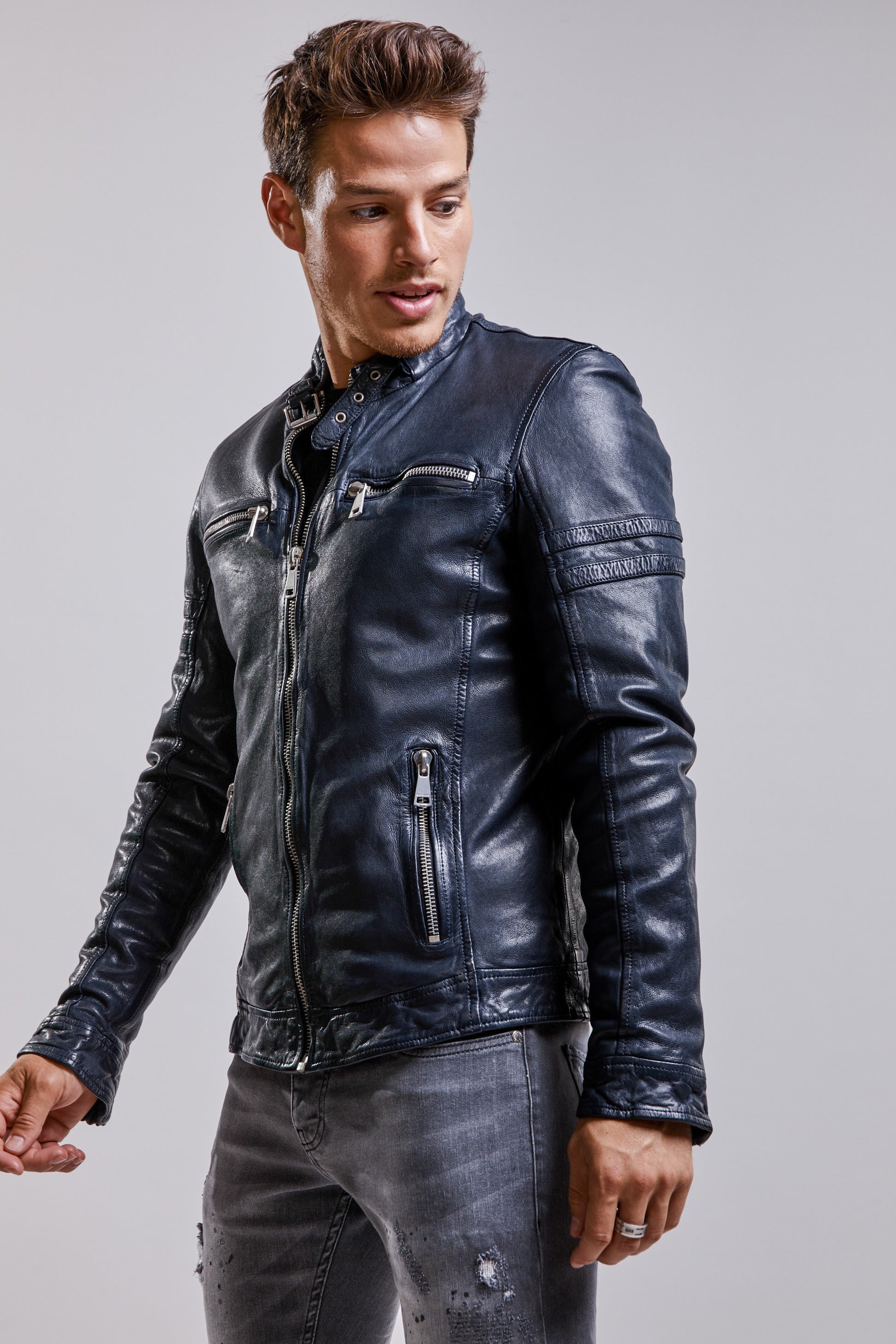 Avec sa ligne étudiée associée à son cuir de mouton ultra-souple, la veste RICKY VOLGA s'éprend d'une allure contemporaine. Mixées d'un col rond avec sangle amovible, des manches longues se terminent par un zip, des poches zippées se placent sur la poitrine et les côtés. Le blouson à la coupe ajustée, se ferme à l'aide d'un zip pour se glisser sur un tee-shirt ou une chemise. Ses finitions sont soulignées d'un jeu de surpiqûres ainsi que de deux bandes fantaisie sur les manches.Notre mannequin porte une taille L,Hauteur : 1m83, tour de poitrine 95cm, tour de taille 80cm.