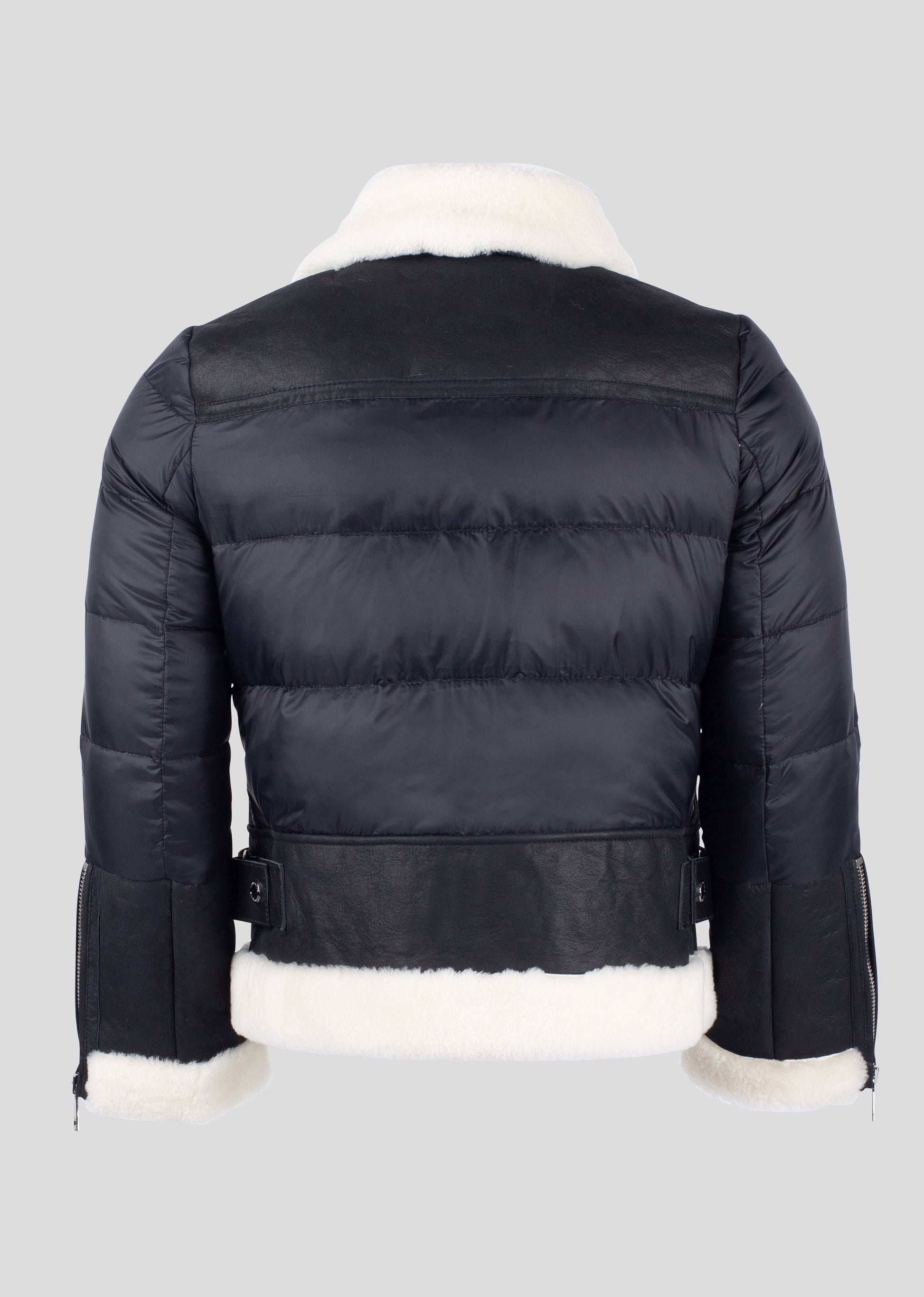 La doudoune trimatières ENJOY WOLF est un coup de cœur pour cet hiver on y trouve de nombreux details, un ceinturon sur le col et deux autres sur le cote pour une coupe plus ceintre et, deux poches diagonales face avant, un zip sur chaque manche.Composition : Cuir de moutonAttention : taille petit