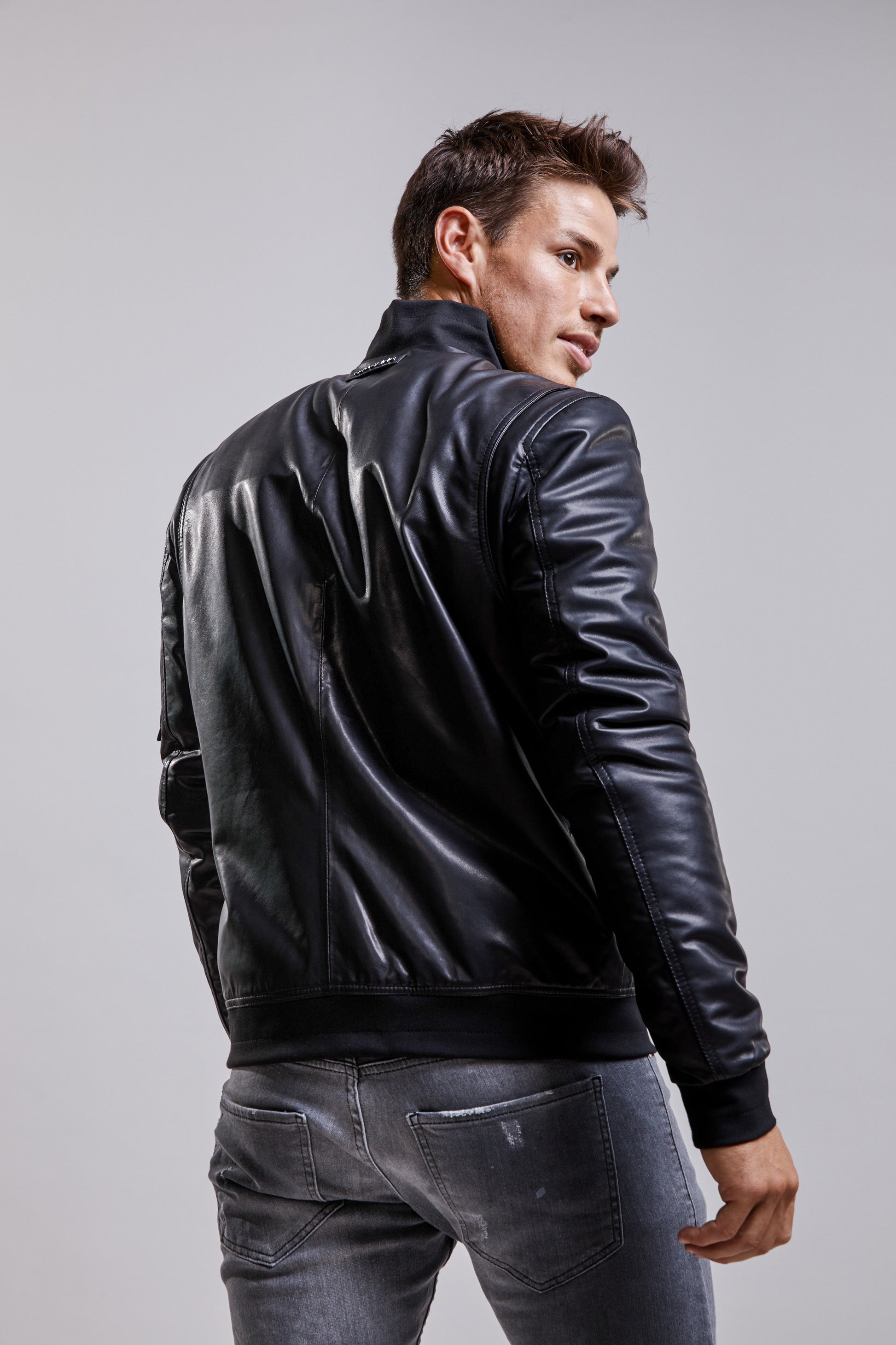 La veste en cuir d'agneau JET TRITON réalisée en cuir d'agneau et jersey dévoile un modèle inédit empreint de modernité. Ici son col monte délicatement, maintenu par une pression, ses manches s'ajustent aux poignets tout comme sa taille et ses poches jouent l'entre deux.Sa manche accueille une autre poche plaquée avec zip poussant le blouson au rang des pièces signatures. Coupe ajustée.Attention : la doublure est bien ton sur ton et non camouflage. Le nom de la Maison prend place au dos de la pièce.