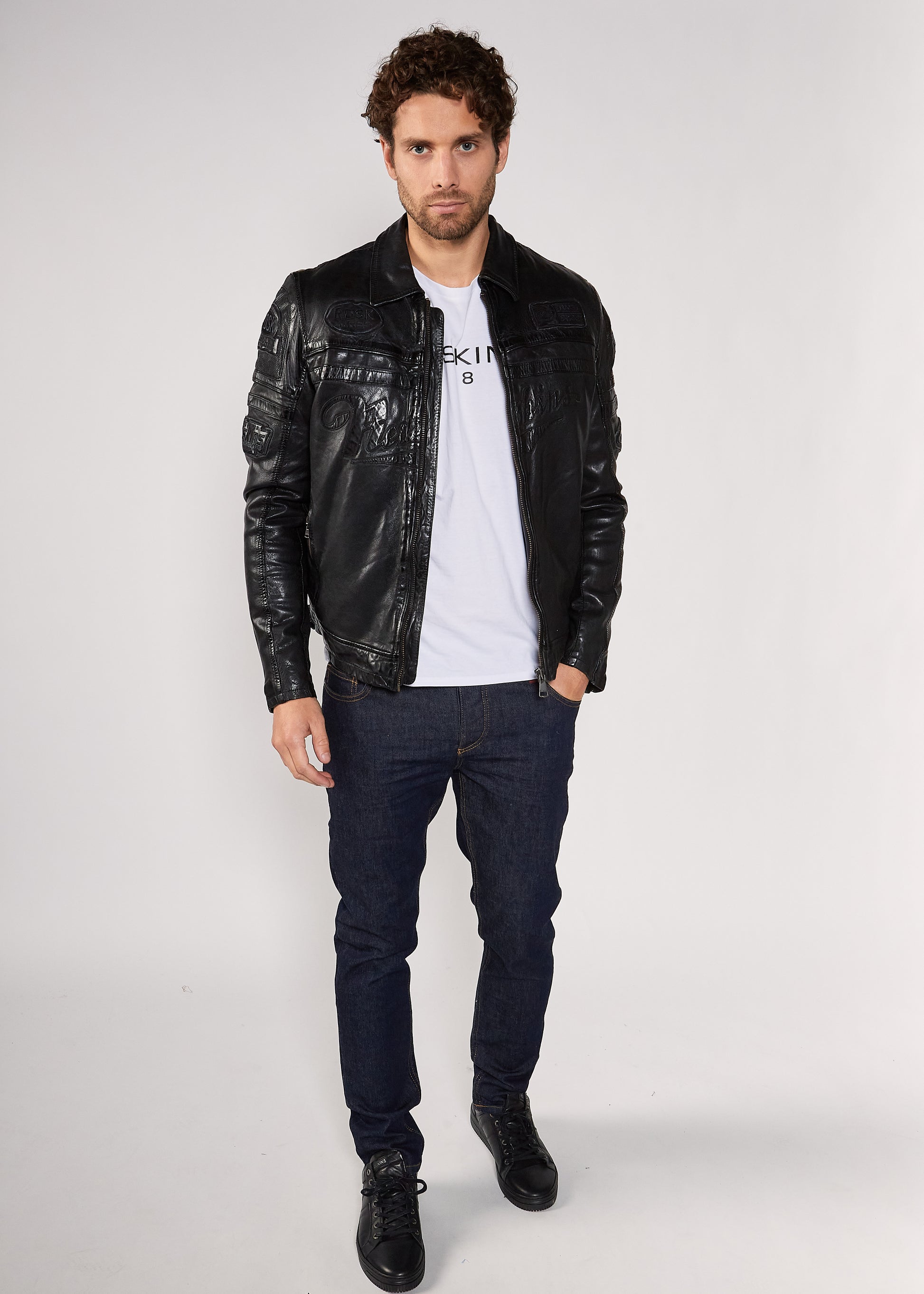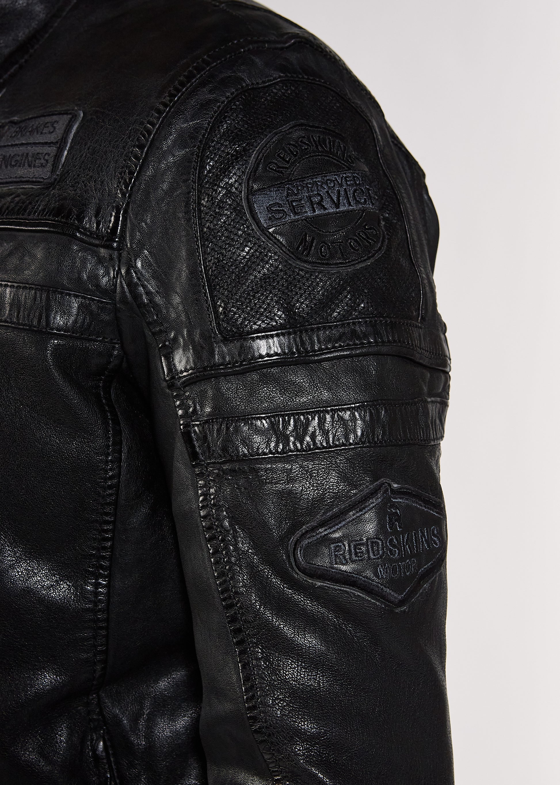 Singulier et audacieux, le blouson en cuir de mouton CROSS BARCELONA est une pièce au style pointu. Cette veste aux allures motardes possède six patchs ainsi qu’une large inscription REDSKINS sur l’avant. Les deux poches, et les zips sur les manches en font un blouson très pratique. Pour bien choisir votre taille : notez que les dimensions REDSKINS sont petites. N’hésitez pas à prendre la taille du dessus si vous êtes entre deux tailles. Composition : Cuir de Mouton