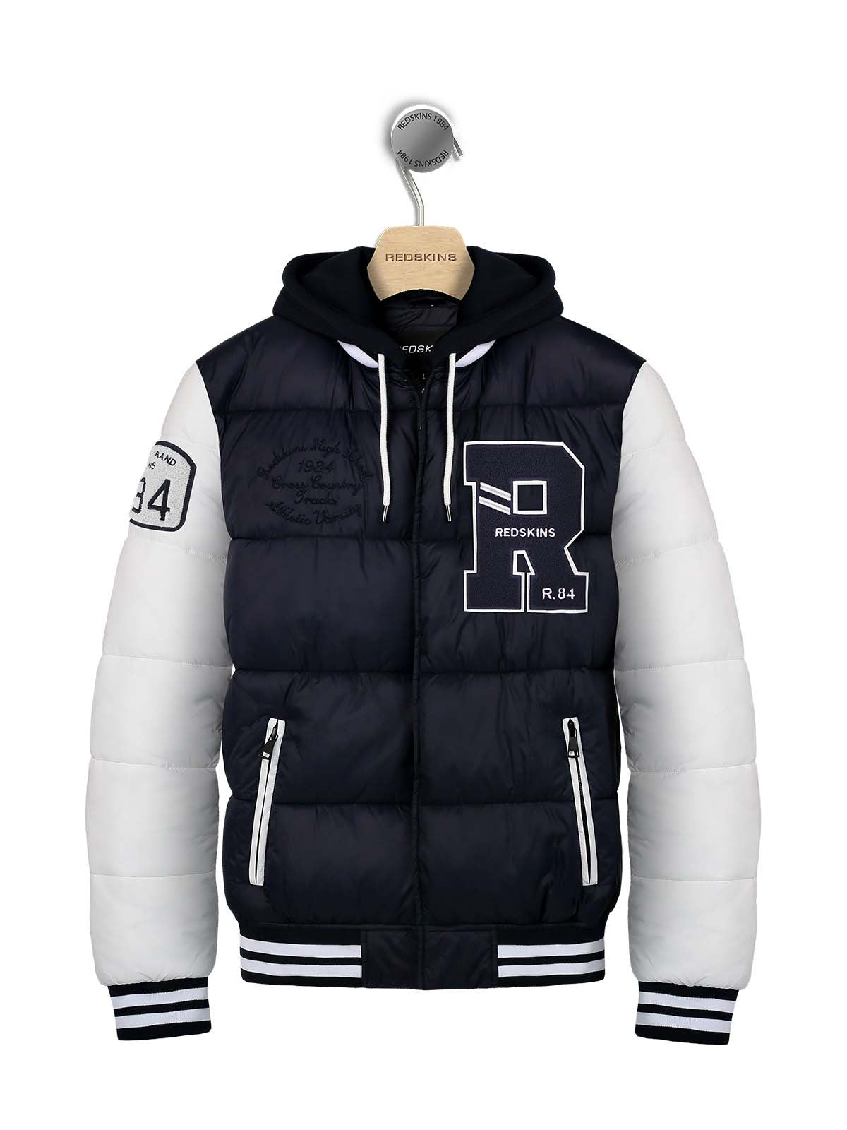 La doudoune à capuche amovible HARRY RUSSELS est issue d'une inspiration teddy. On trouvera deux poches latérales zippées et un cordon de serrage pour la capuche amovible. Le côté old school est marqué par les patchs brodés REDSKINS sur le blouson qui lui donne un look intemporel, entre la poitrine côté coeur et le bras droit.