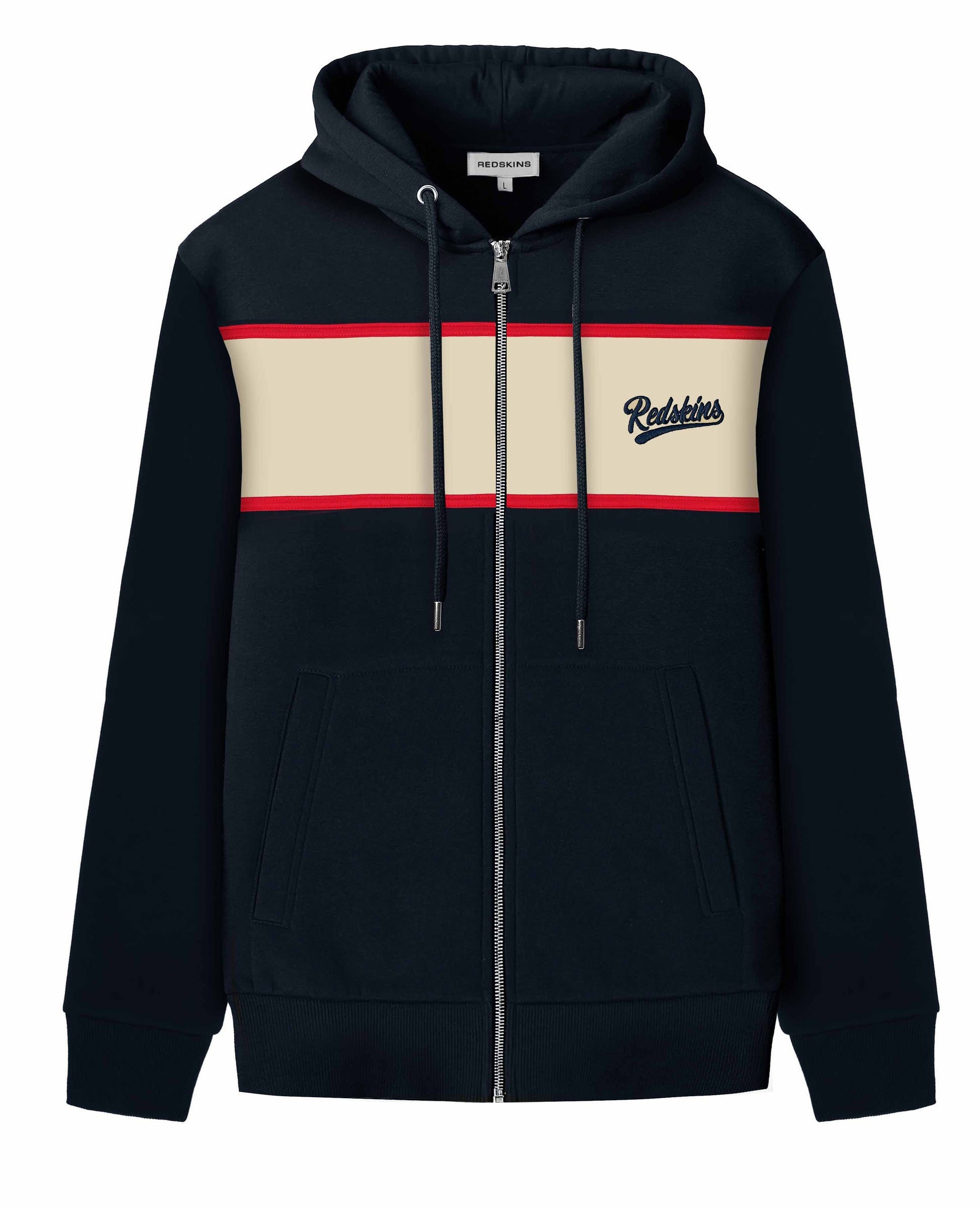 Le sweat zippé OWEN POSTER de la collection REDSKINS possède une capuche avec lien de serrage et deux poches latérales. On trouve sur le côté gauche de la poitrine une inscription "REDSKINS " sur une bande bicolore contrastante, ainsi que des bords côtes au niveau des poignets et de la taille pour un confort optimisé. Simple et original, il saura s'adapter à tous vos looks. Composition : 65% coton/35% polyester