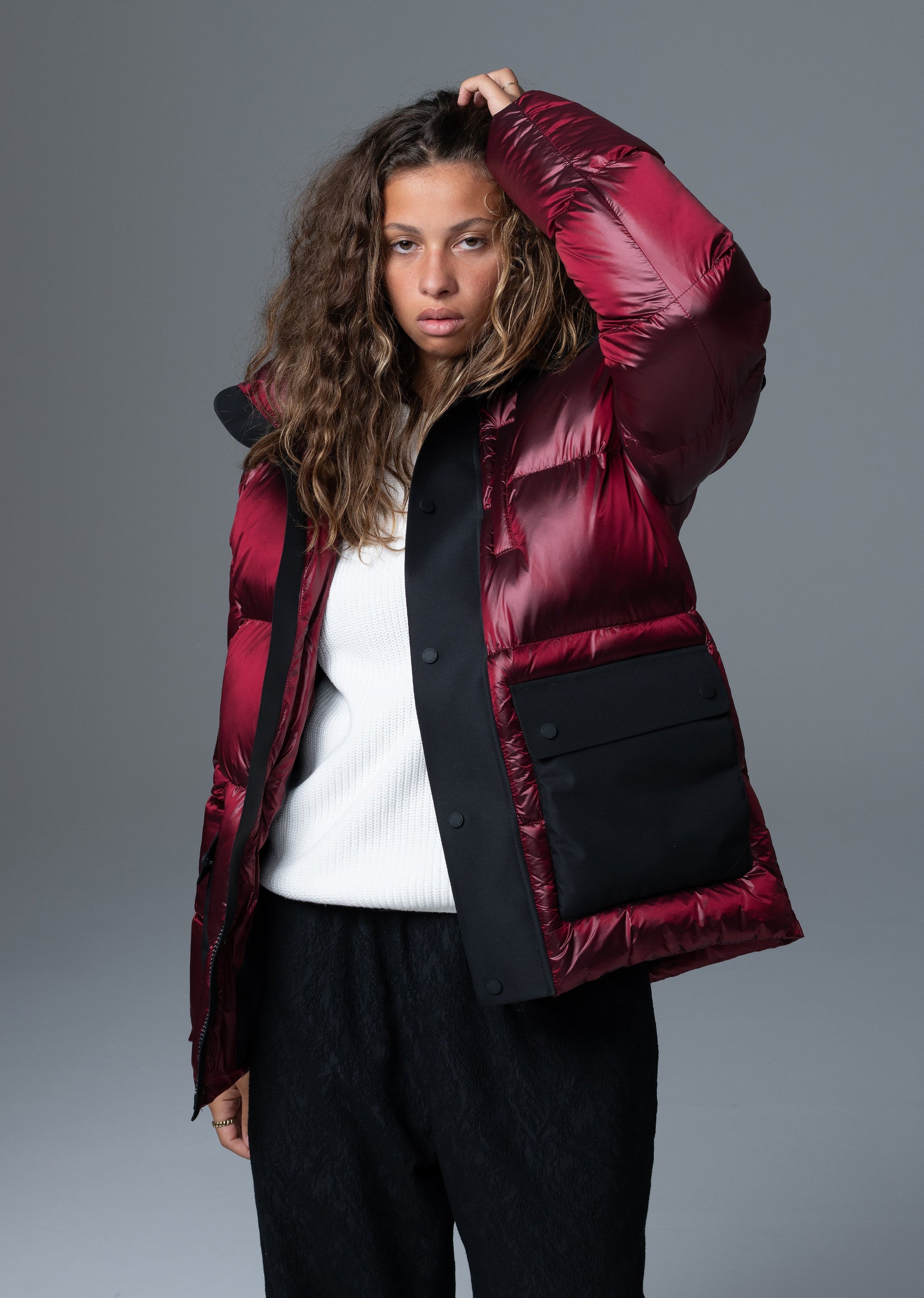 La doudoune HUTSON PIONER est une création originale sur des mix matières. On retrouve des poches en néoprene sur la face avant, une capuche, des bords-côtes aux manches, une poche sur le bras gauche.