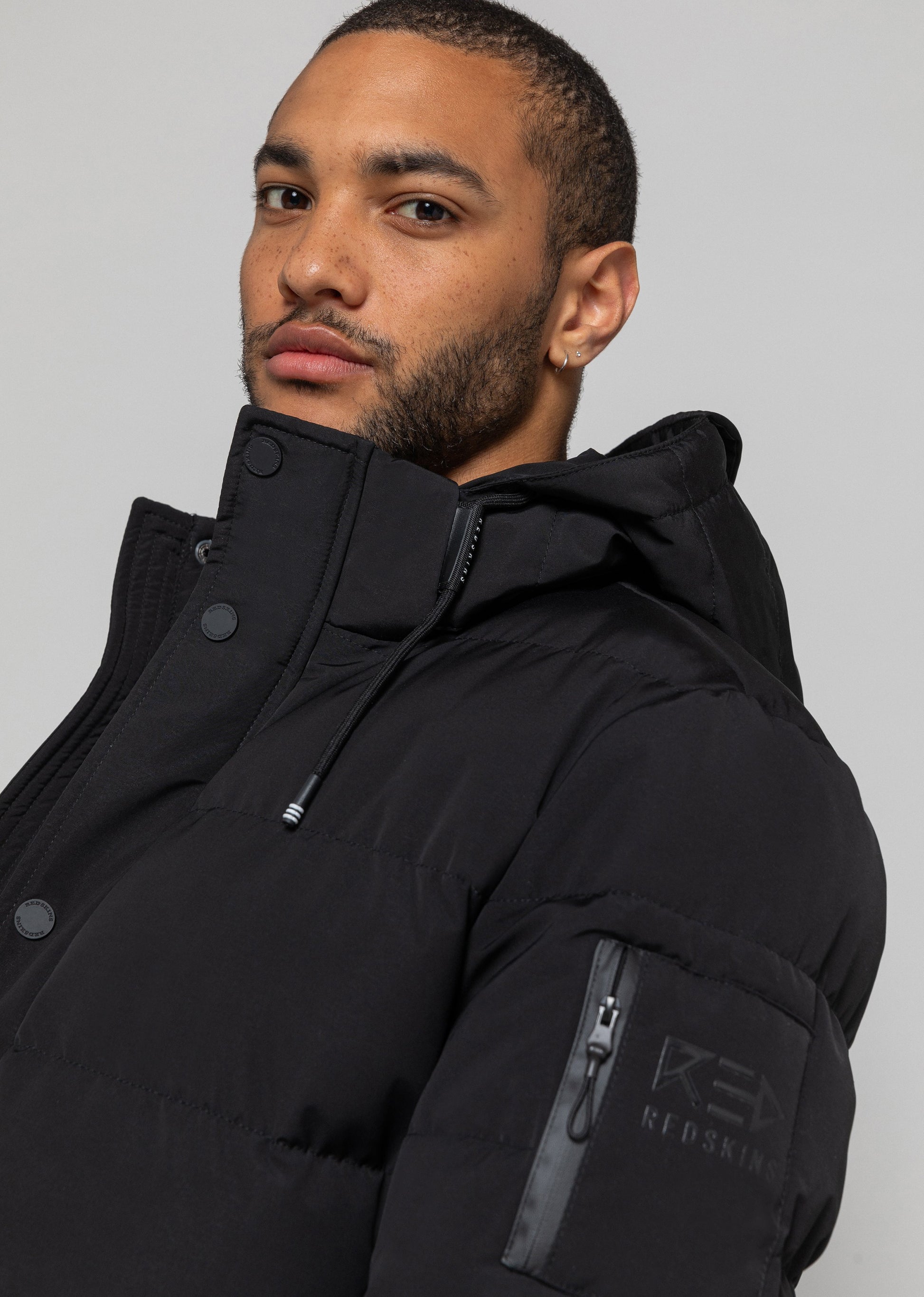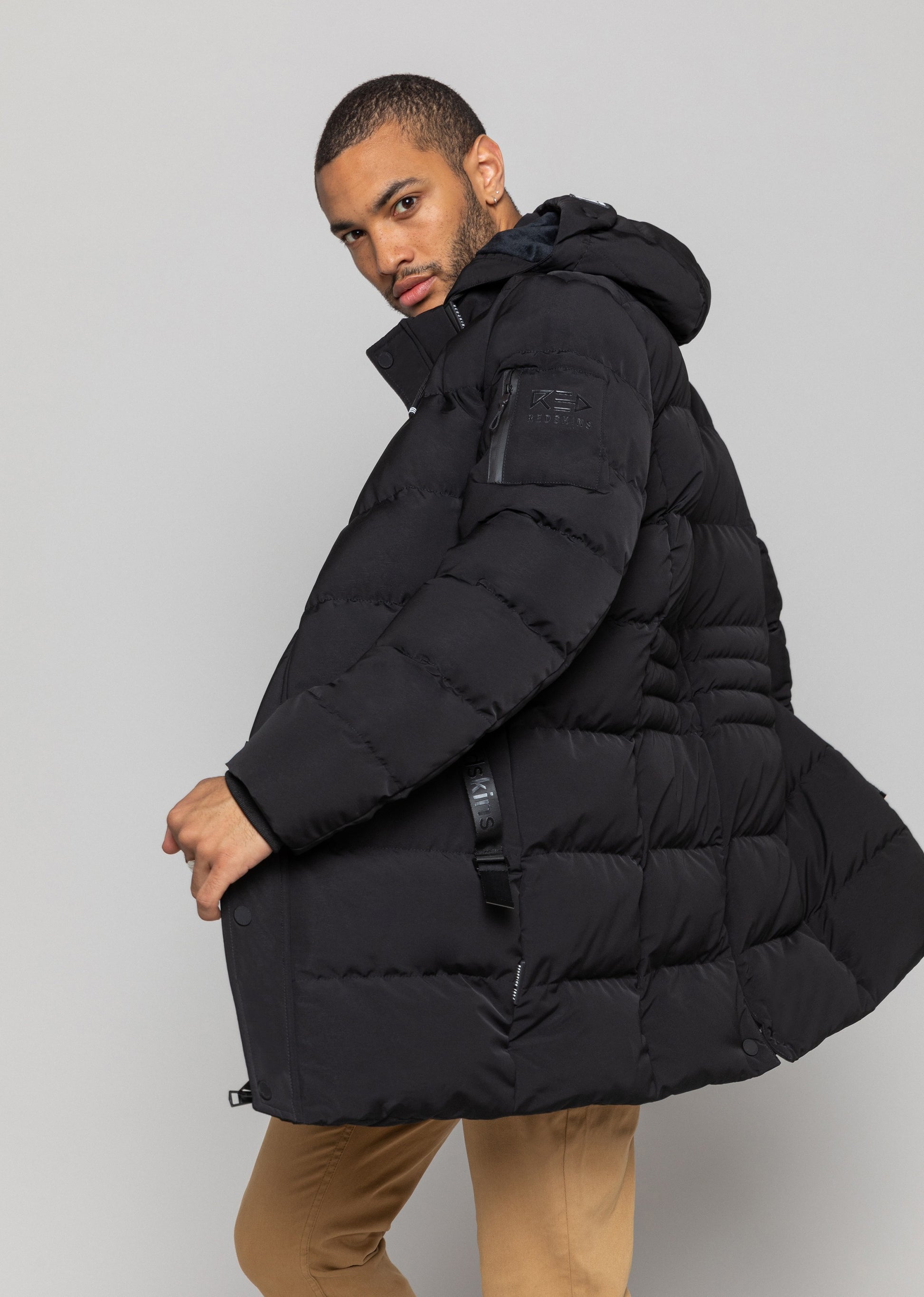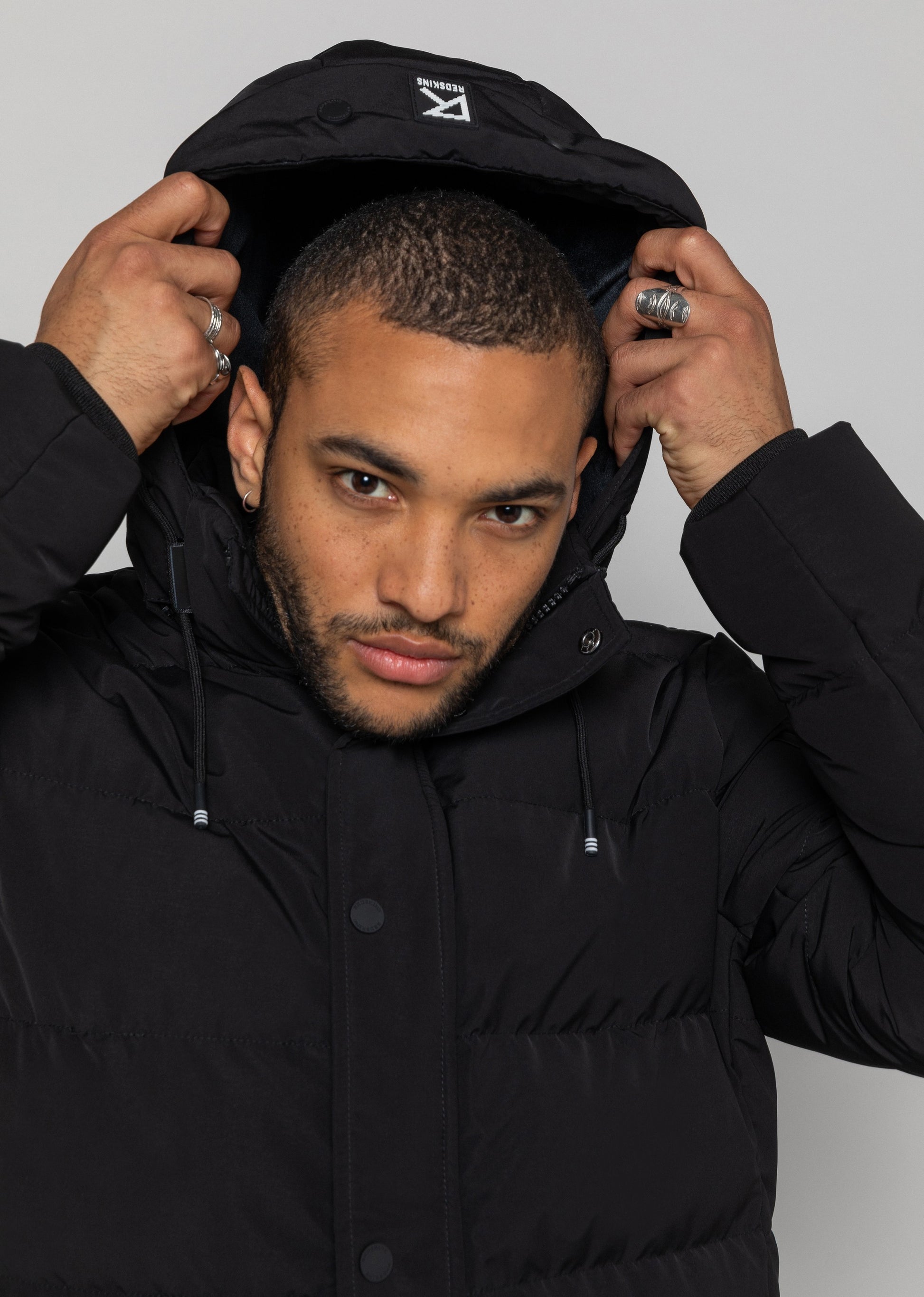 La doudoune à capuche LAYER CAKE, présente un col montant, des cordons de serrage contrastés ainsi que deux poches zippées sur les côtés qui sont ornées d'un liseré noir et étiquette logotypée. Le nom de la Maison est appliqué avec épure sur le haut de la capuche et sous une impression RED face avant .