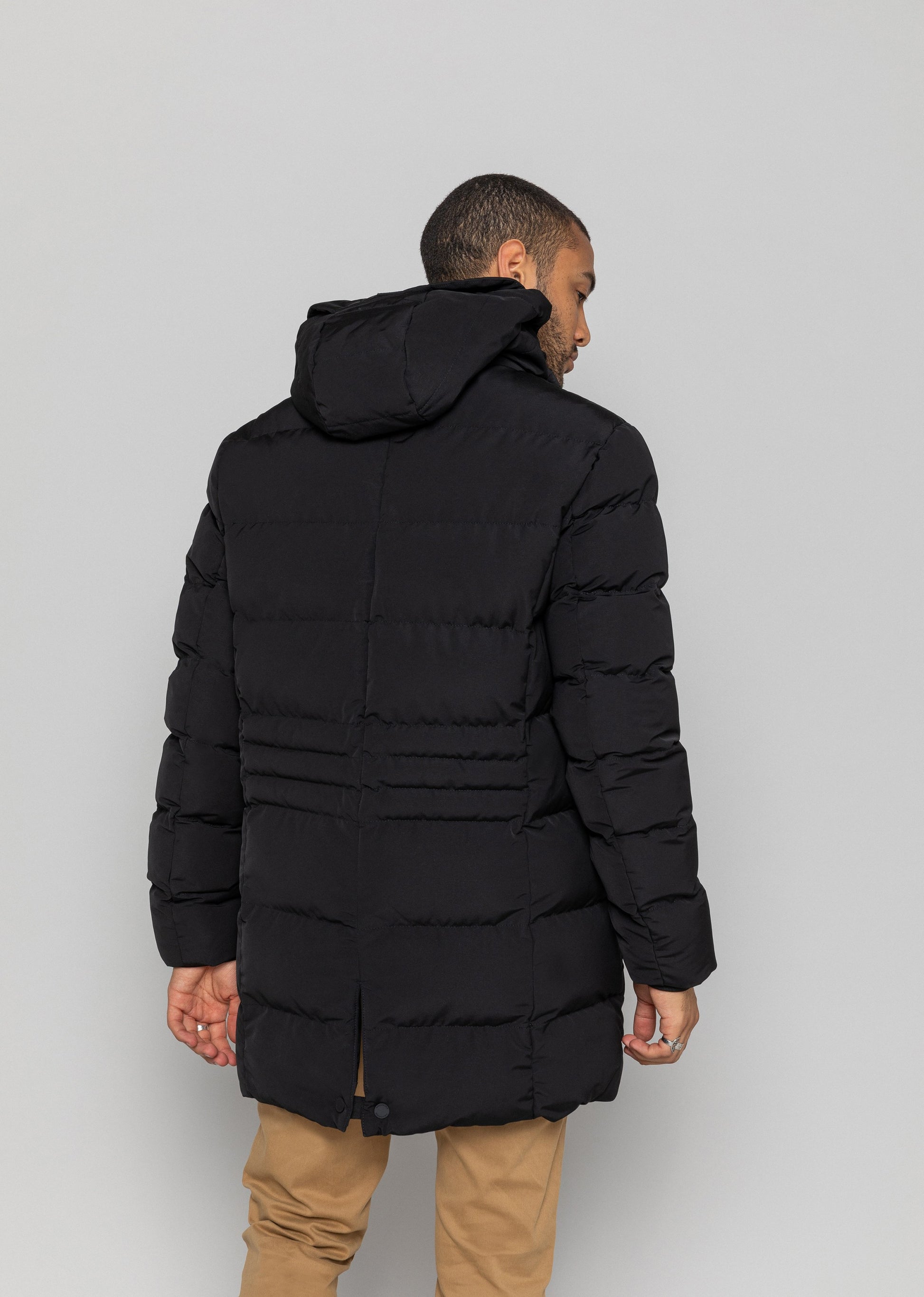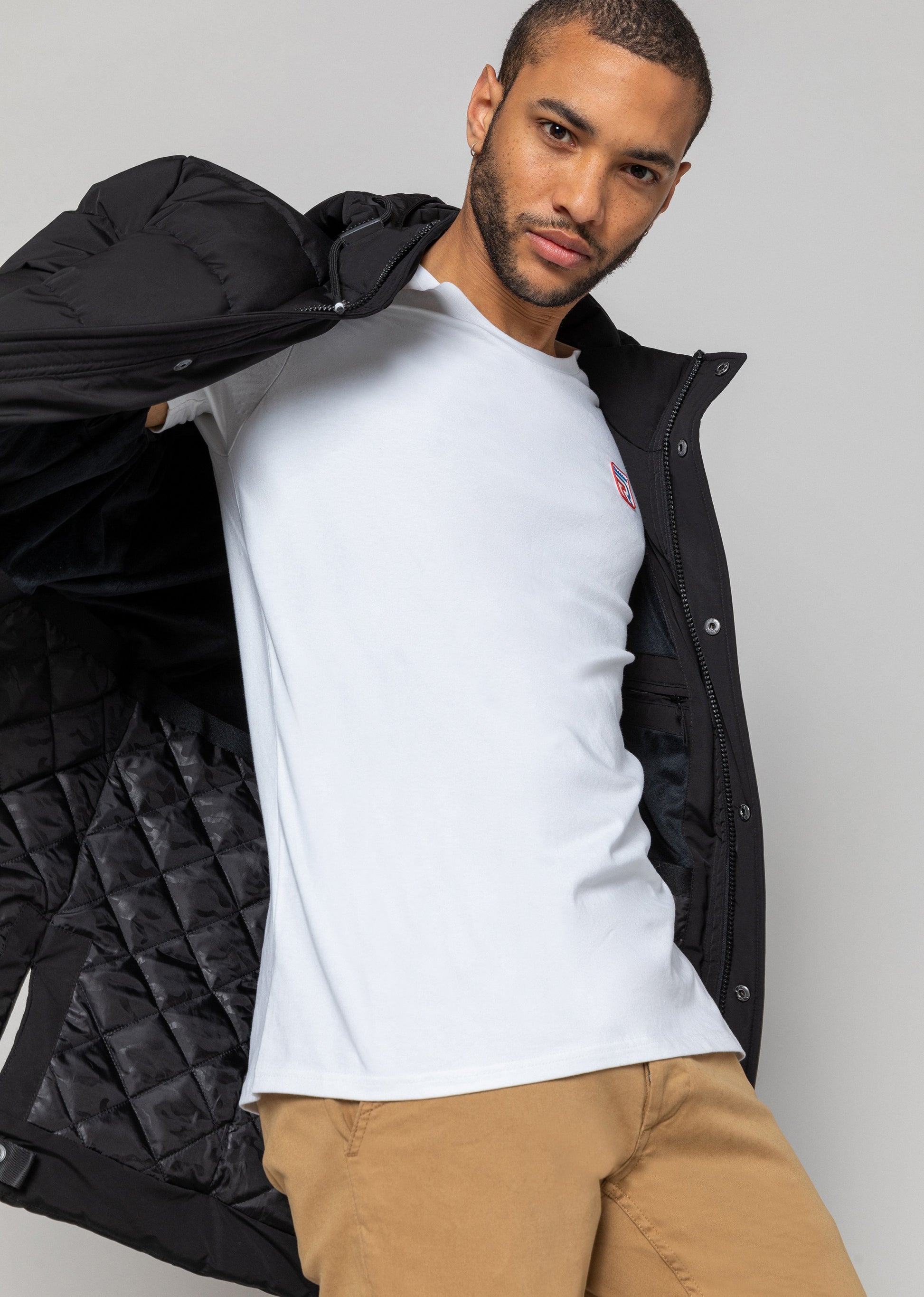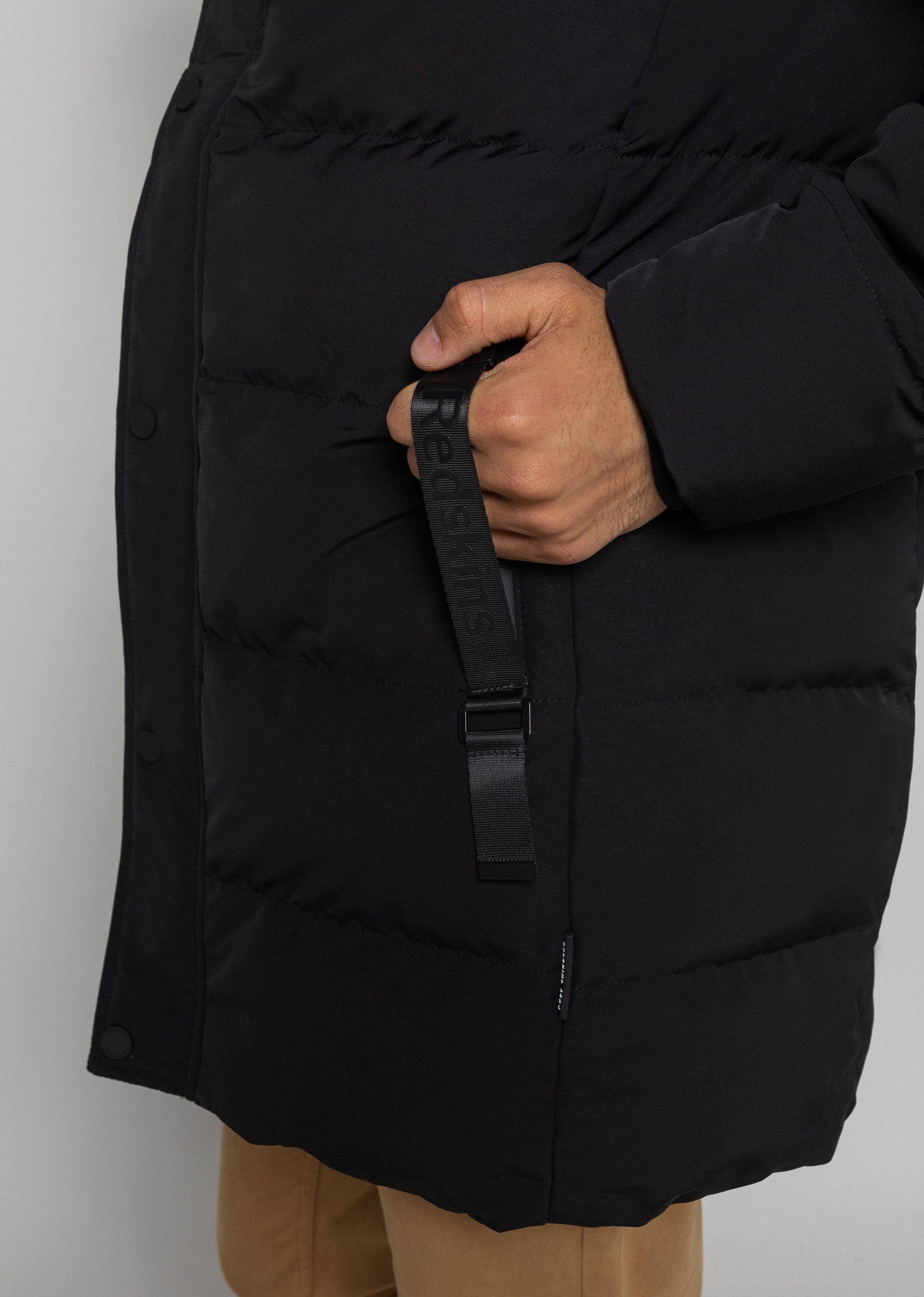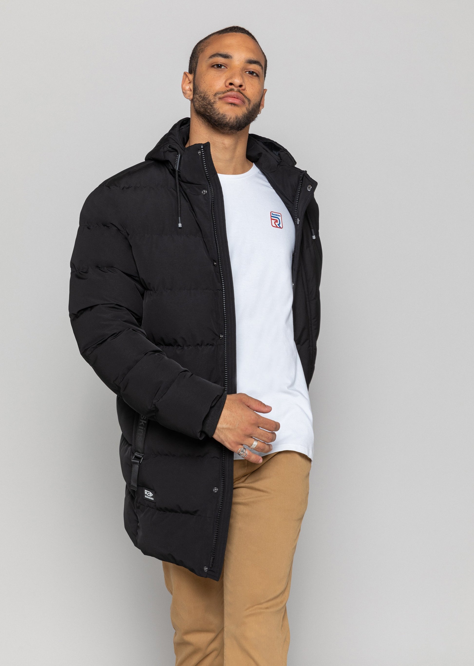 La doudoune à capuche LAYER CAKE, présente un col montant, des cordons de serrage contrastés ainsi que deux poches zippées sur les côtés qui sont ornées d'un liseré noir et étiquette logotypée. Le nom de la Maison est appliqué avec épure sur le haut de la capuche et sous une impression RED face avant .