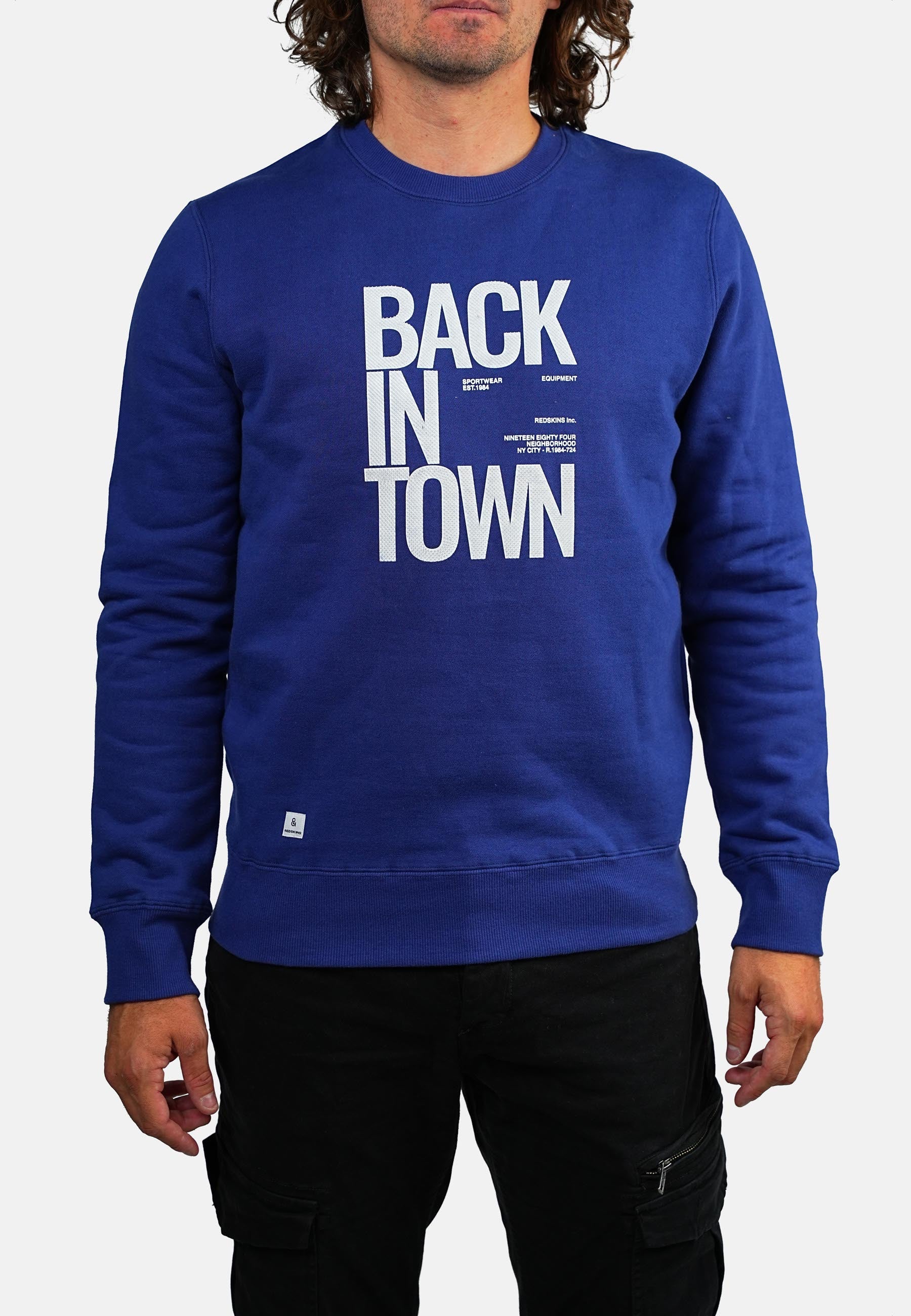 Découvrez le SWEATSHIRT BORN TIRSONManches longues Col rond Impression "BACK IN TOWN" sur la face avantDos uniParfait pour un style moderne et attrayant Composition : 70% coton et 30% polyester