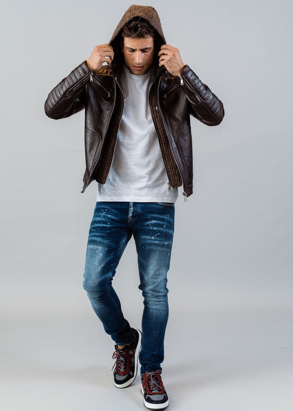 Découvrez le CUIR BYRON MOJITO ! Veste texturéeCapuche2 poches zippées latérales, 2 poches zippées sur la face avant Fermeture zippée, parfait pour un style moderne et attrayant Composition : cuir de mouton
