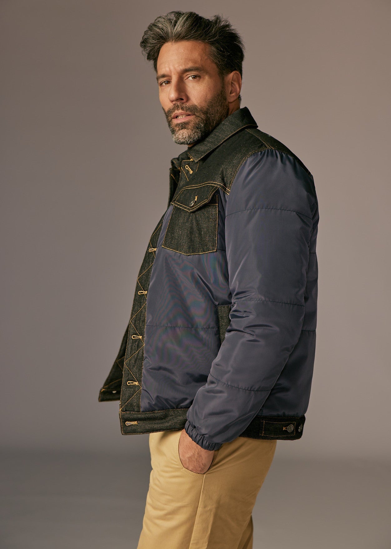 Composition : 80% coton denim, 20% polyester / 100% polyamide