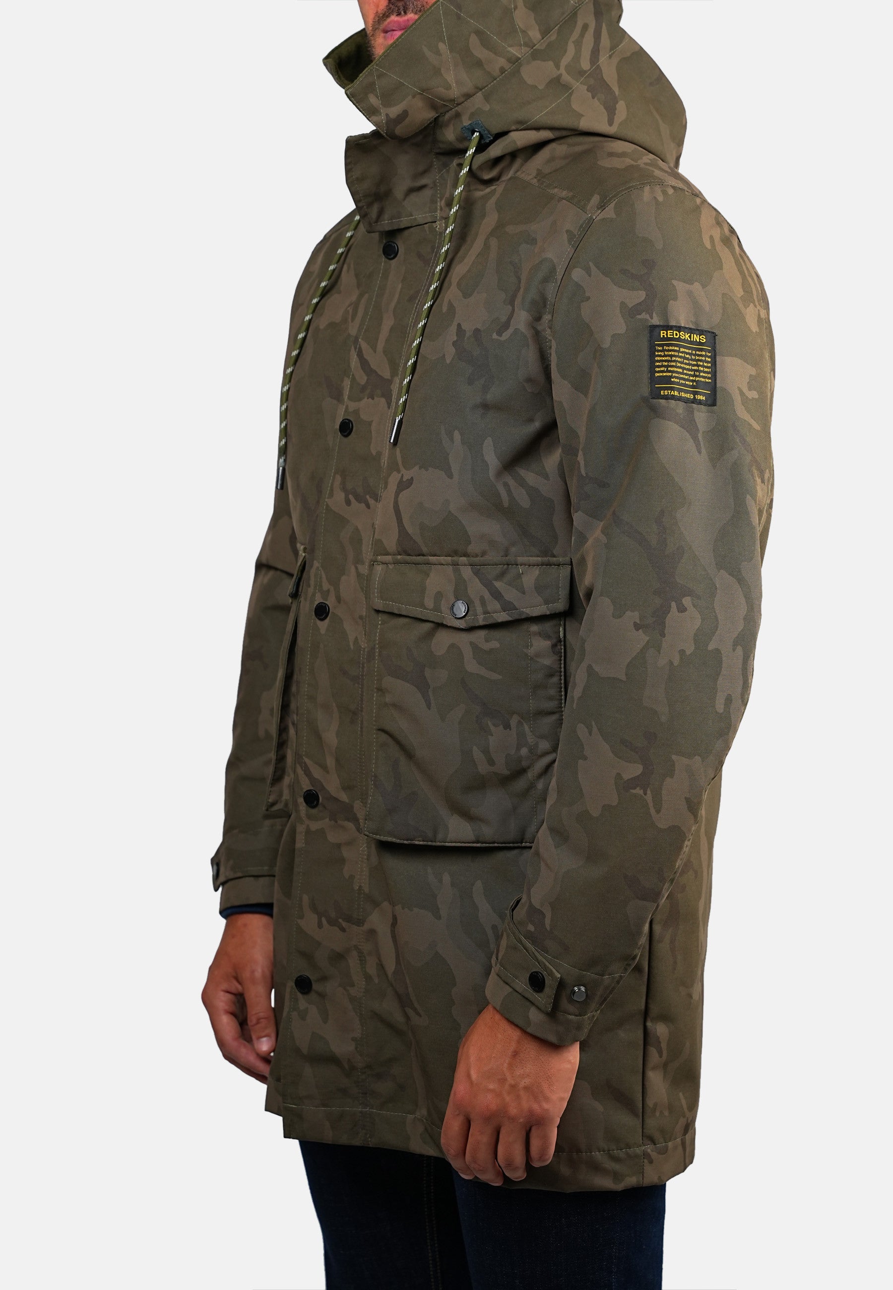 - Marquage REDSKINS manche gauche et petite étiquette sur la poche droite à l'avant