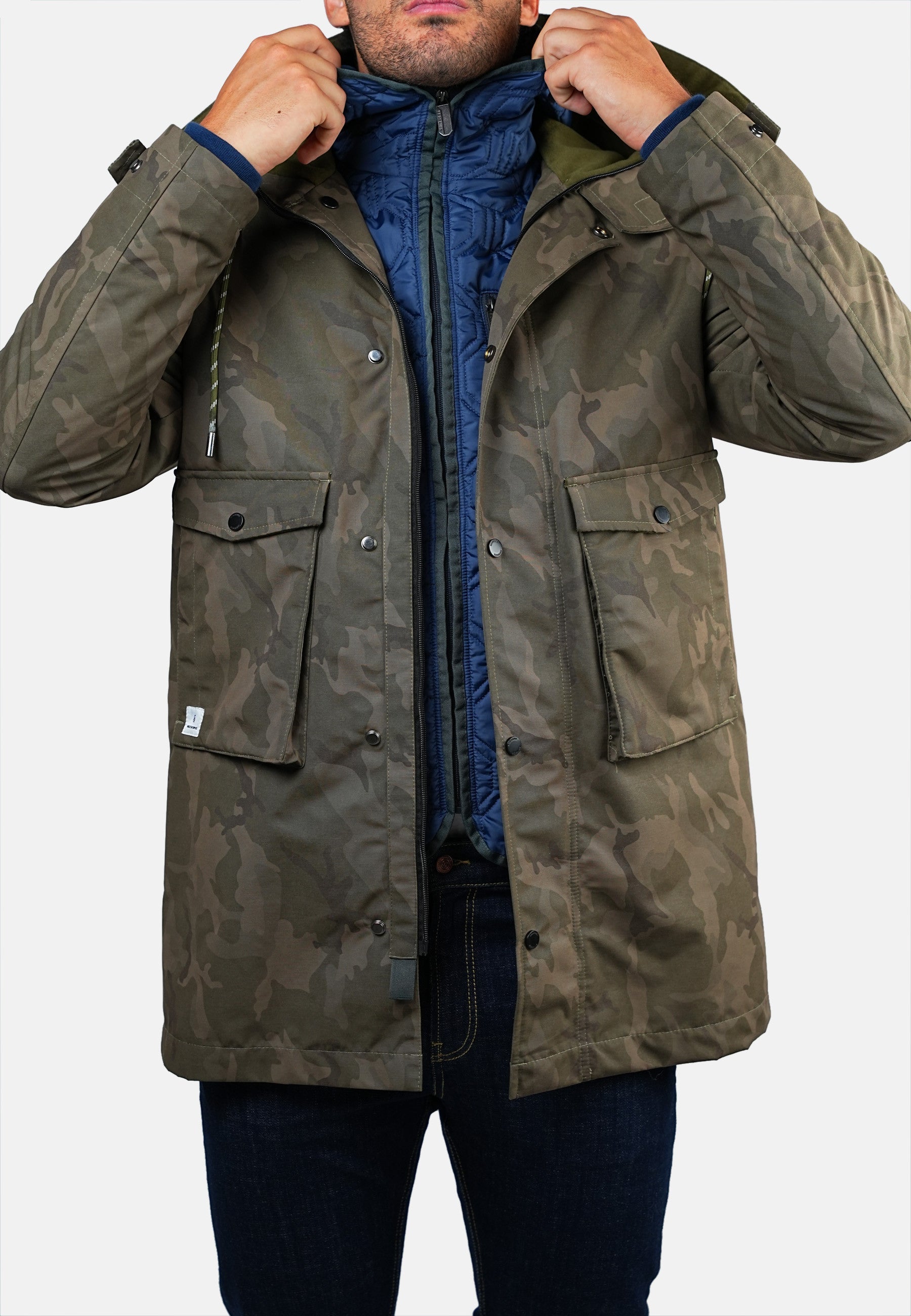 - Doudoune amovible avec capuche et poche extérieure zippée.